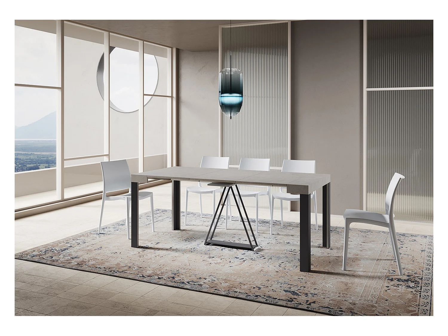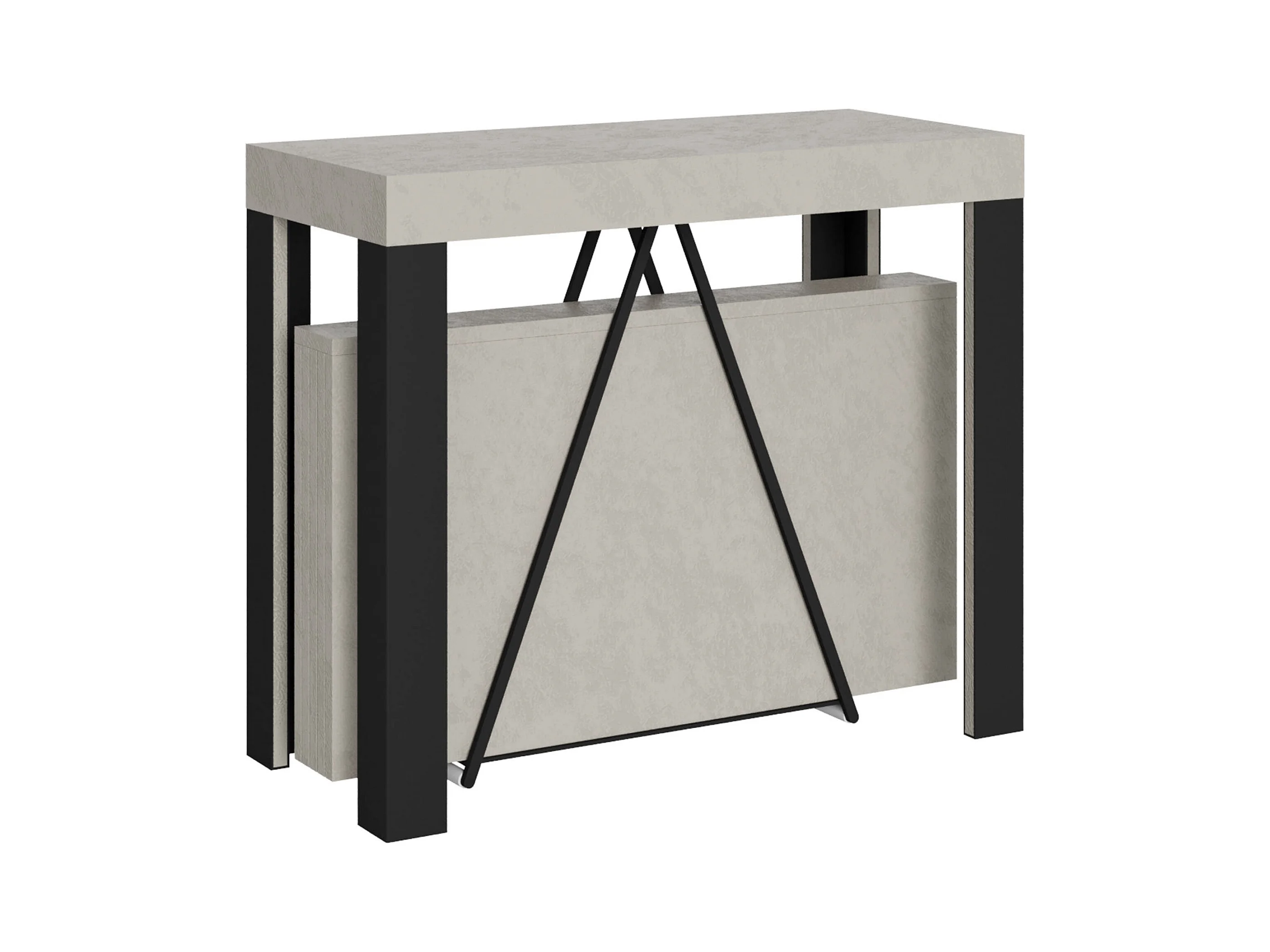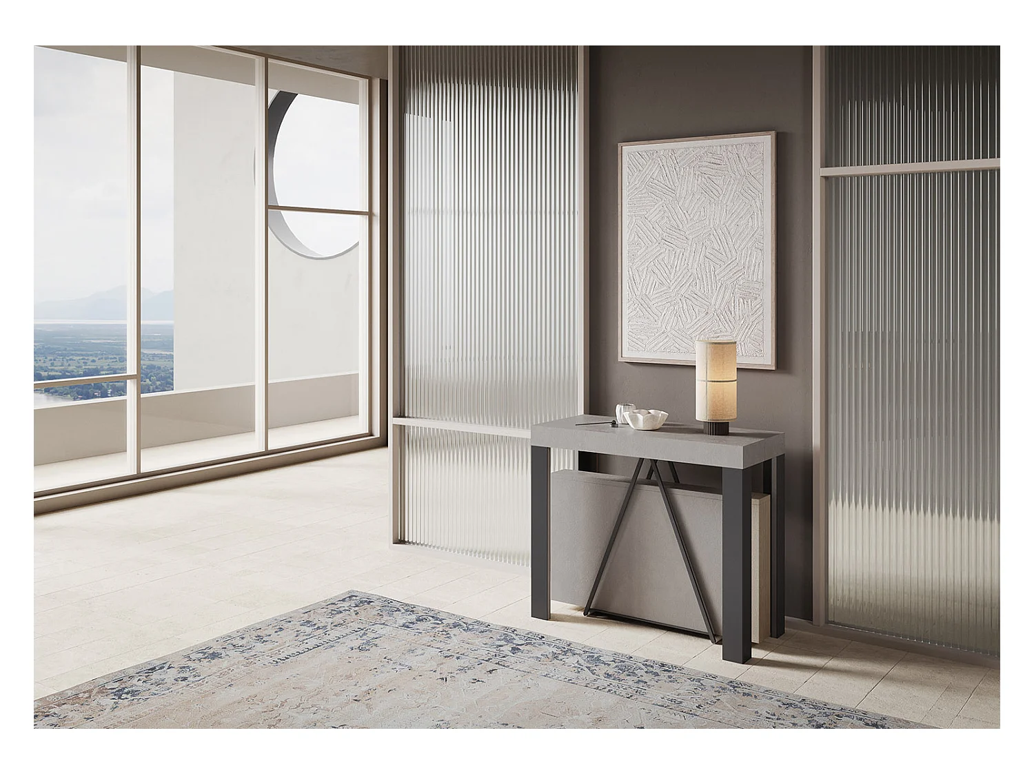 Lona uitschuifbare console van hout en staal 90x40/196 of 90x40/300 cm-Kleur Cementgrijs-Steun 2 voet-Verlengsnoeren 5 dunne verlengingen