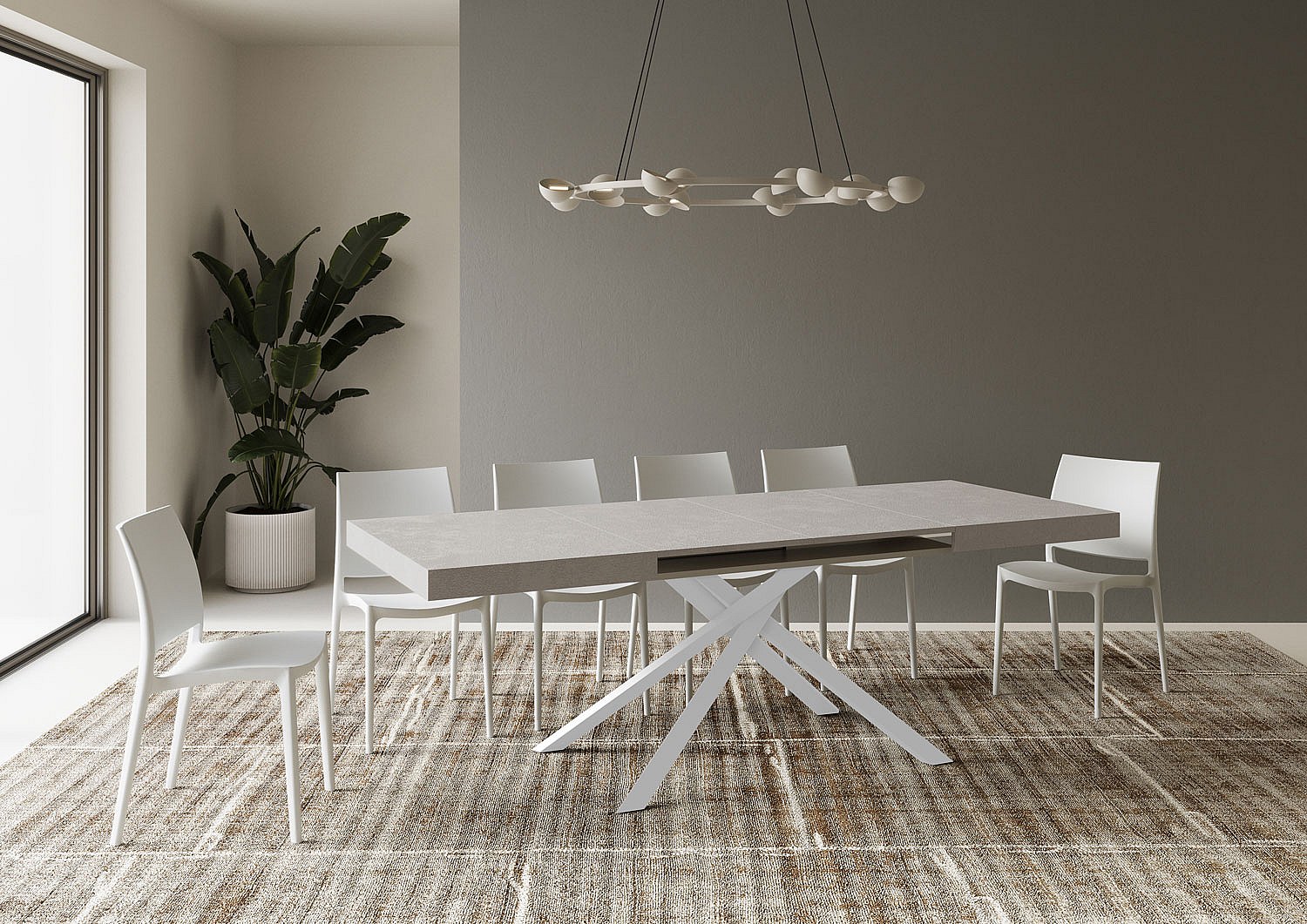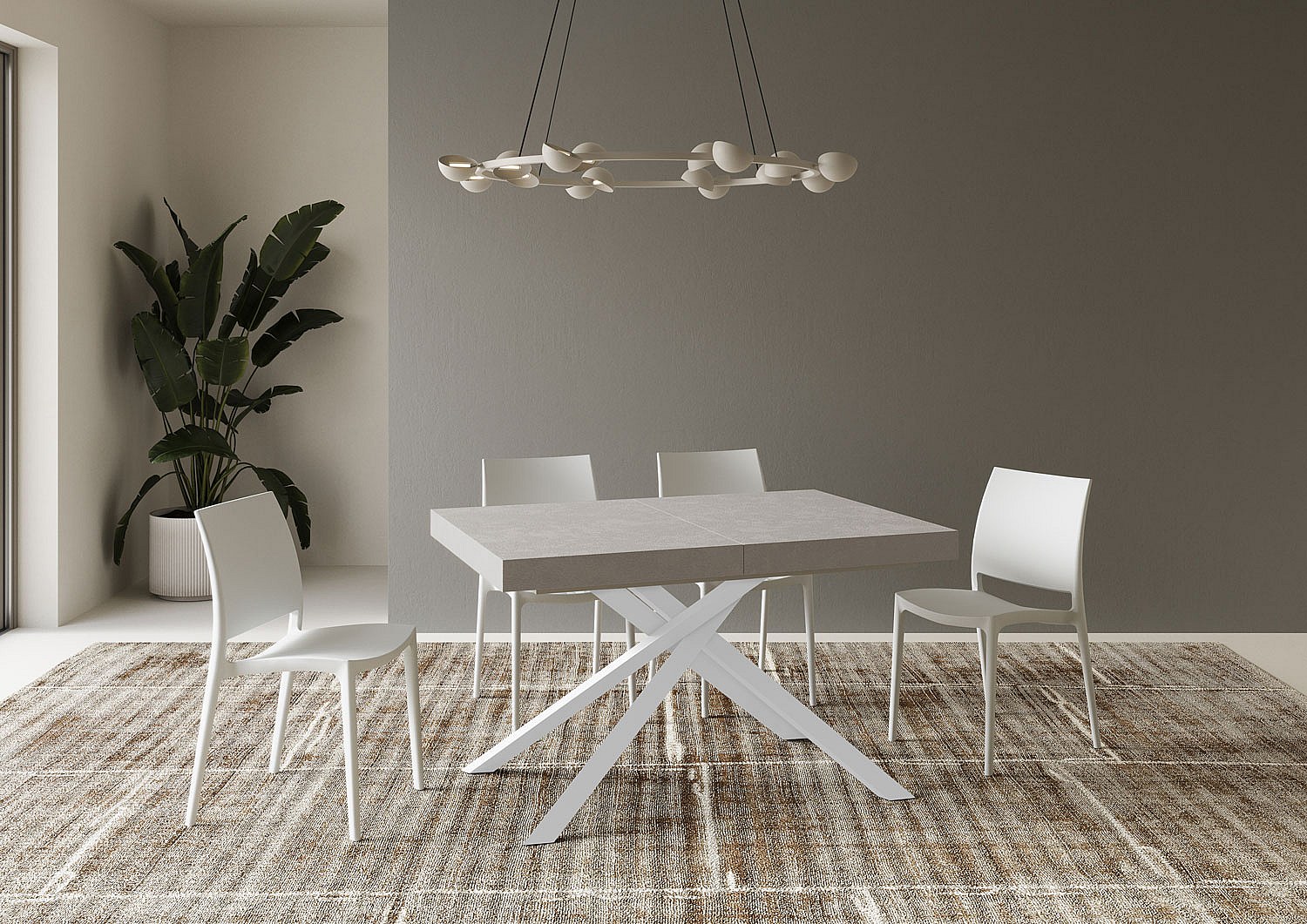 Volantis uitschuifbare tafel 120/224x90 cm betonwitte poten