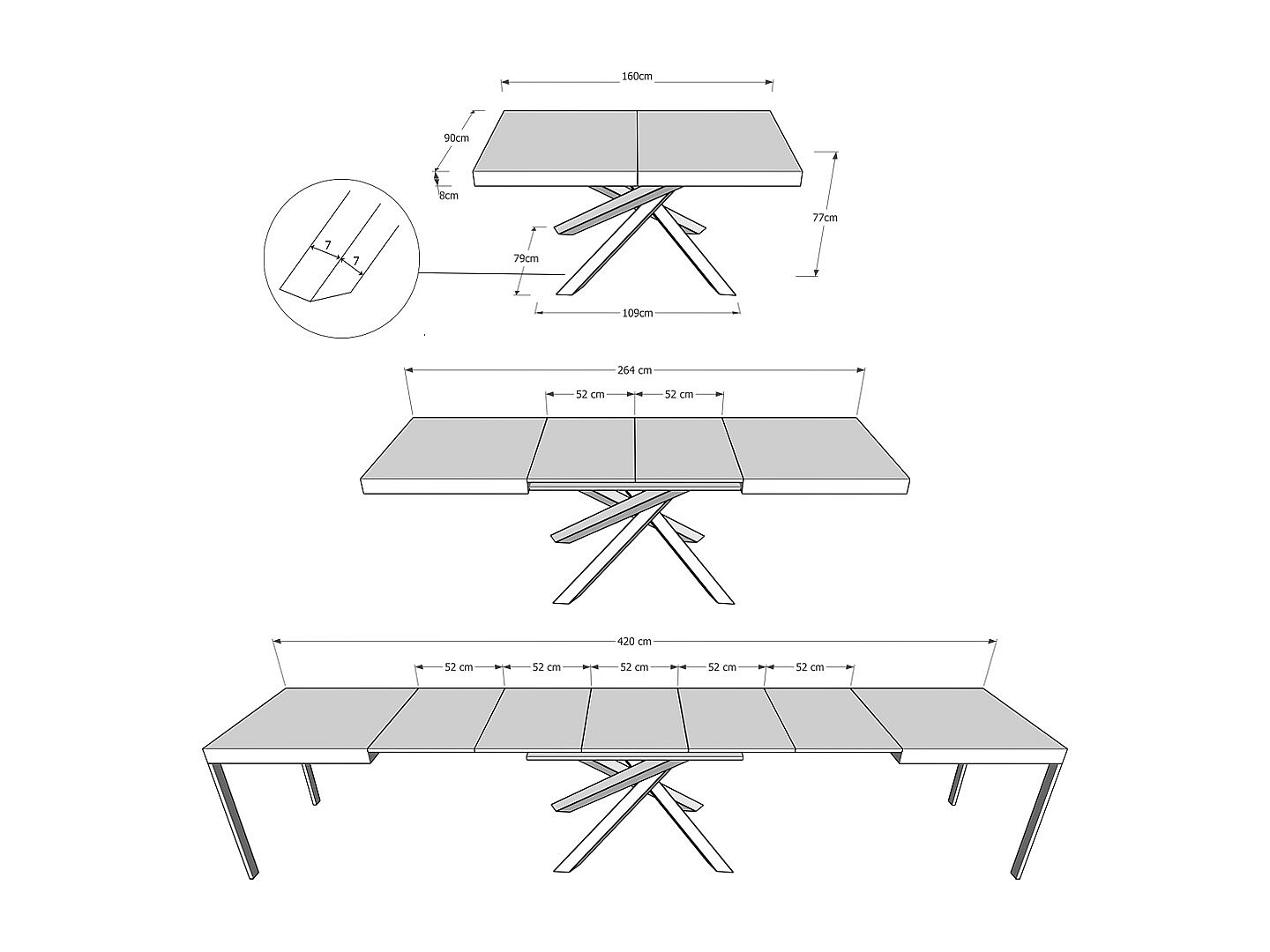 Uitschuifbare tafel 90x160/420 cm Volantis Evolution Walnoot Antraciet frame