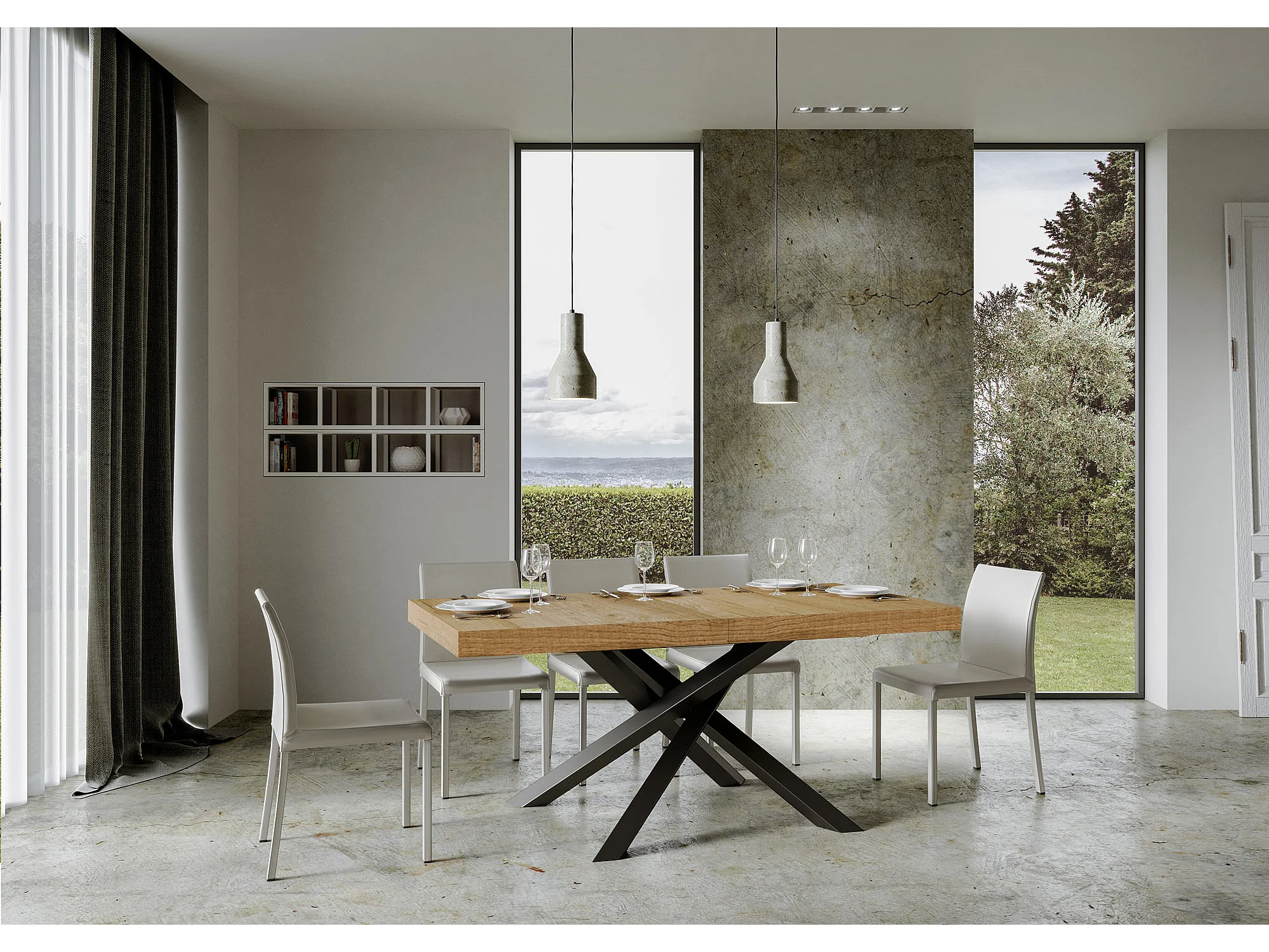 Uitschuifbare tafel 180/284x90 cm Volantis natuur eiken met antraciete poten