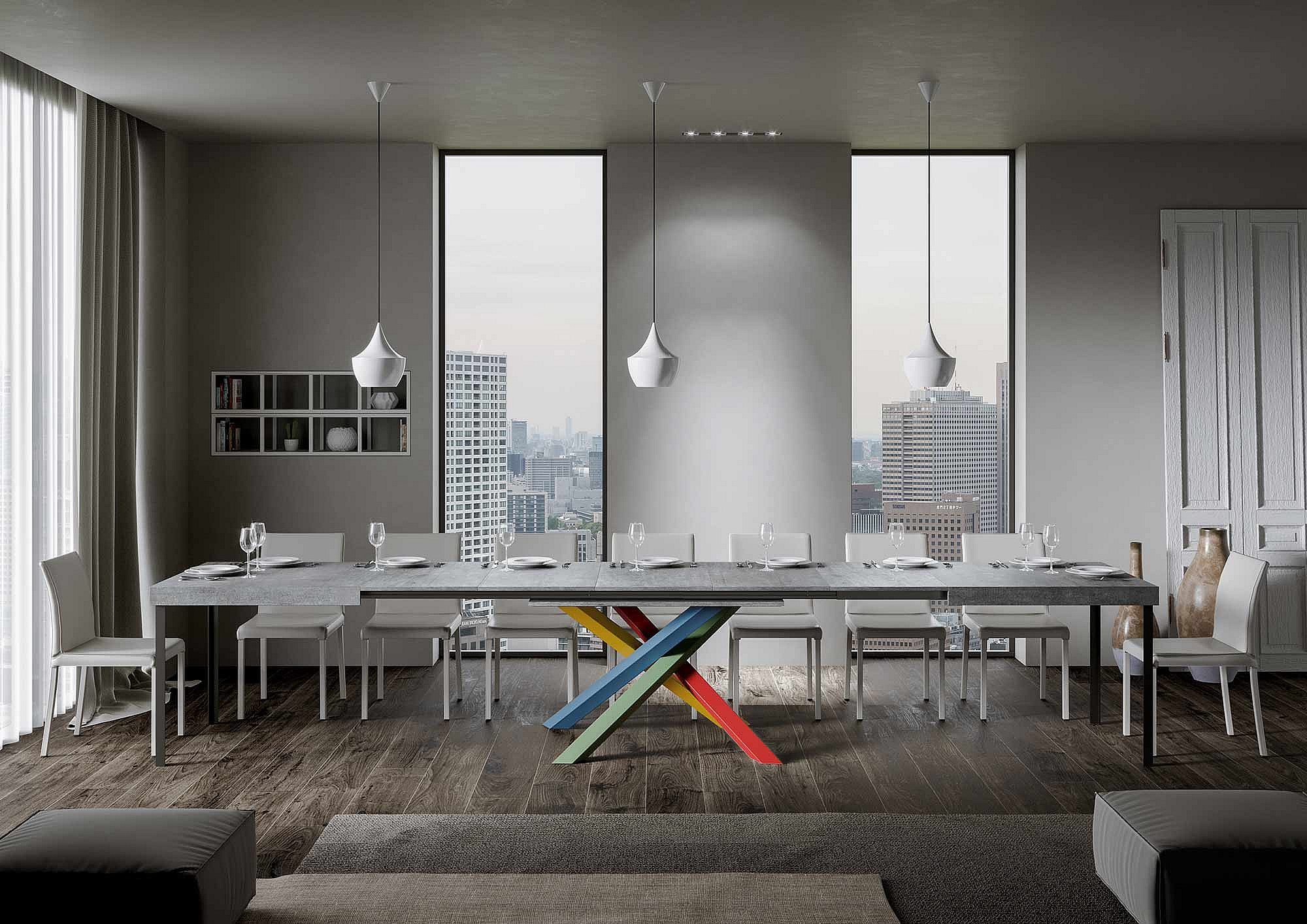 Uitschuifbare tafel 200/460x90 cm Volantis beton veelkleurige poten 4/C