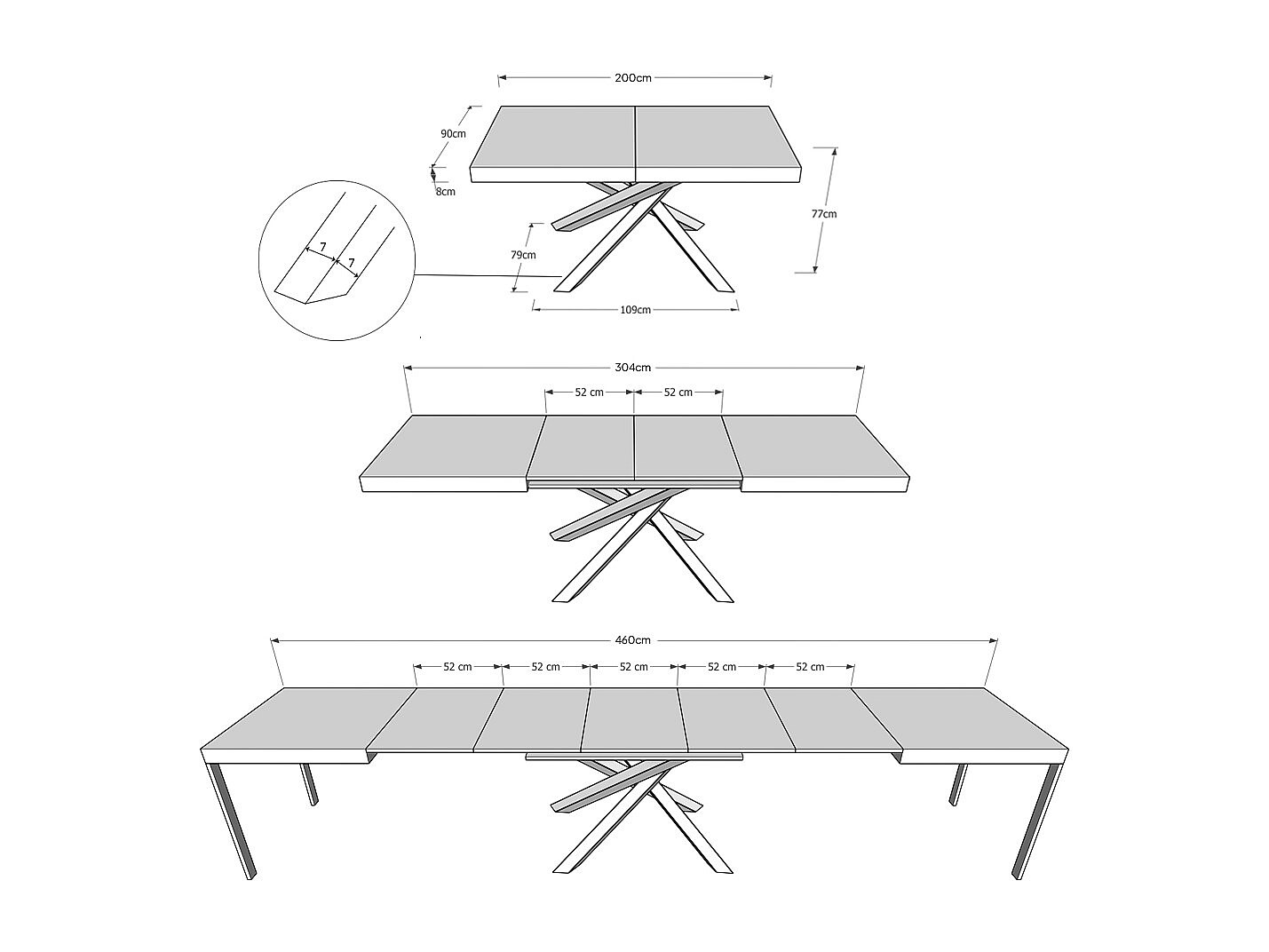 Uitschuifbare tafel 90x200/460 cm Terium kasjmier frame antraciet