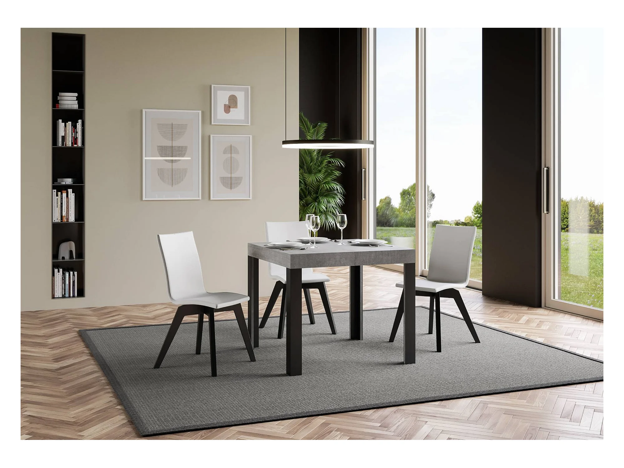 Kleine vierkante uitschuifbare witte en betongrijze tafel 90 tot 246 cm Ribo