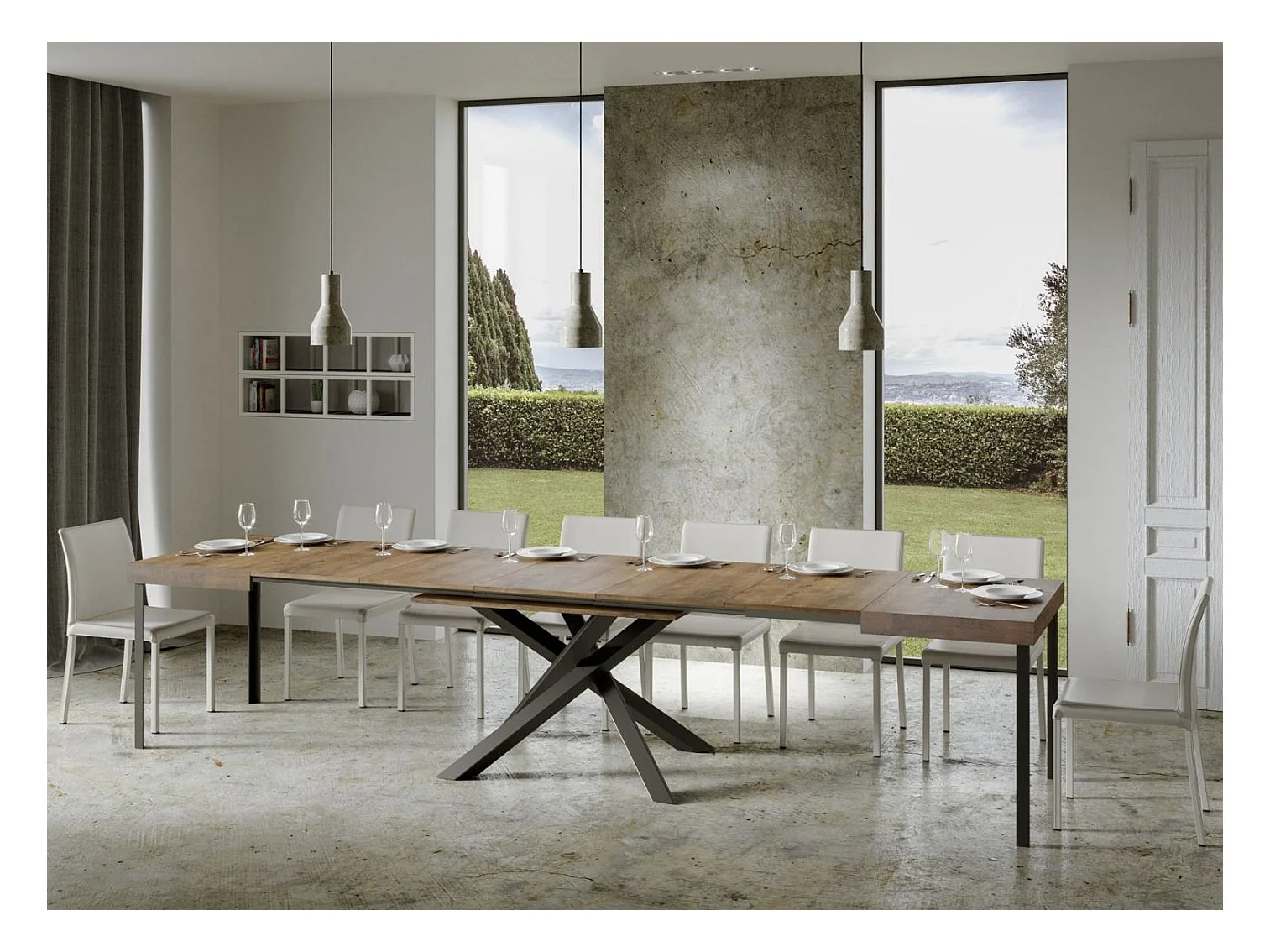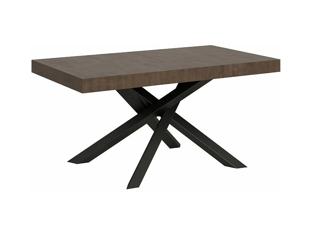 Uitschuifbare tafel voor 6 tot 18 personen, bruin hout en antraciet verweven poten L 160 tot 420 cm Klass