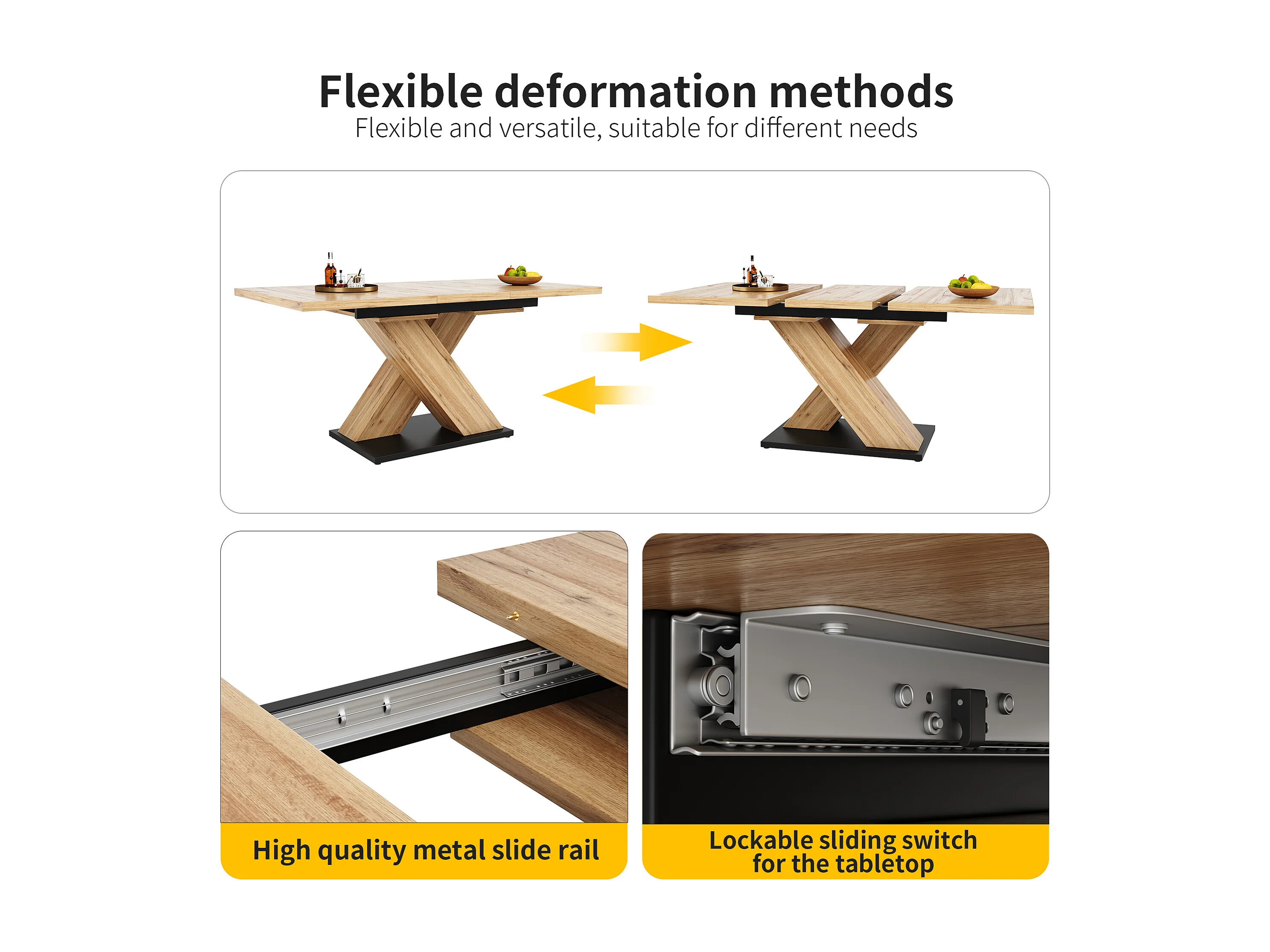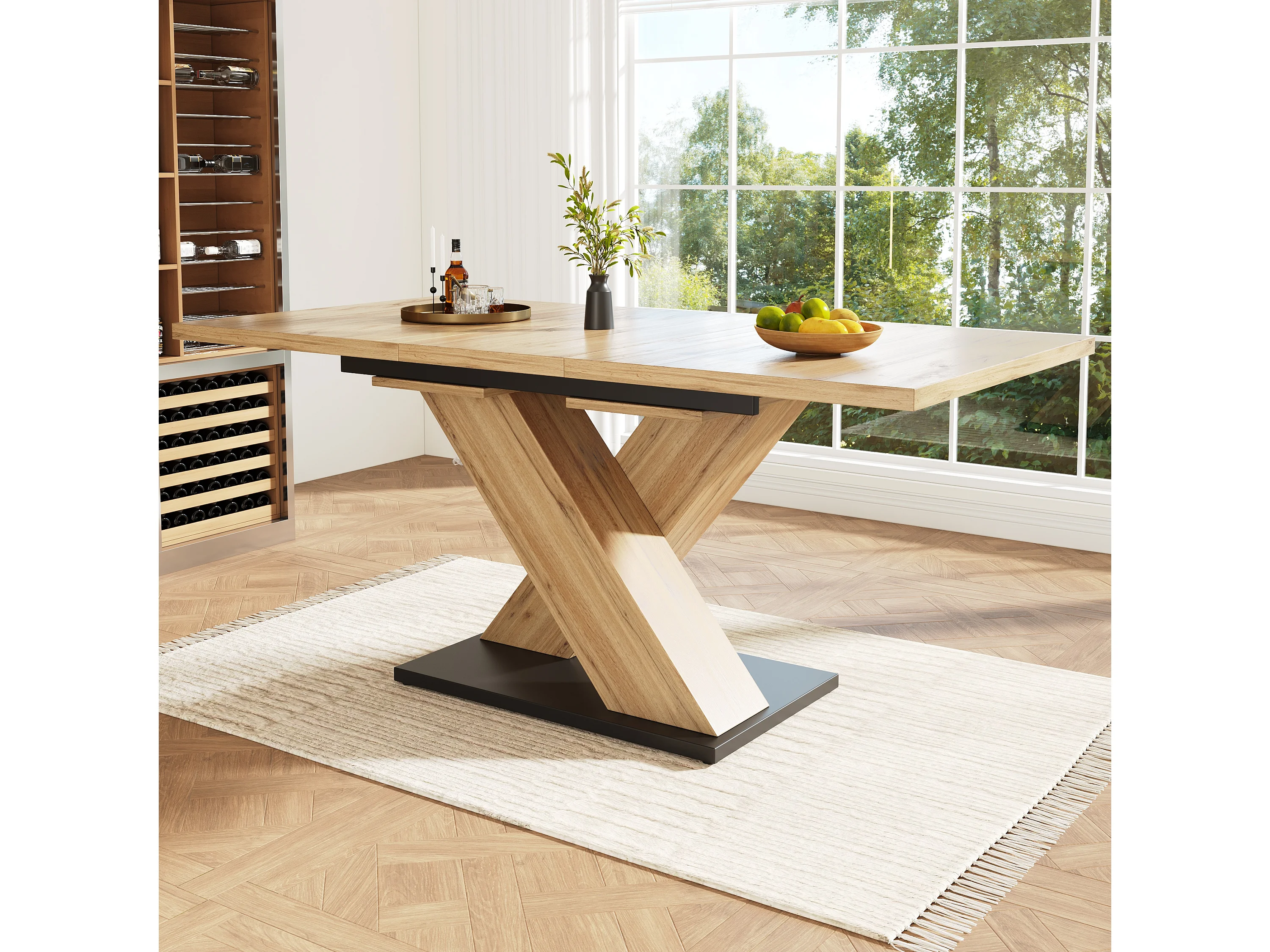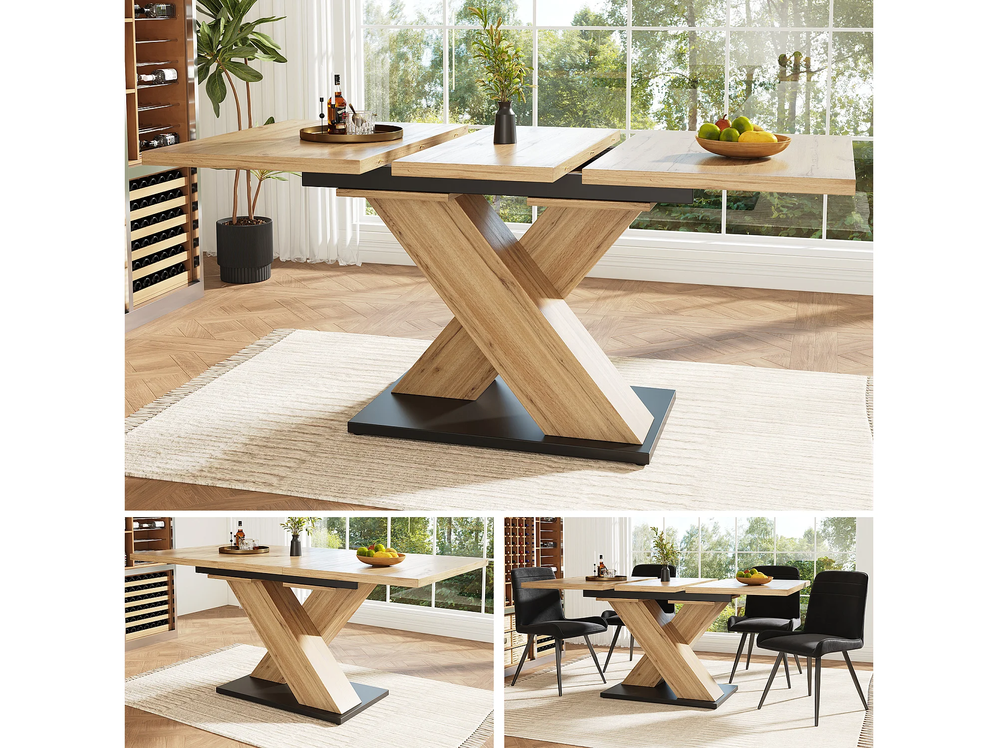 Uitschuifbare telescopische eettafel (119-158,5x80 cm), met interne inzetstukken, voor keuken en eetkamer, van MDF, natuurlijke houtkleur
