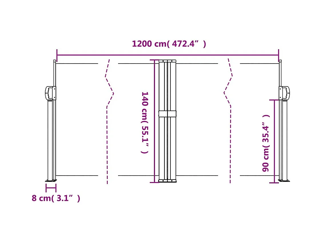 Uitschuifbare zijluifel Antraciet 140x1200 cm