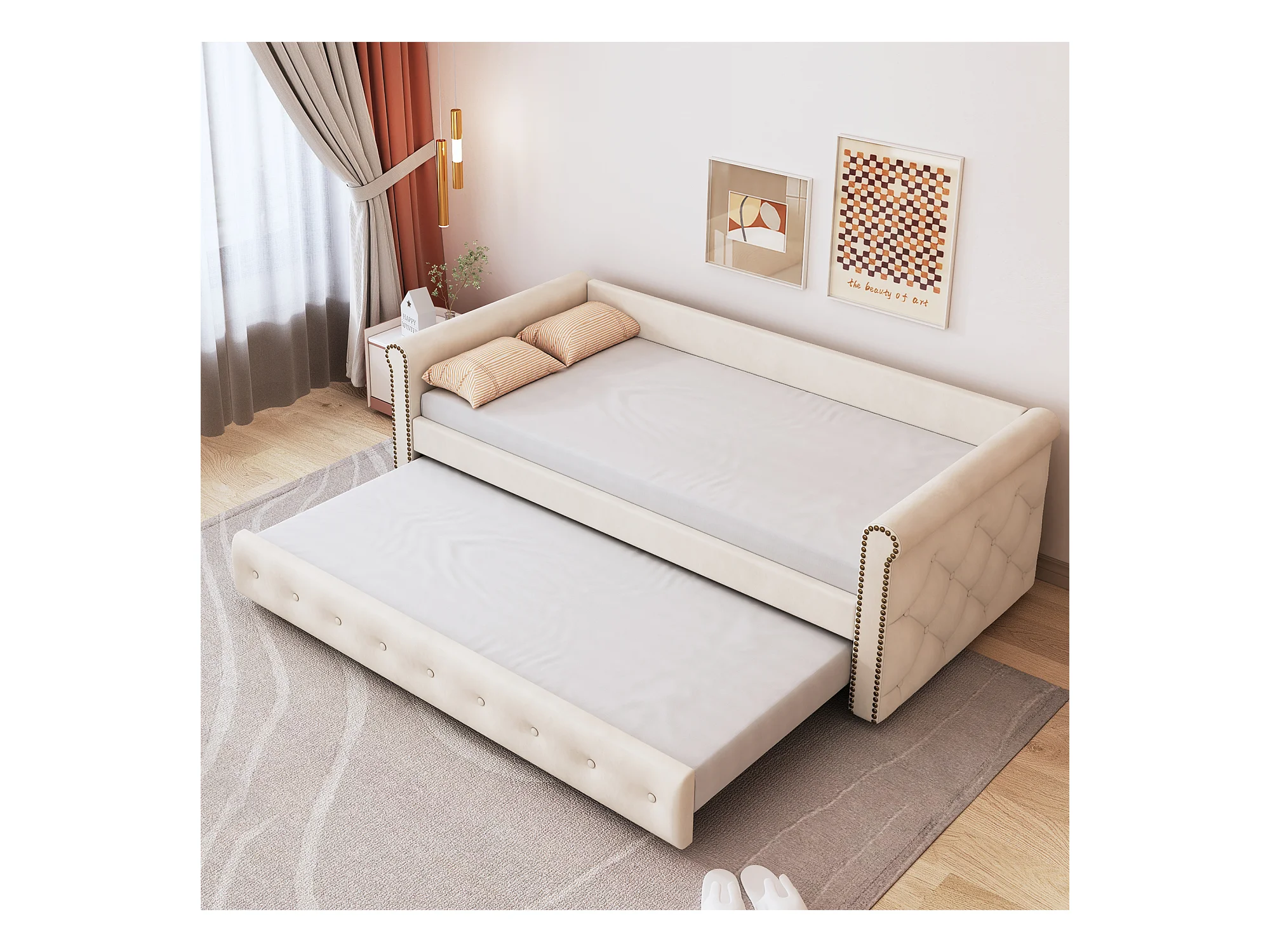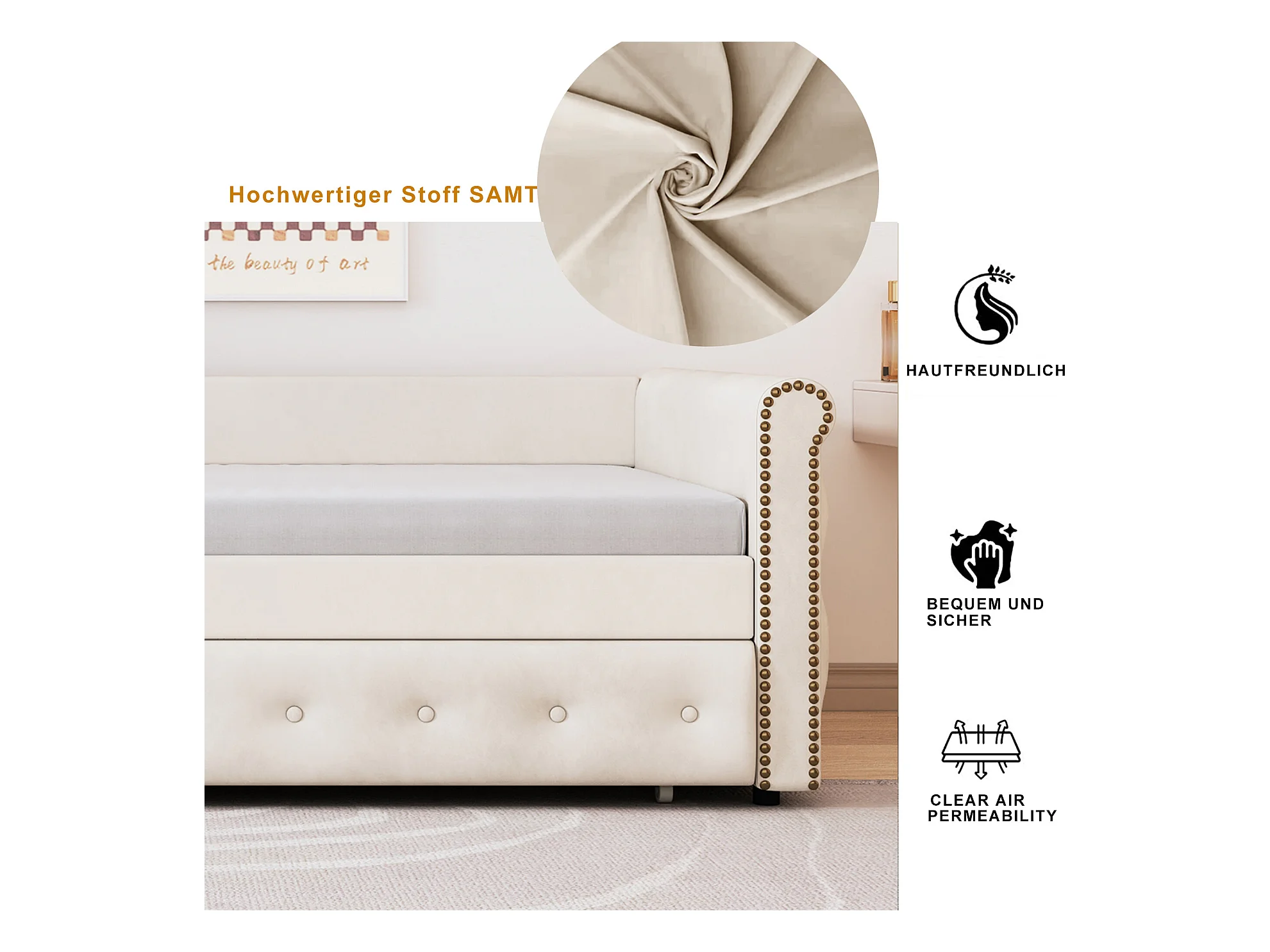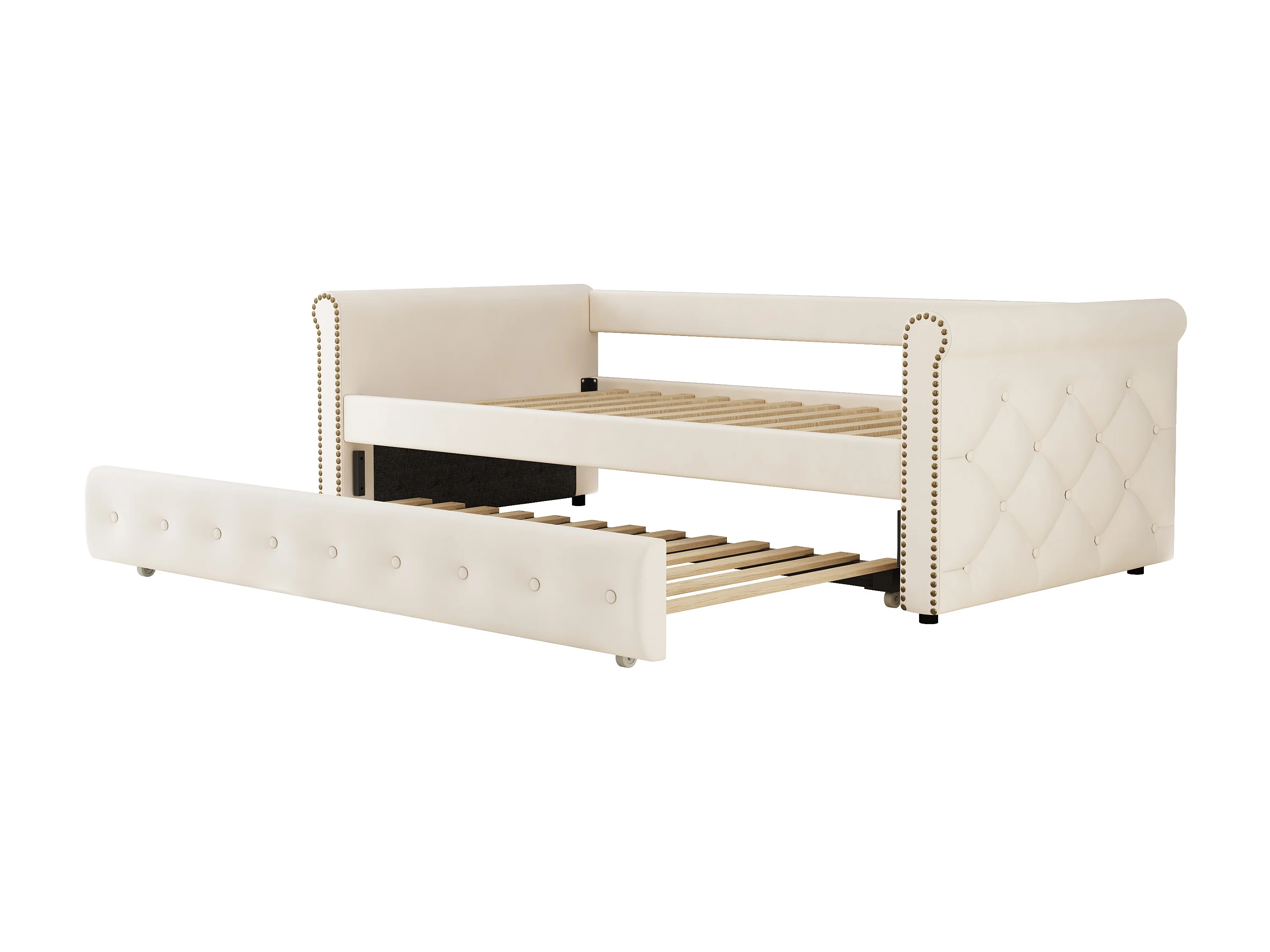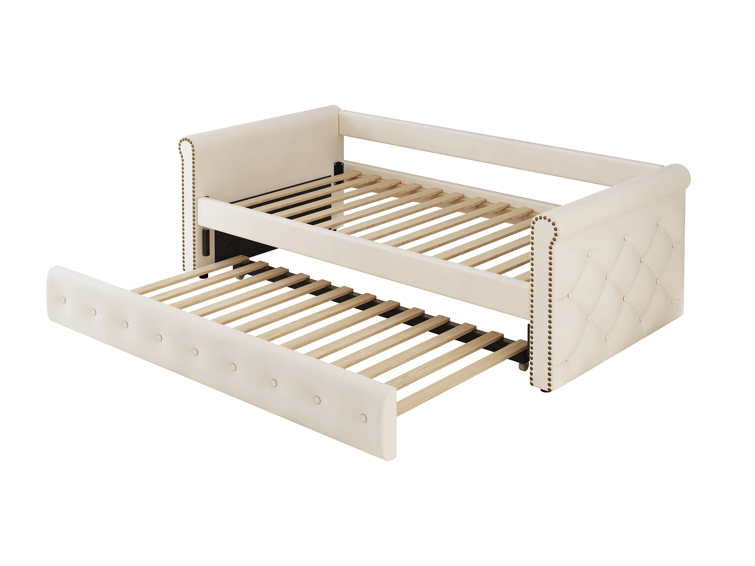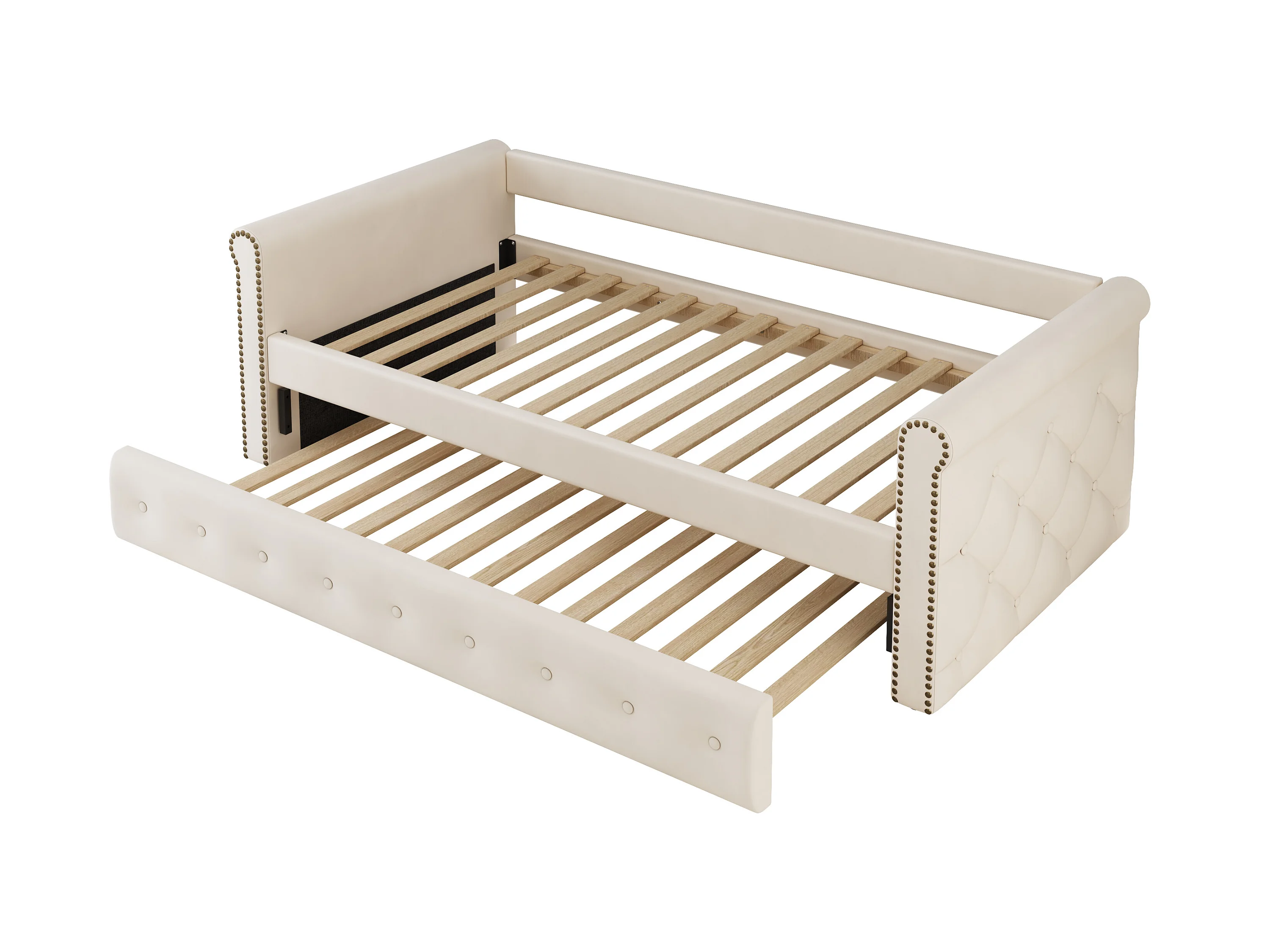 Uitschuifbed 90 x 200 cm - linnen stof - inclusief bedbodem - beige kleur