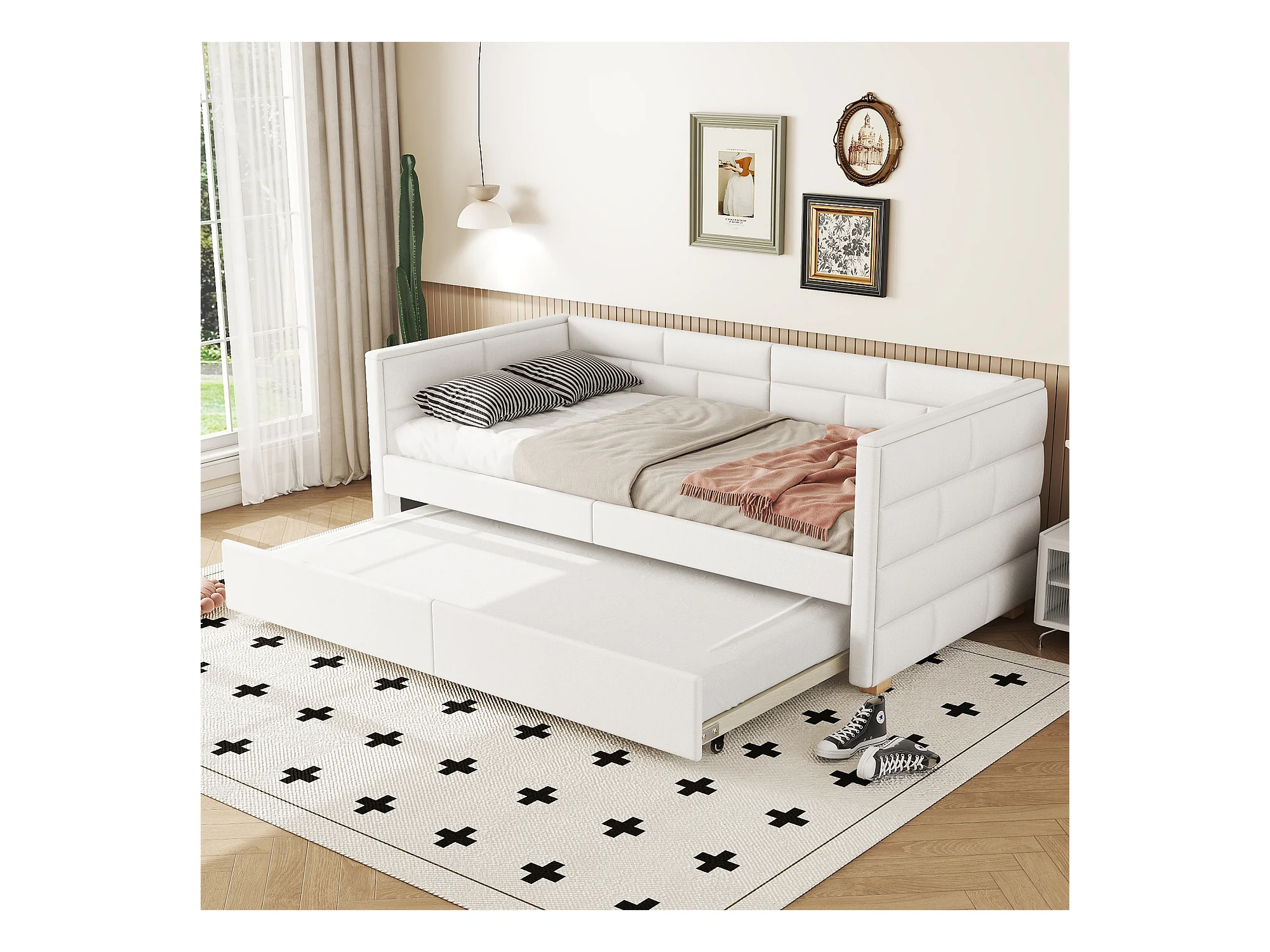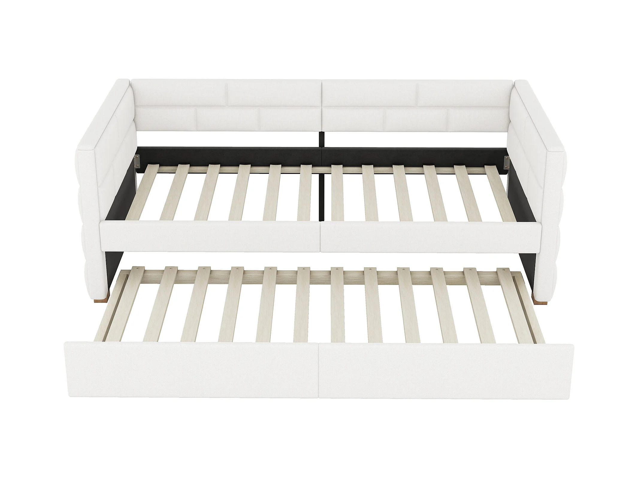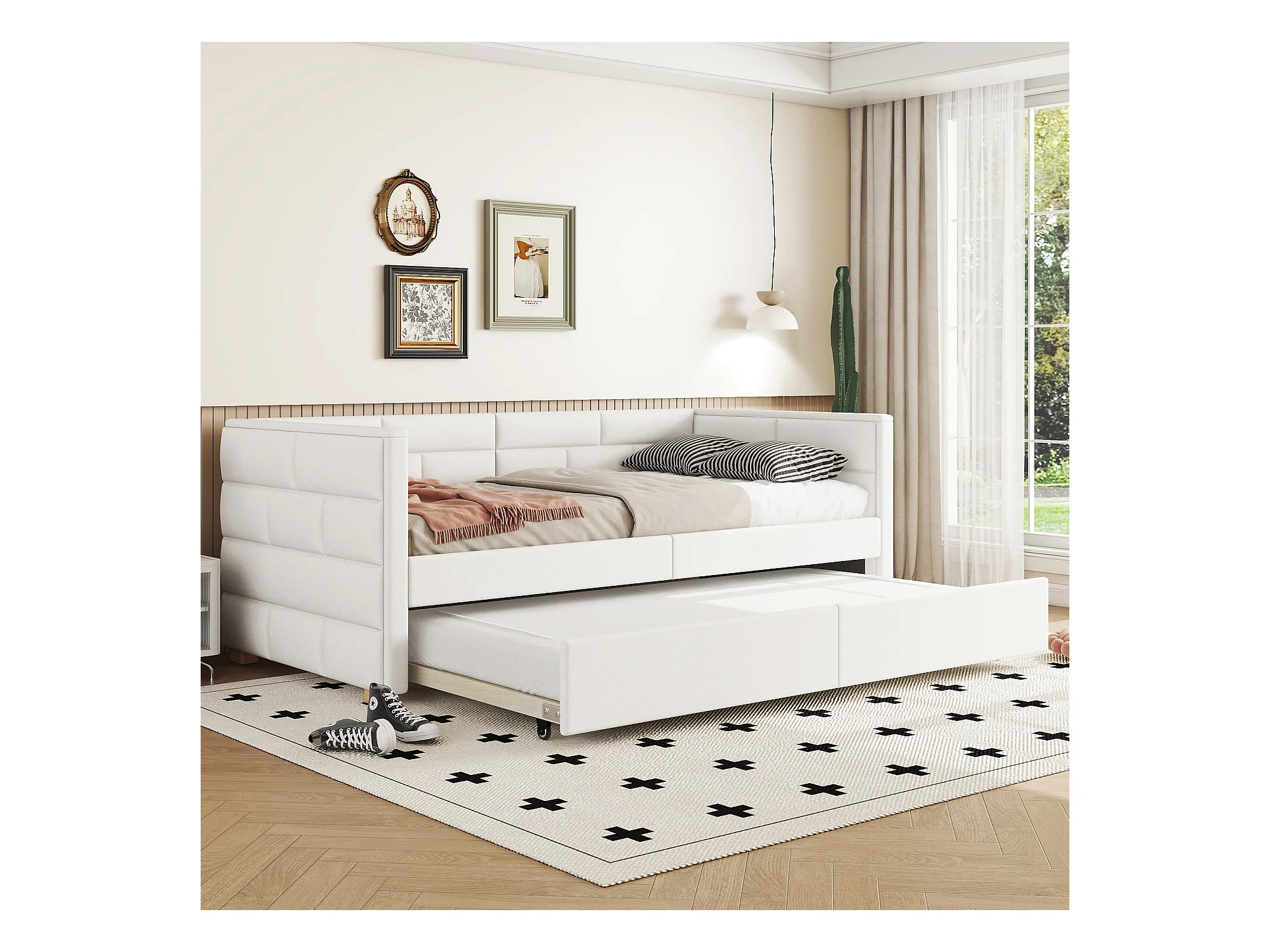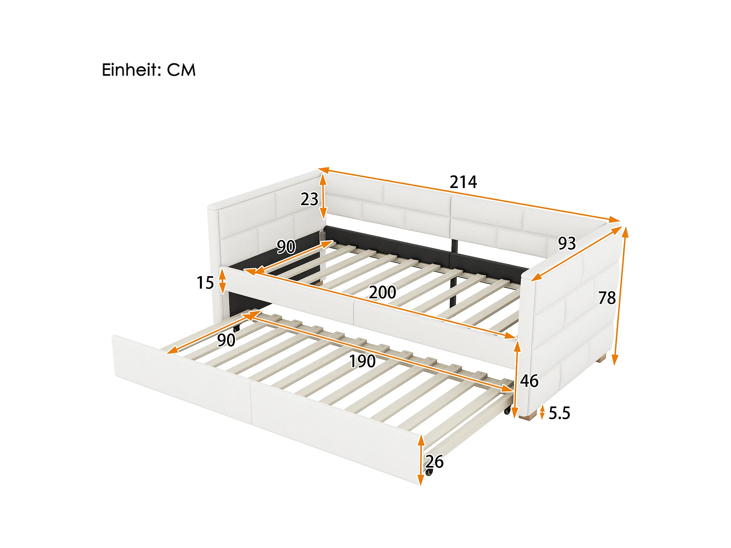 Uitschuifbed 90x200 cm Uitschuifbare slaapbank Minimalistisch eenpersoonsbed met wielen en lattenbodem - beige