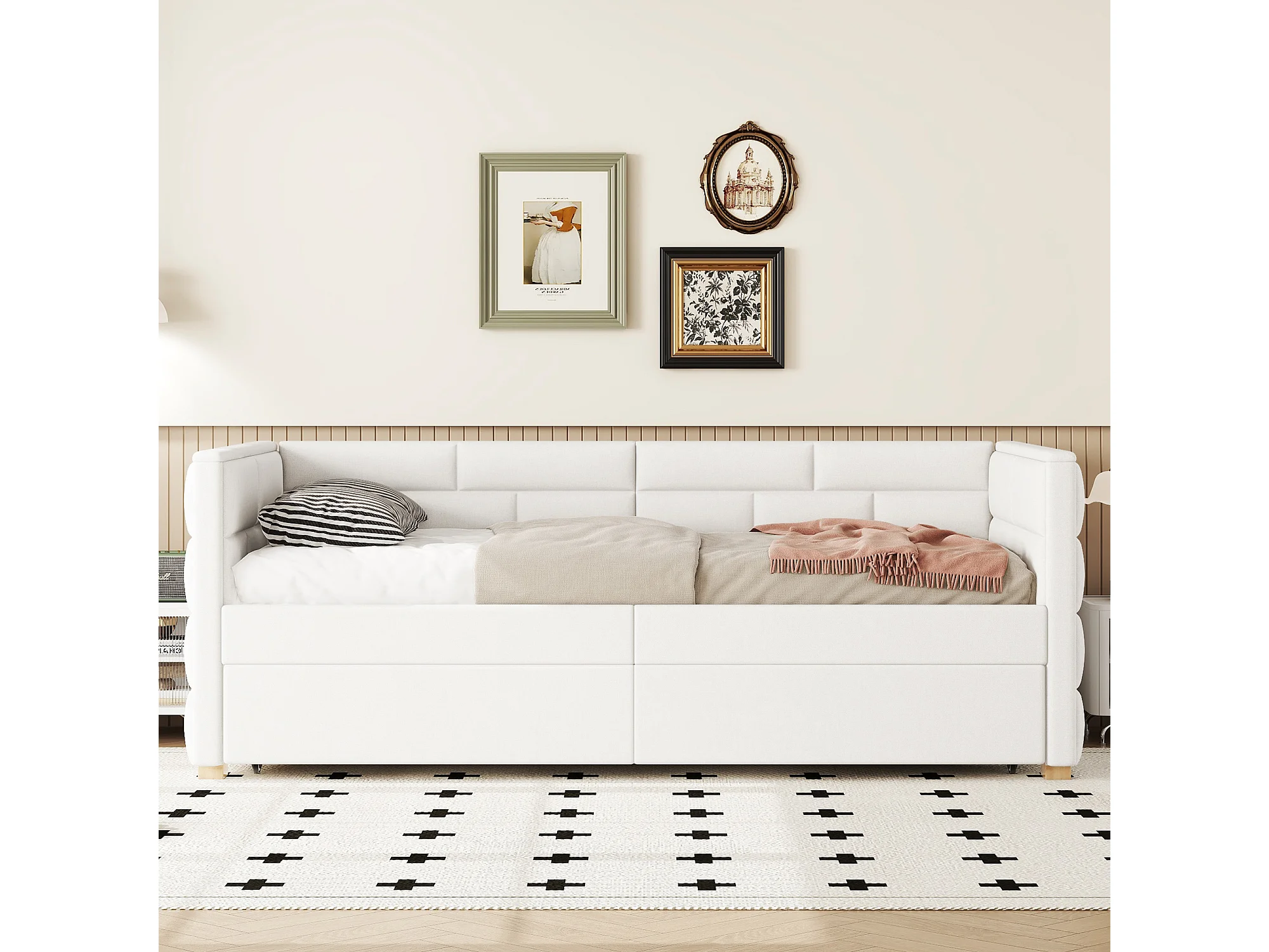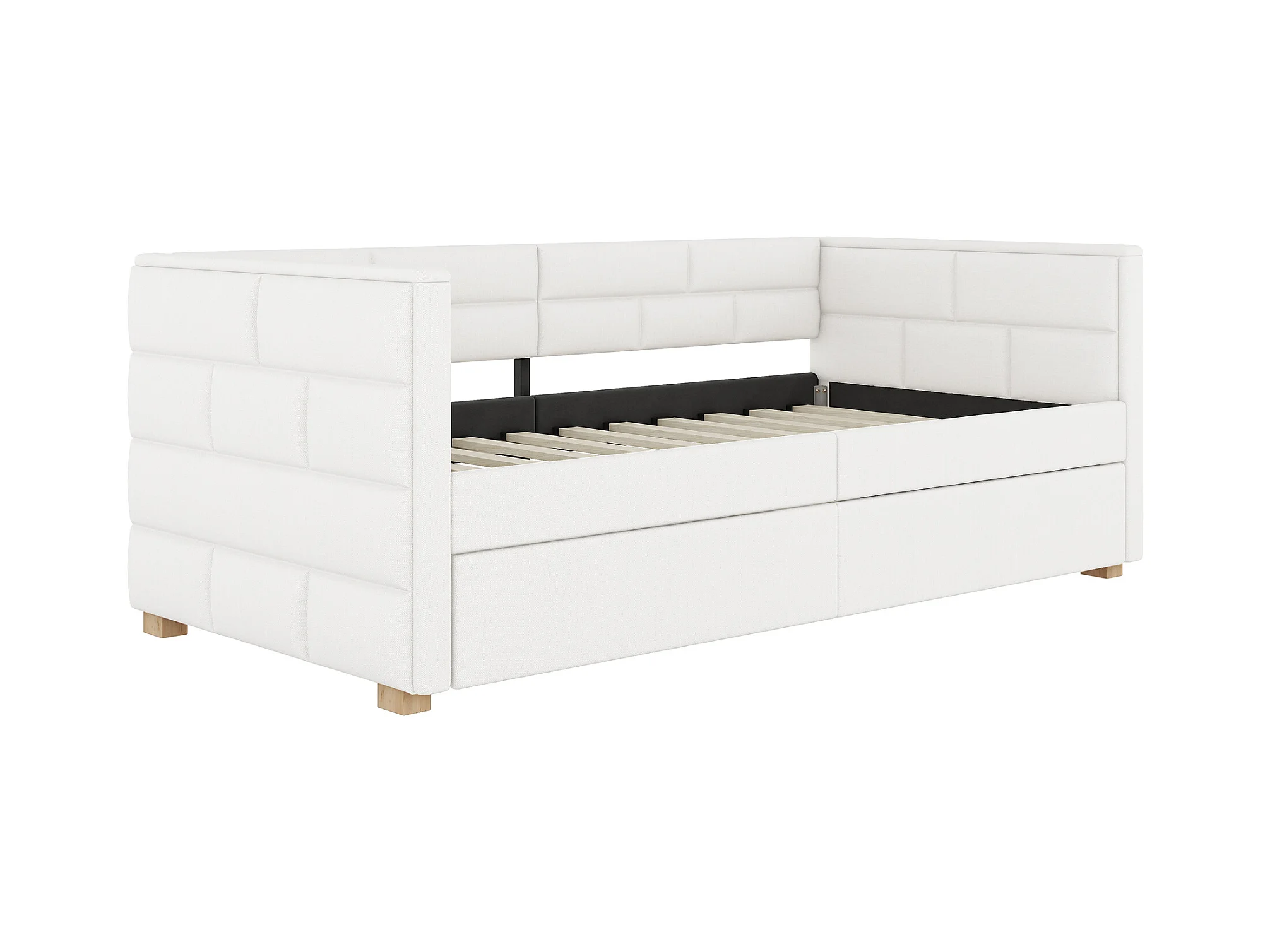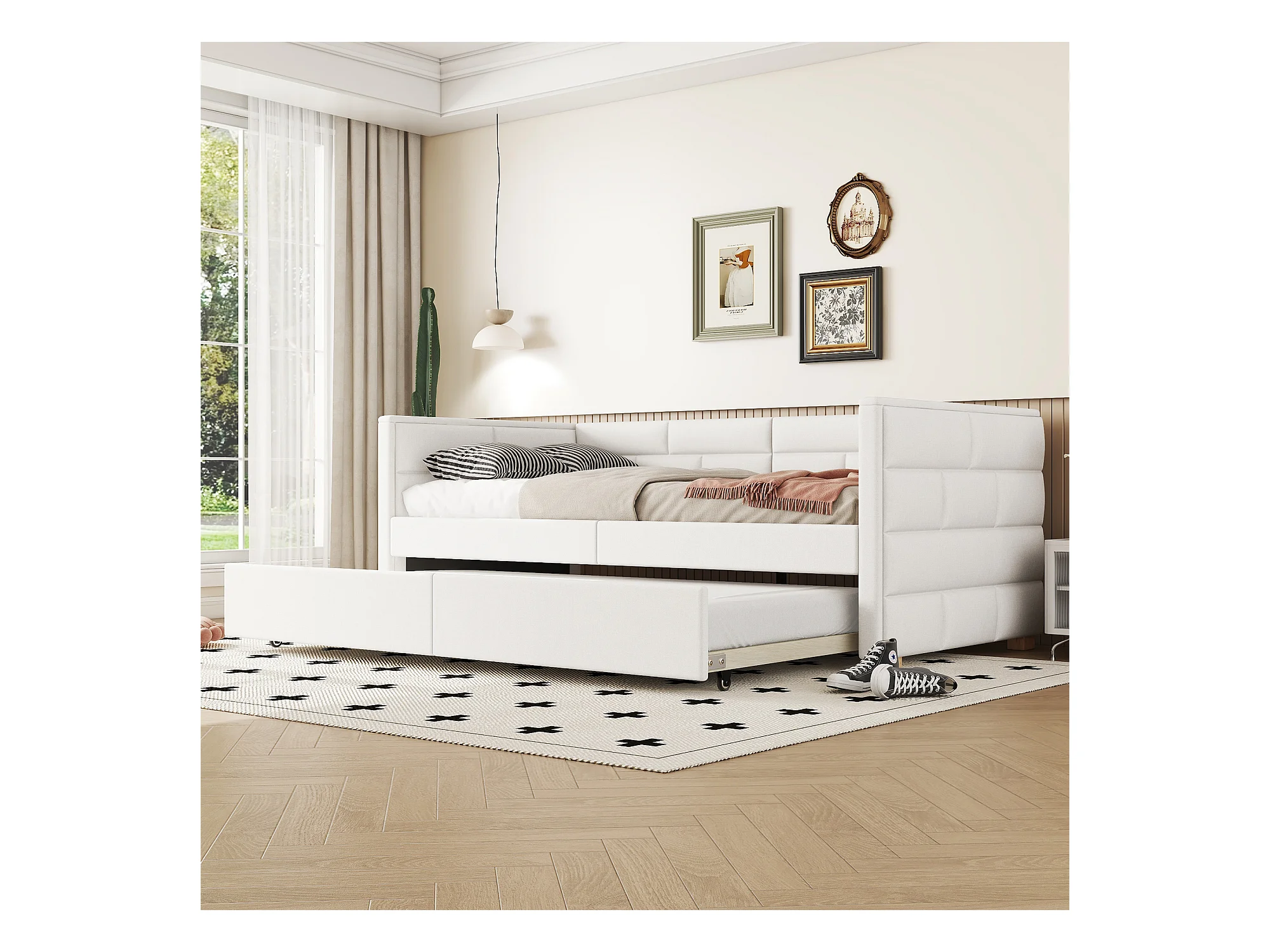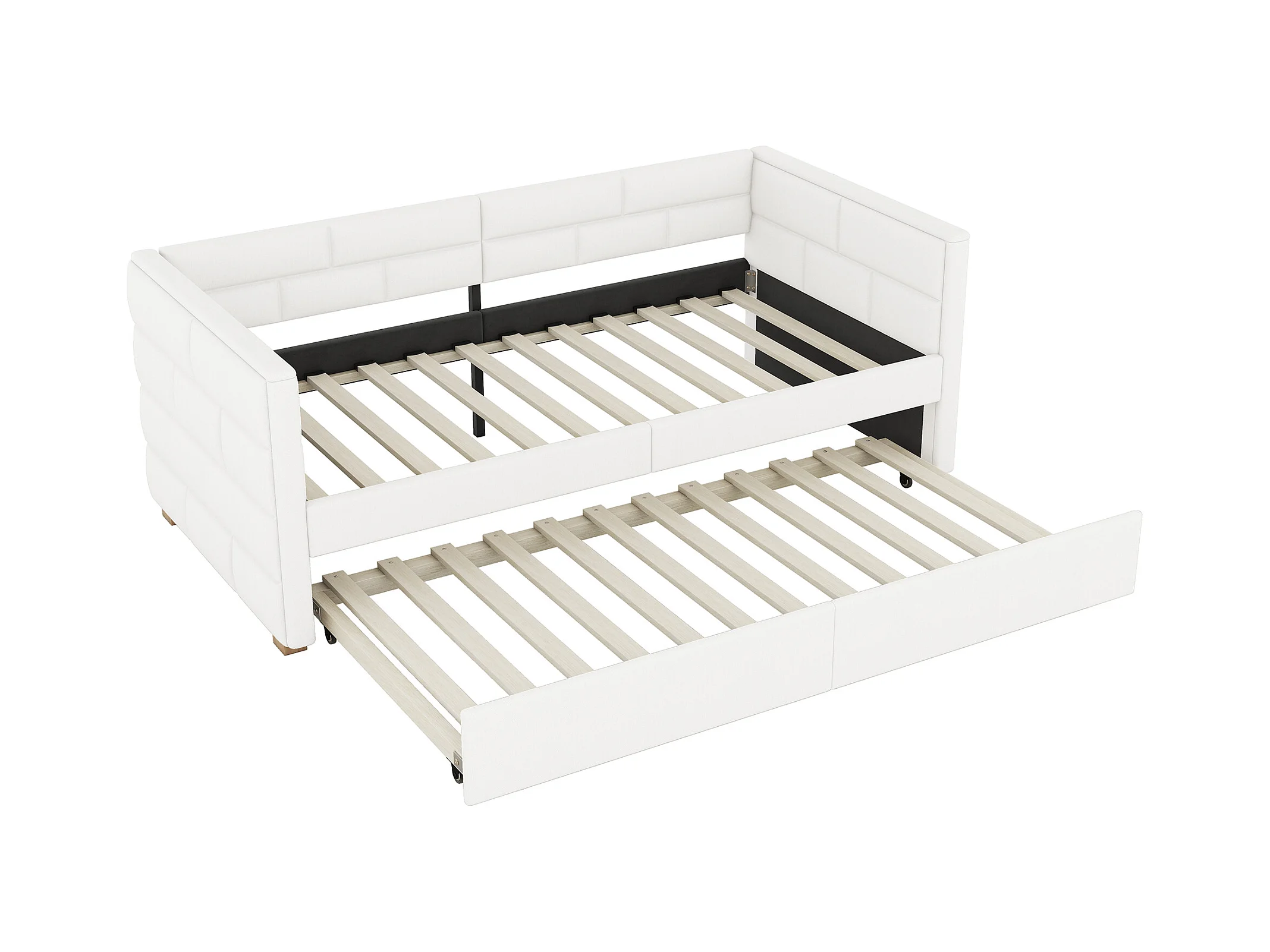 Uitschuifbed 90x200 cm Uitschuifbare slaapbank Minimalistisch eenpersoonsbed met wielen en lattenbodem - beige