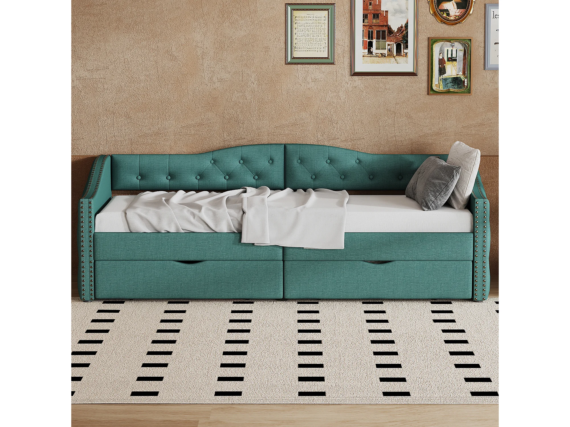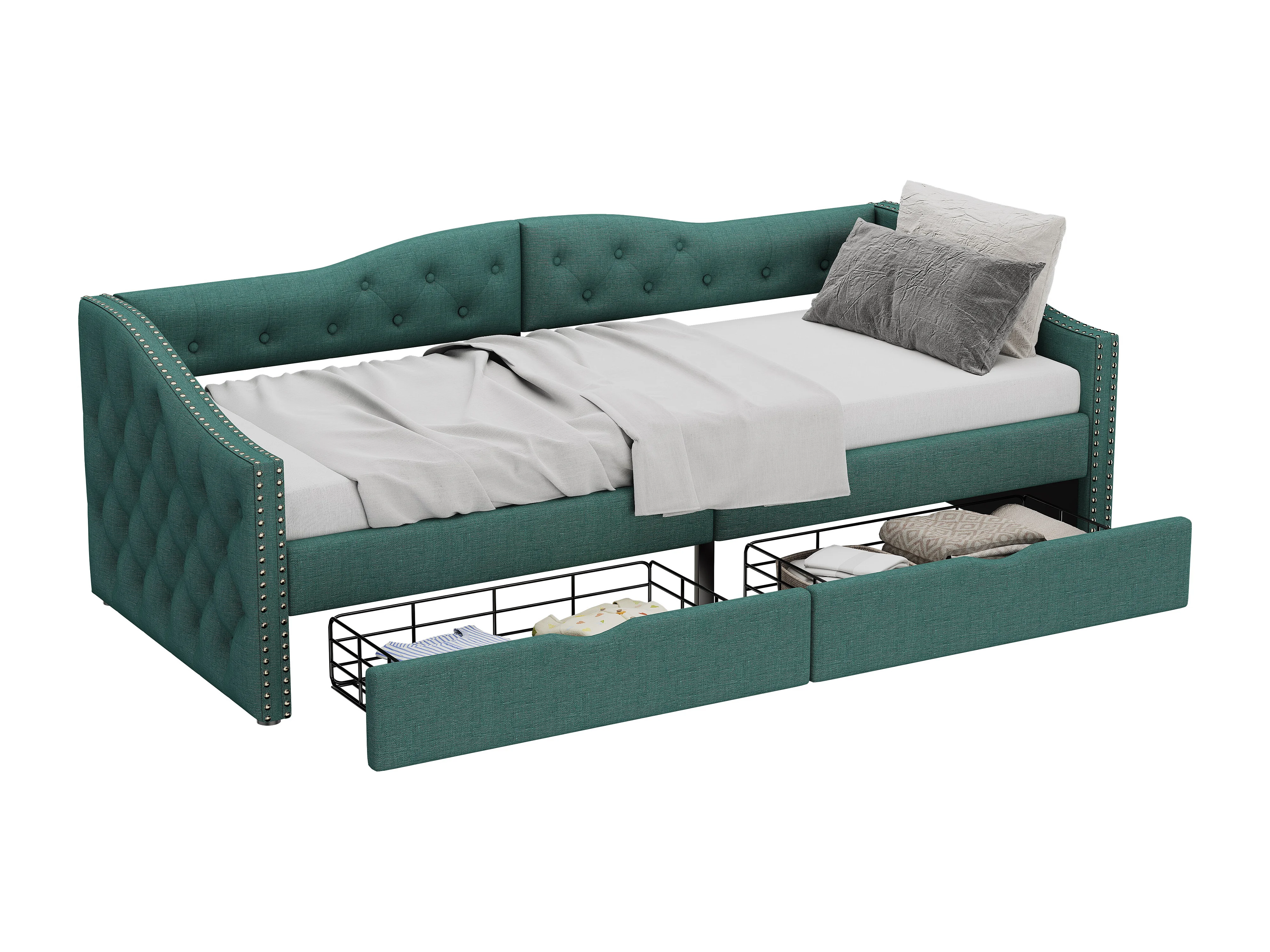 Uitschuifbed eenpersoonsbed 90 x 200 cm met lade, groen