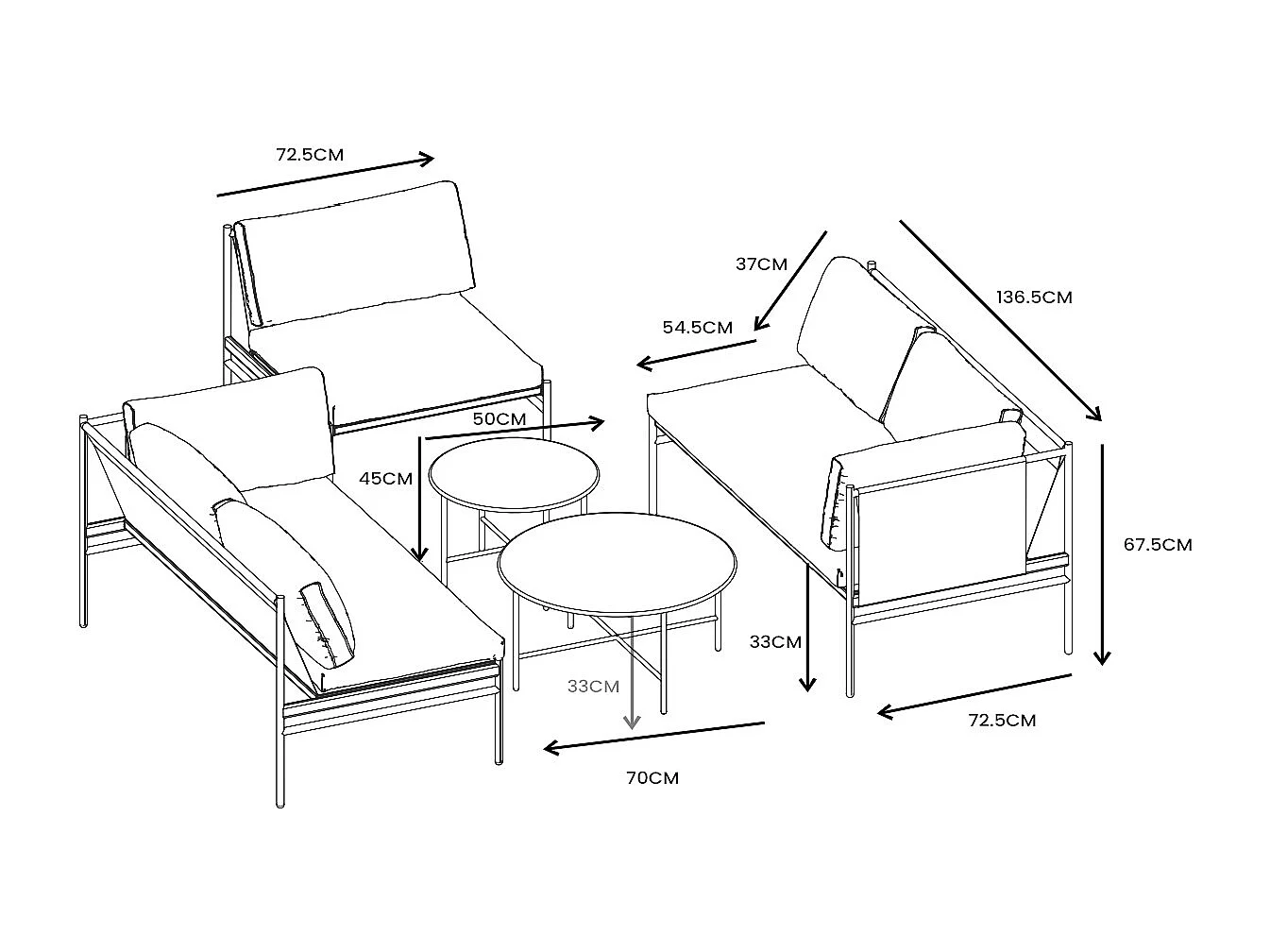 Moduleerbare tuinset van staal: 2 hoekbanken, 1 fauteuil en bijzettafels - Wit - ULAME van MYLIA