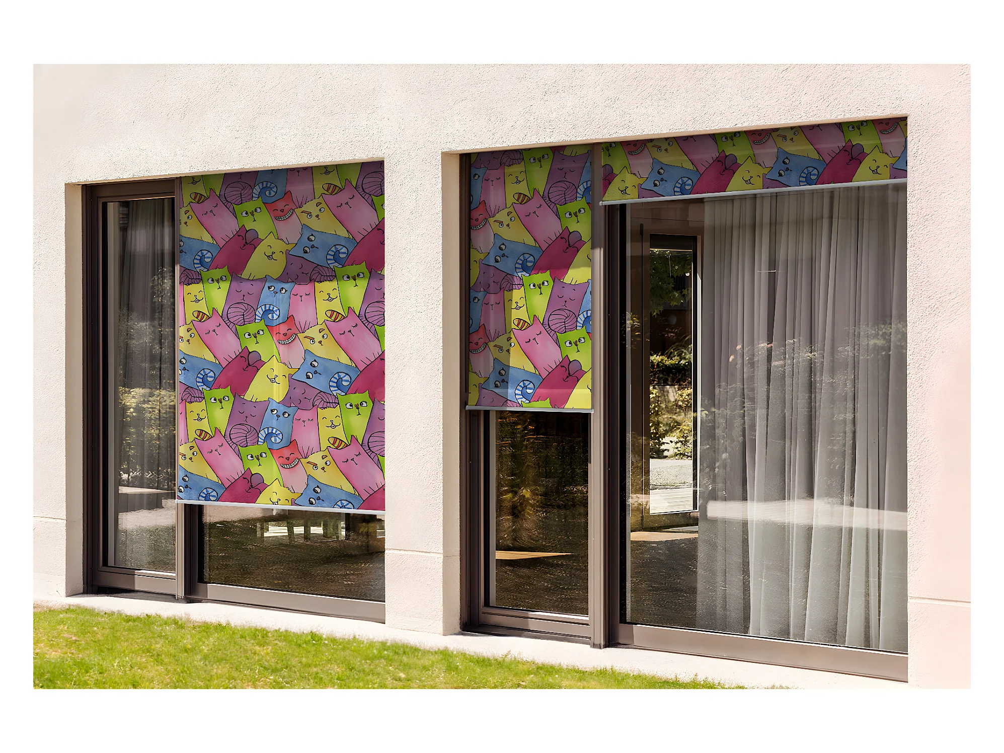 Modern buitenrolgordijn - 80x290 cm - Kleurrijke weide Balkongordijn, Balkonrolgordijn, Zonwerend gordijn
