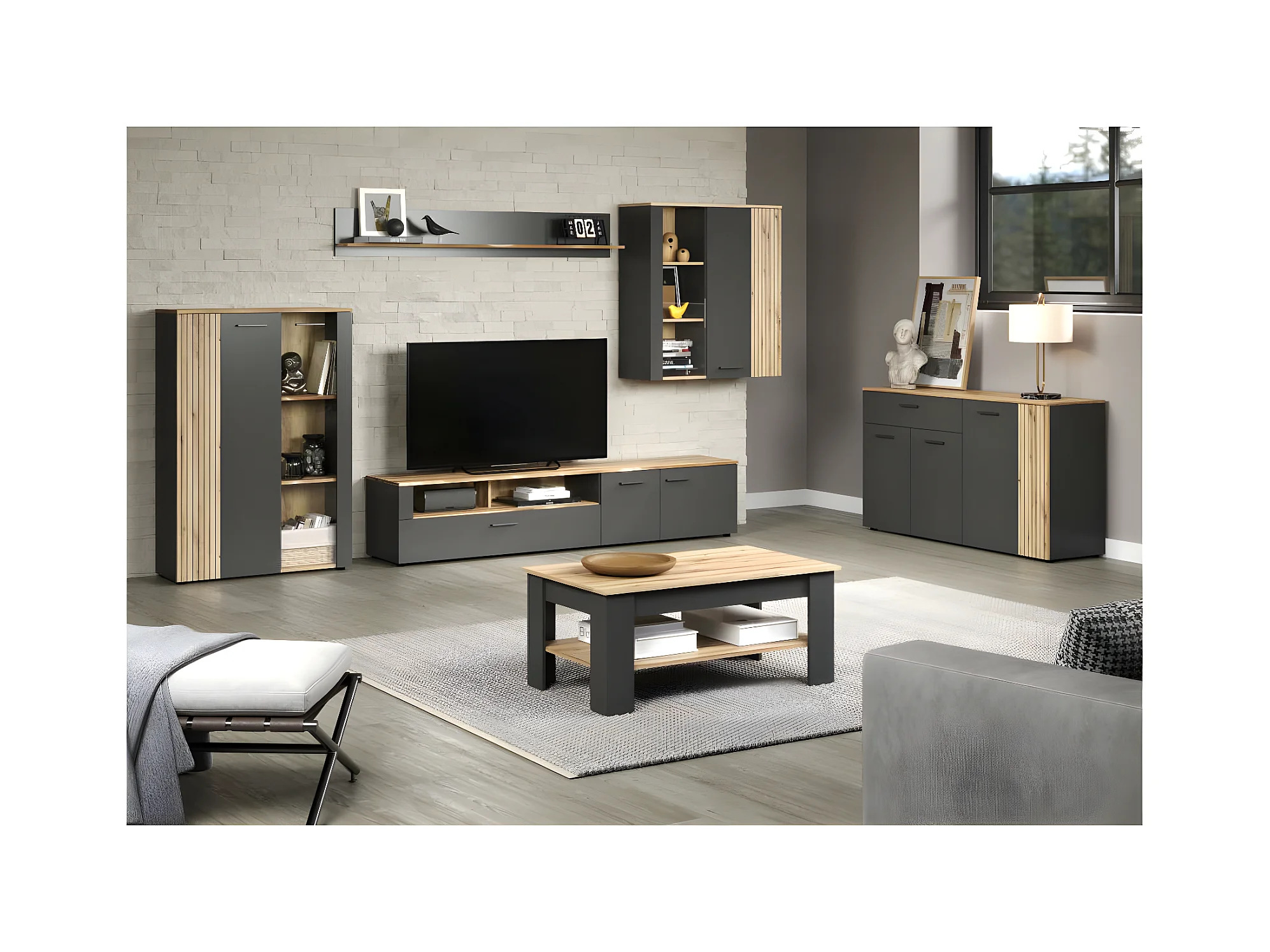Universal salontafel grijs, eik decor.
