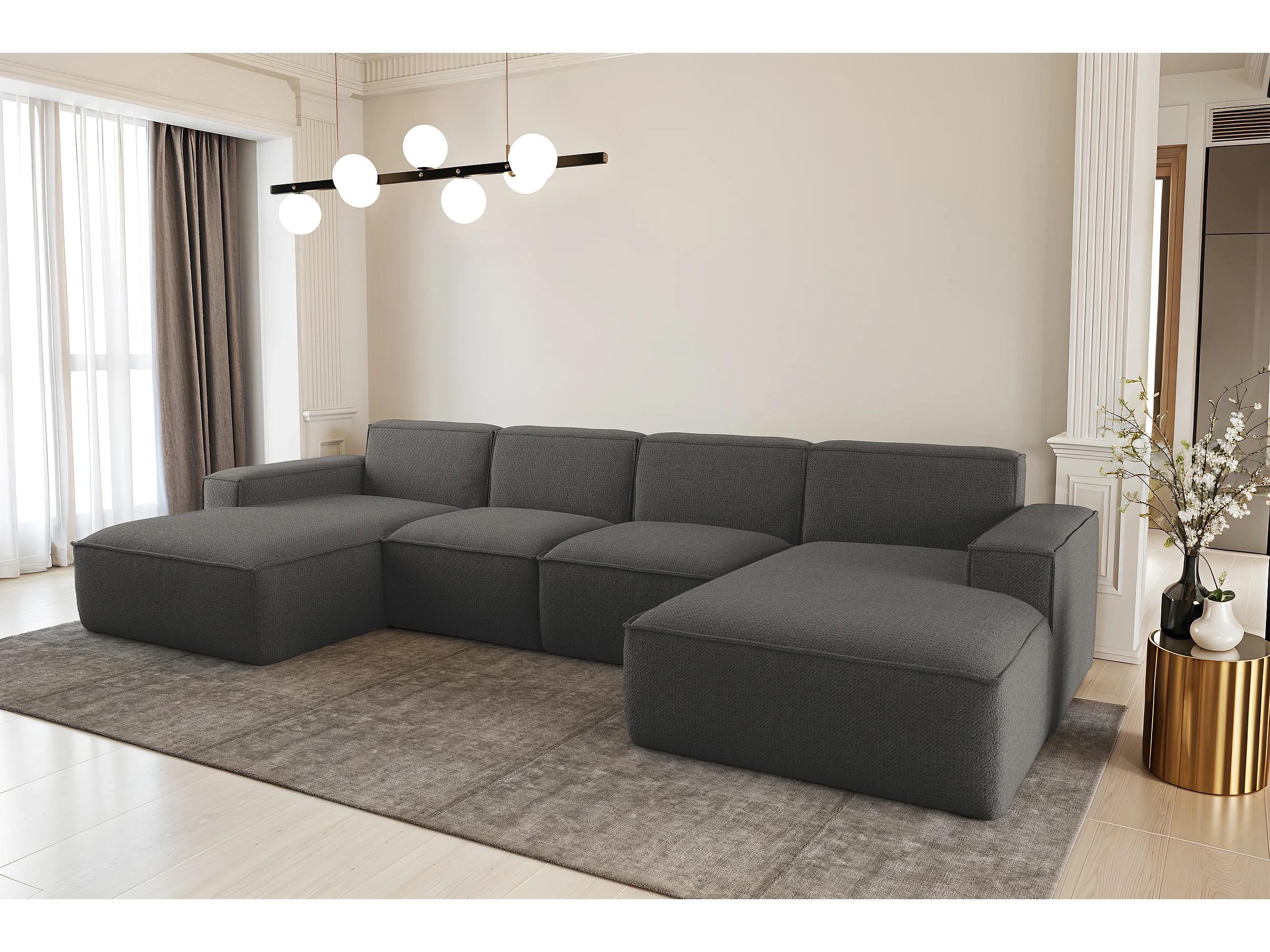 Universele hoekbank in U-vorm, voor de woonkamer, Siena Artico, grijs