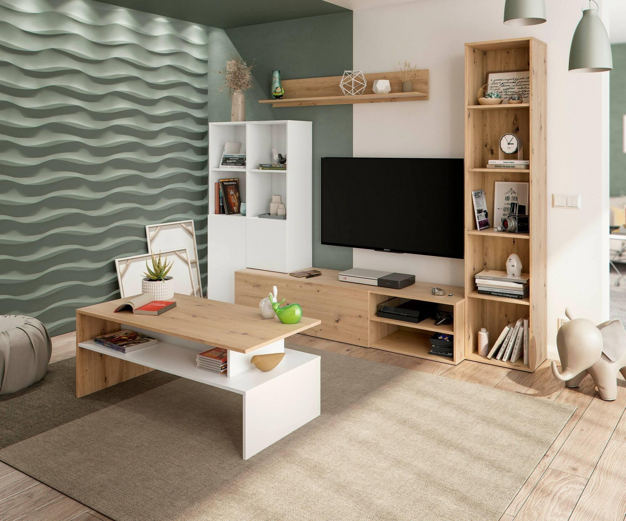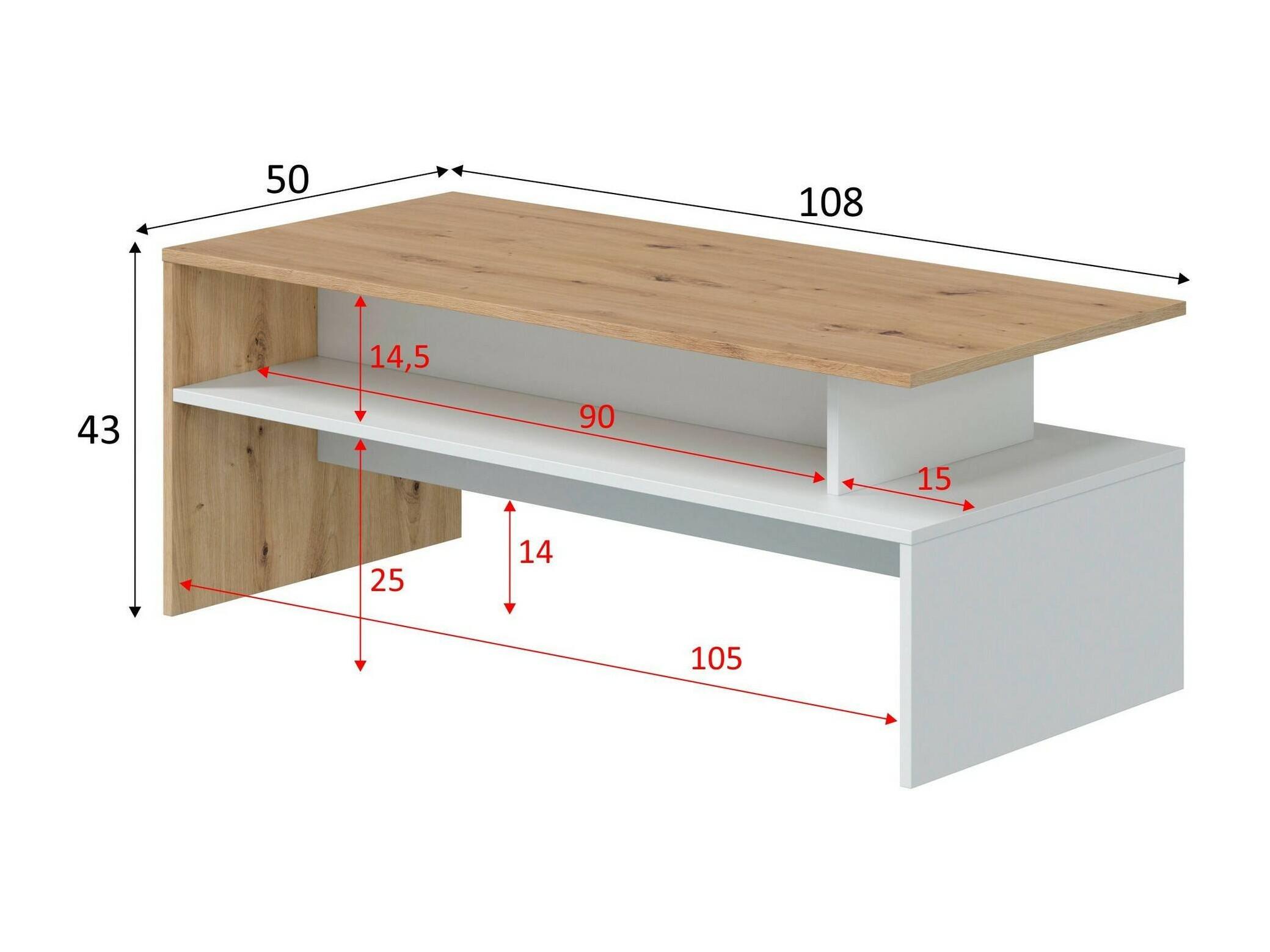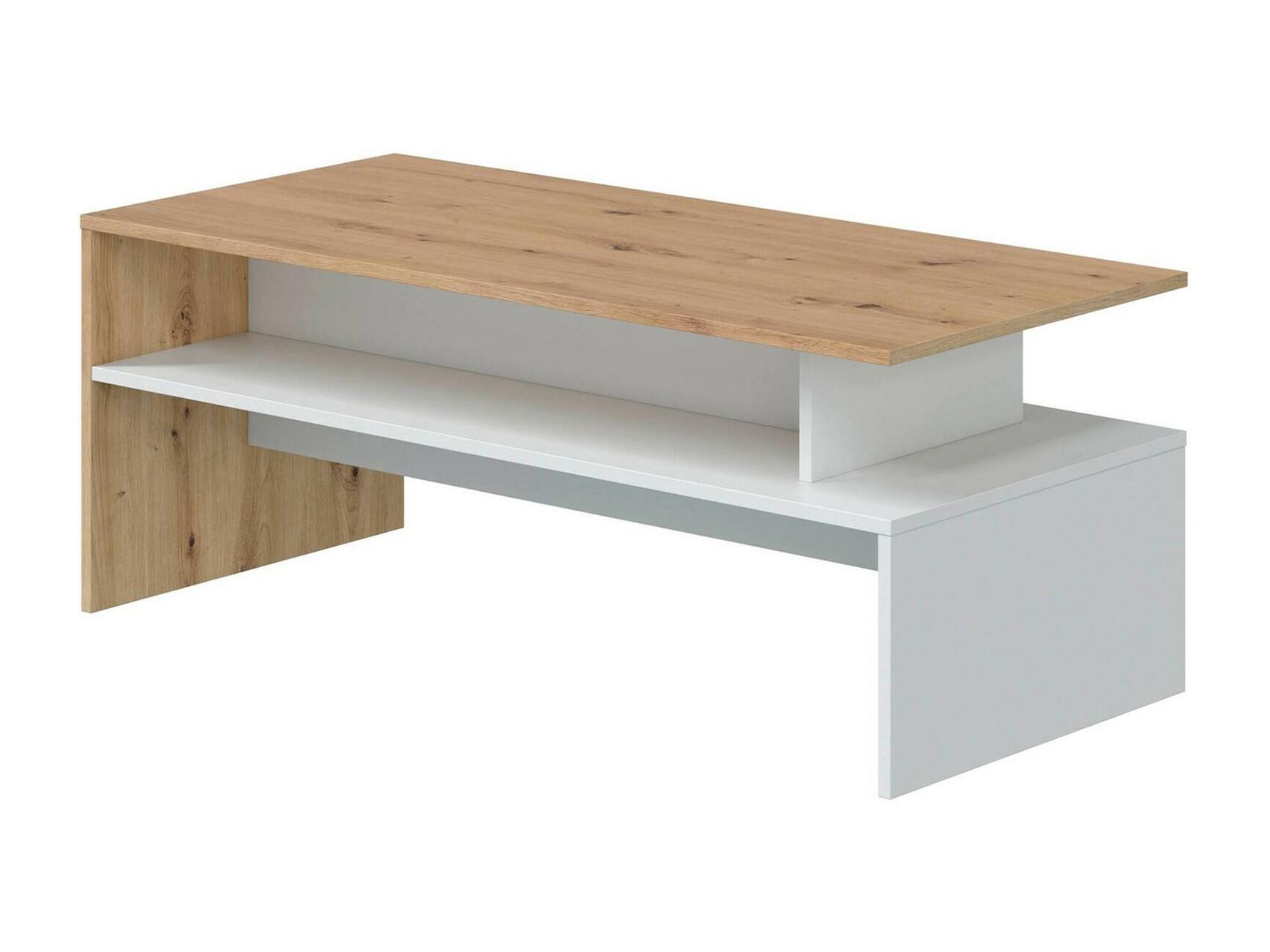 Dvannin salontafel, Lage salontafel, Tijdschriftenrek voor bank, Woonkamerplank, 99x60 h43 cm, Wit en Eiken