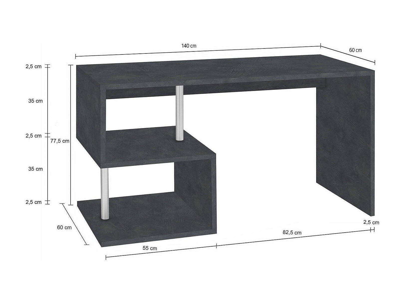 Dmorisc bureau, Lineair pc-bureau, multifunctionele kantoortafel, ruimtebesparend bureau met meerdere posities, 100% gemaakt in Italië, 140x60h78 cm, leisteen