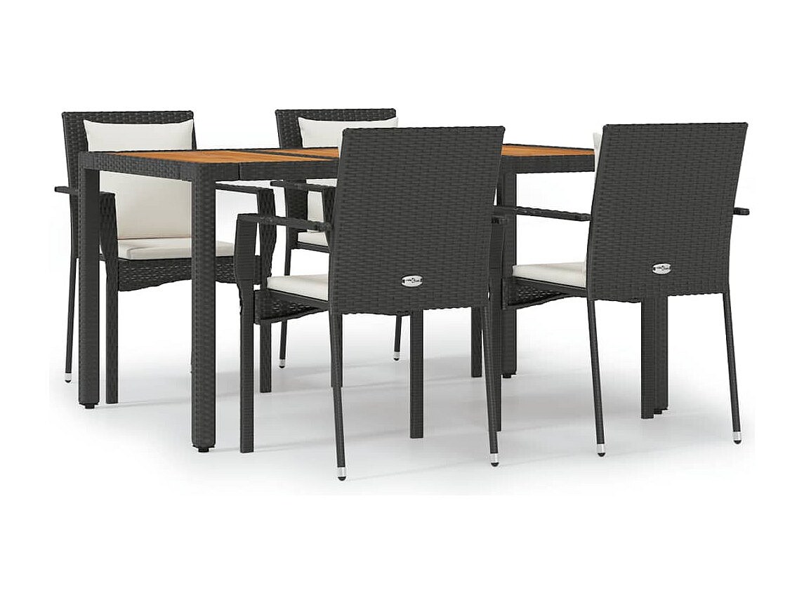 Arvild 5-delige Tuinset met kussens poly rattan zwart