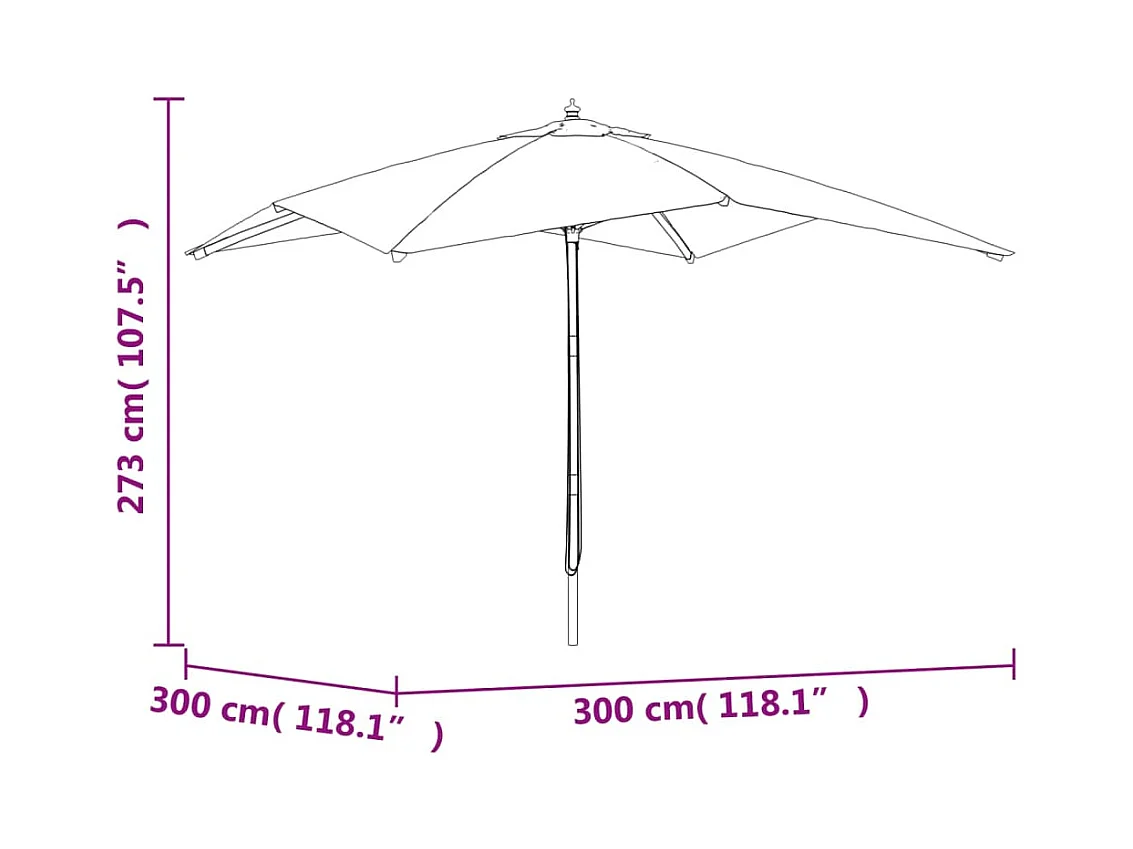 Varel Parasol met houten paal 300x300x273 cm antracietkleurig