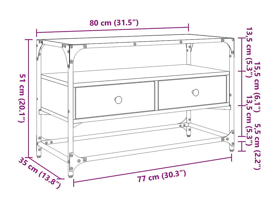 Varel Tv-meubel met glazen blad 80x35x51 cm hout gerookt eikenkleurig