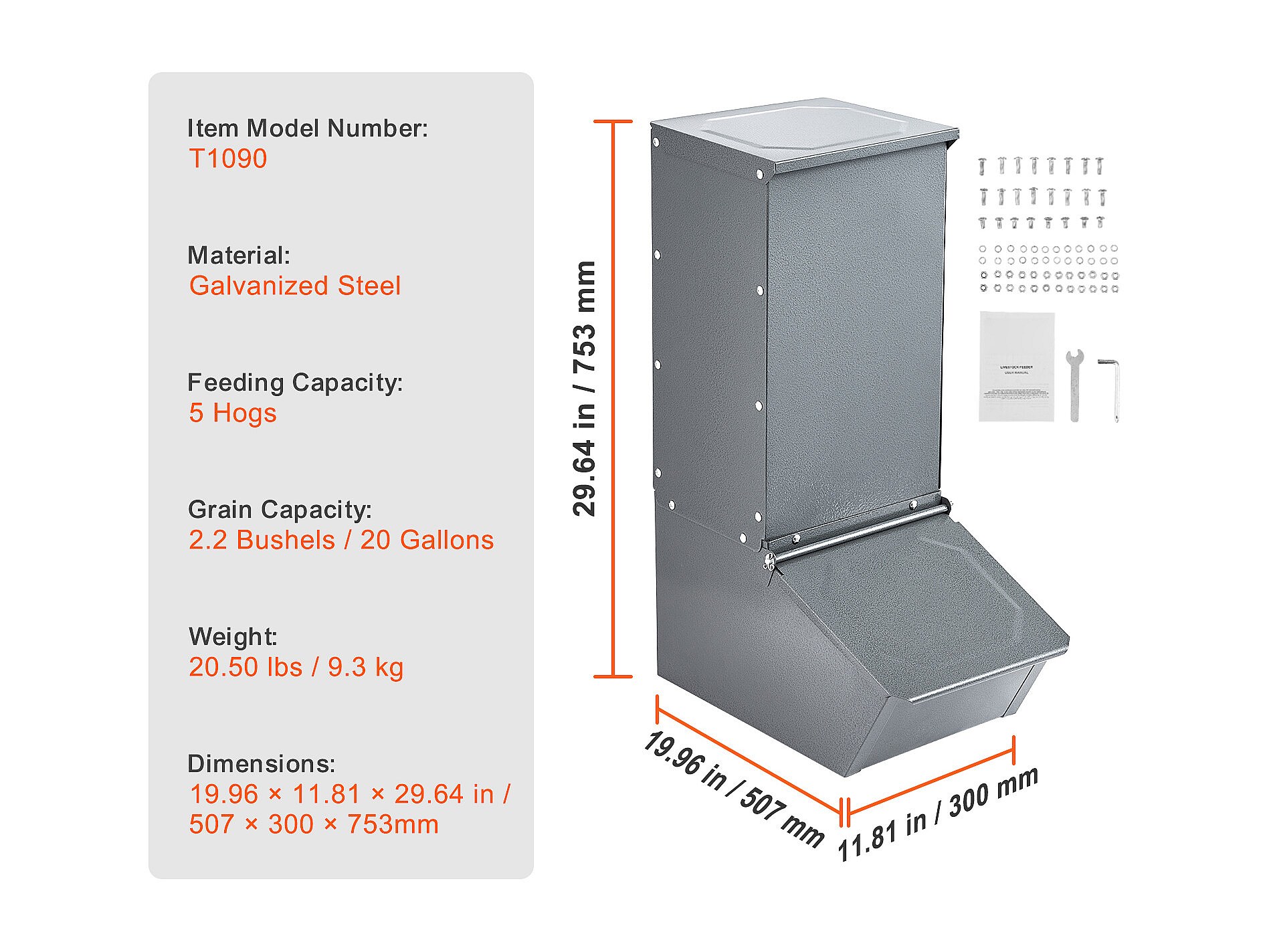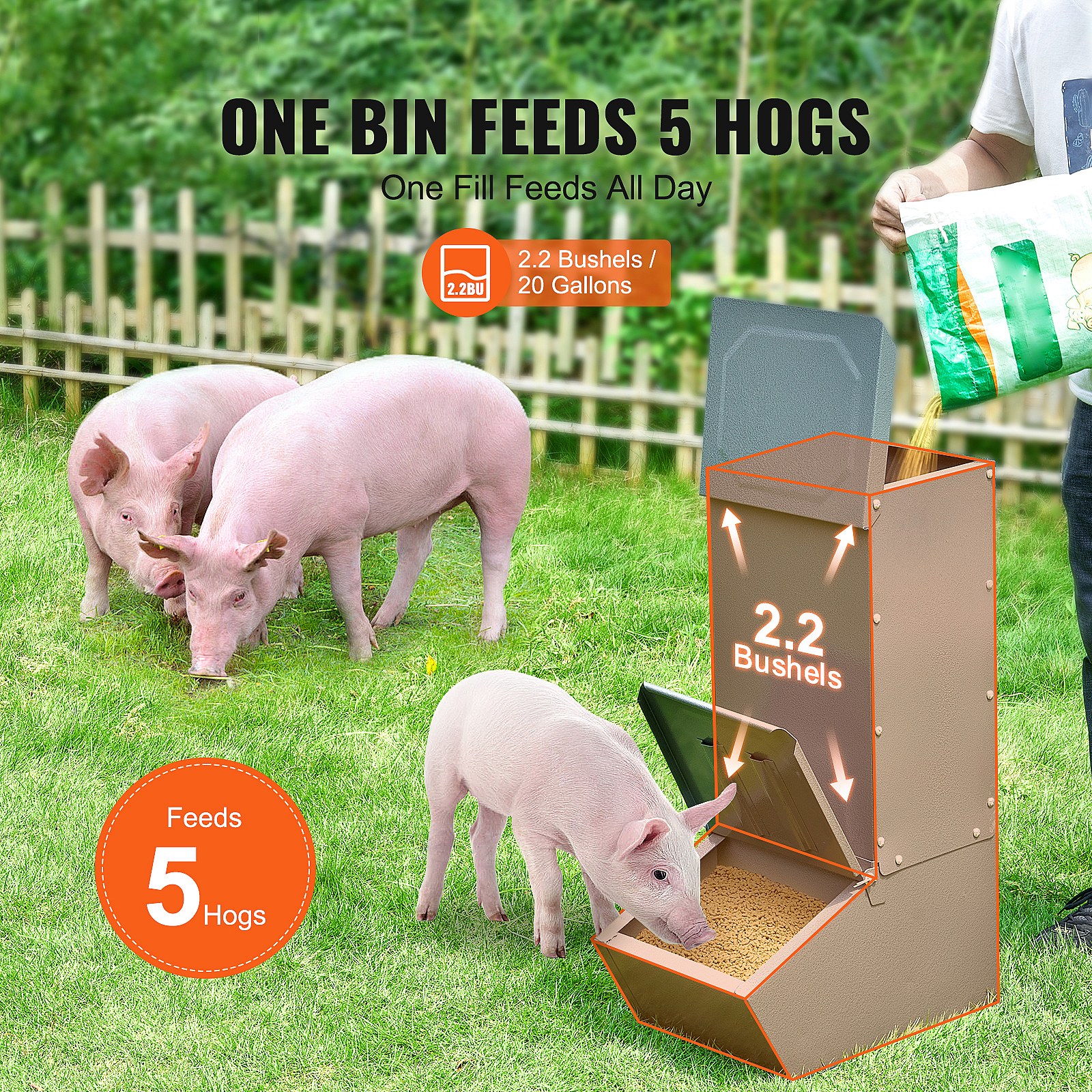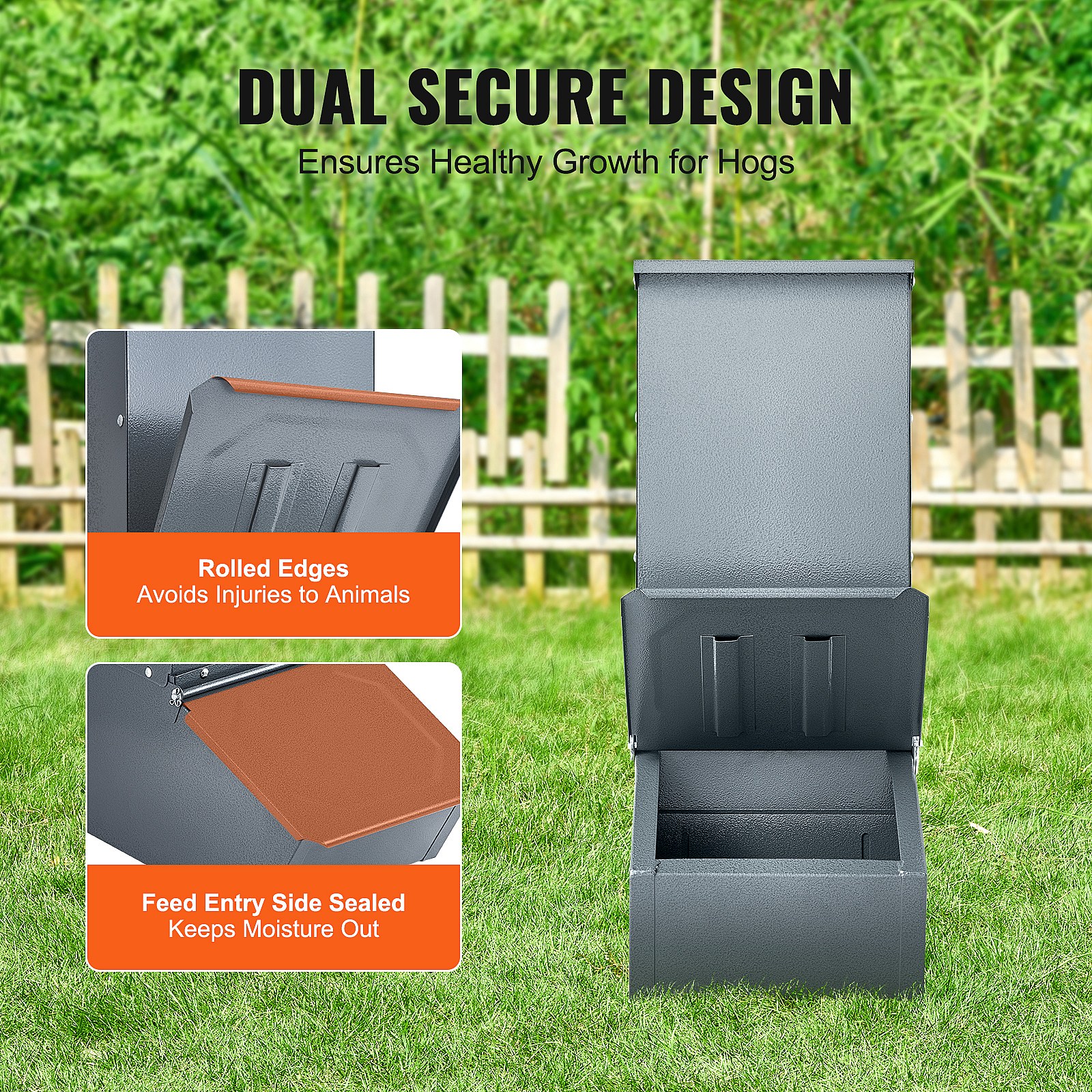Varkensvoerbak SucceBuy , 77 L, Dubbele Metalen Deur voor Maximaal 5 Varkens, Robuust Gegalvaniseerd Staal