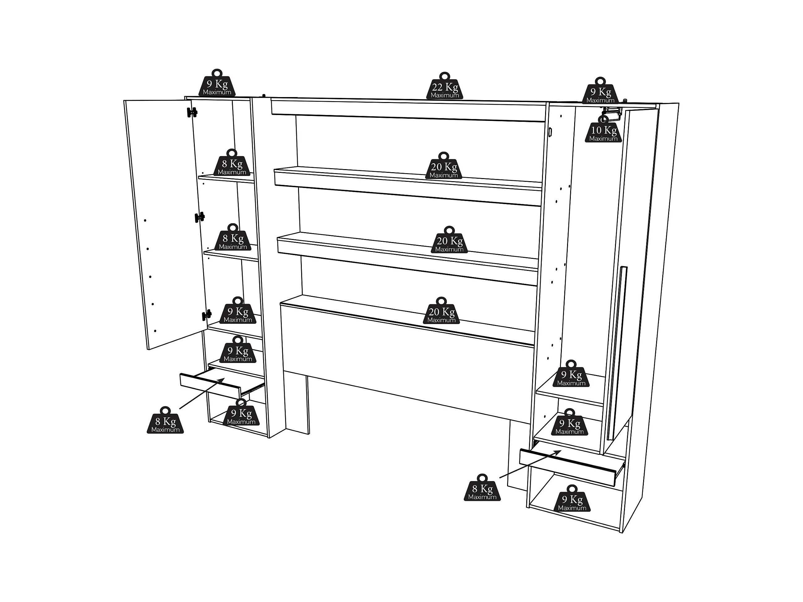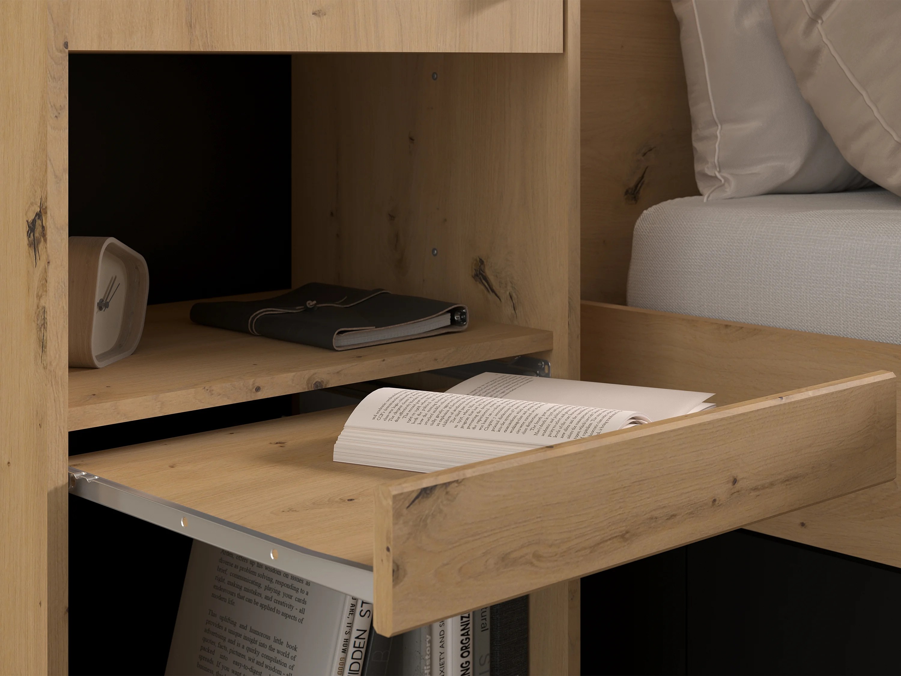 Bed met bedbrug 140 x 190/200 cm met opbergruimte - Met ledverlichting - Kleur: naturel en zwart - VARLY