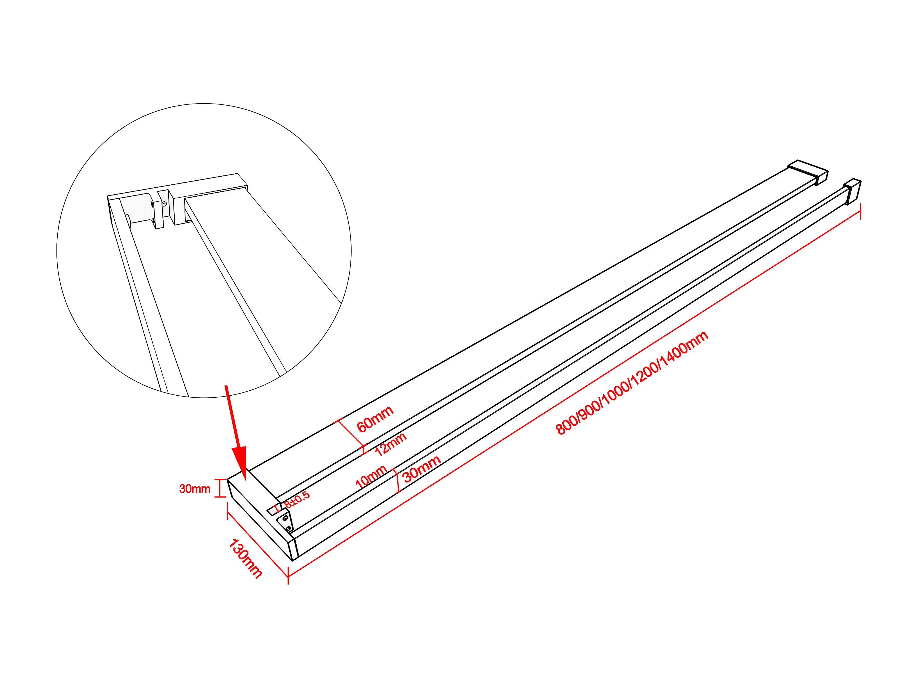 Douchewand 100 x 200 cm - 8 mm antikalkglas, moderne stijl + 80 cm aluminium doucheplank 100 cm aluminium douche