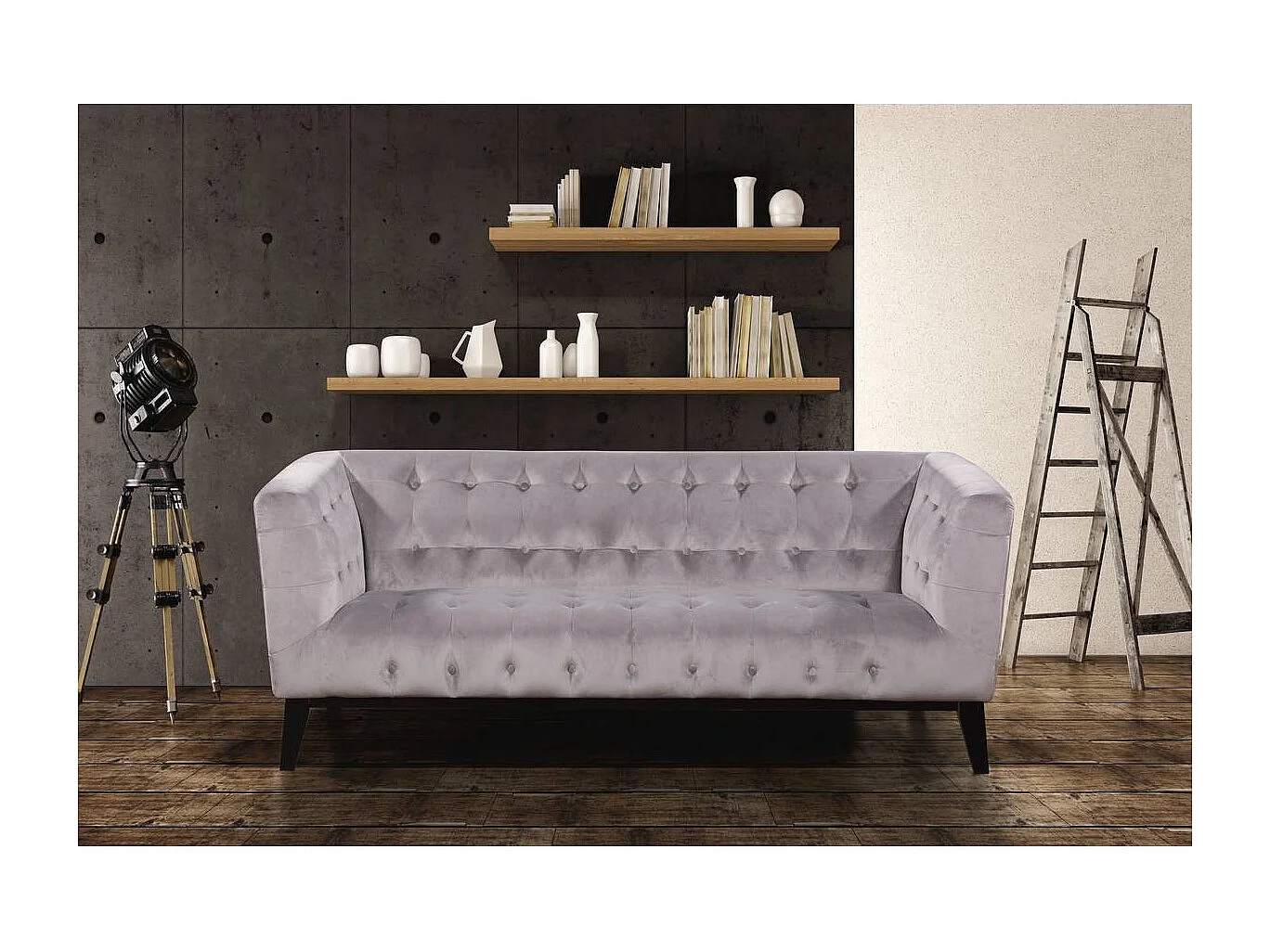 Bank bankstel velours fluweel meubel "Vanessa" - 3 zits - Grijs lichtgrijs