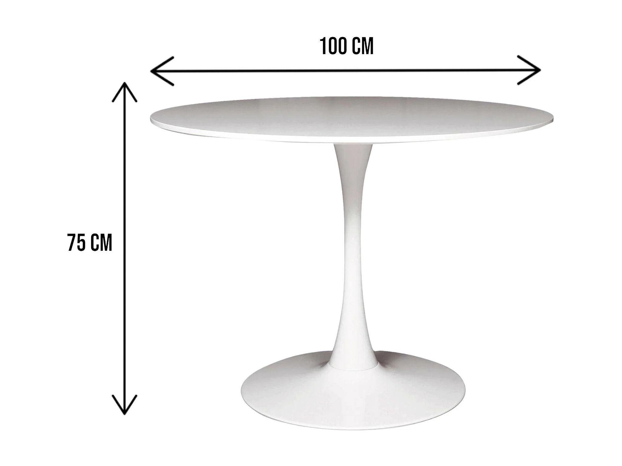 Vaste tafel 0, Ronde multifunctionele salontafel, Eettafel met metalen structuur en laminaatplank, 100xh75 cm, Wit