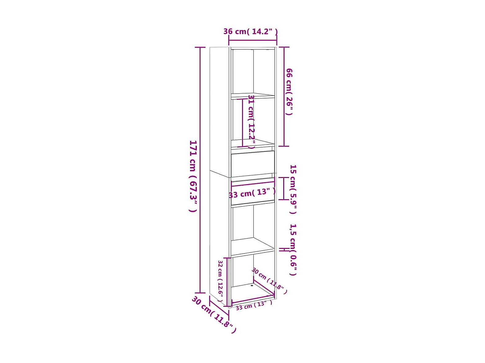 Boekenkast/tv-meubel 36x30x143 cm bewerkt hout wit NL379850