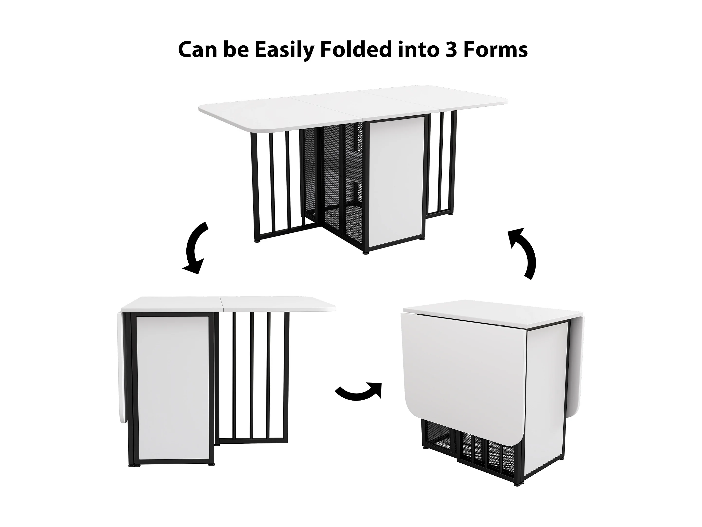Veelzijdige intrekbare opklapbare eettafel met opbergplanken - spaanplaat - wit en zwart
