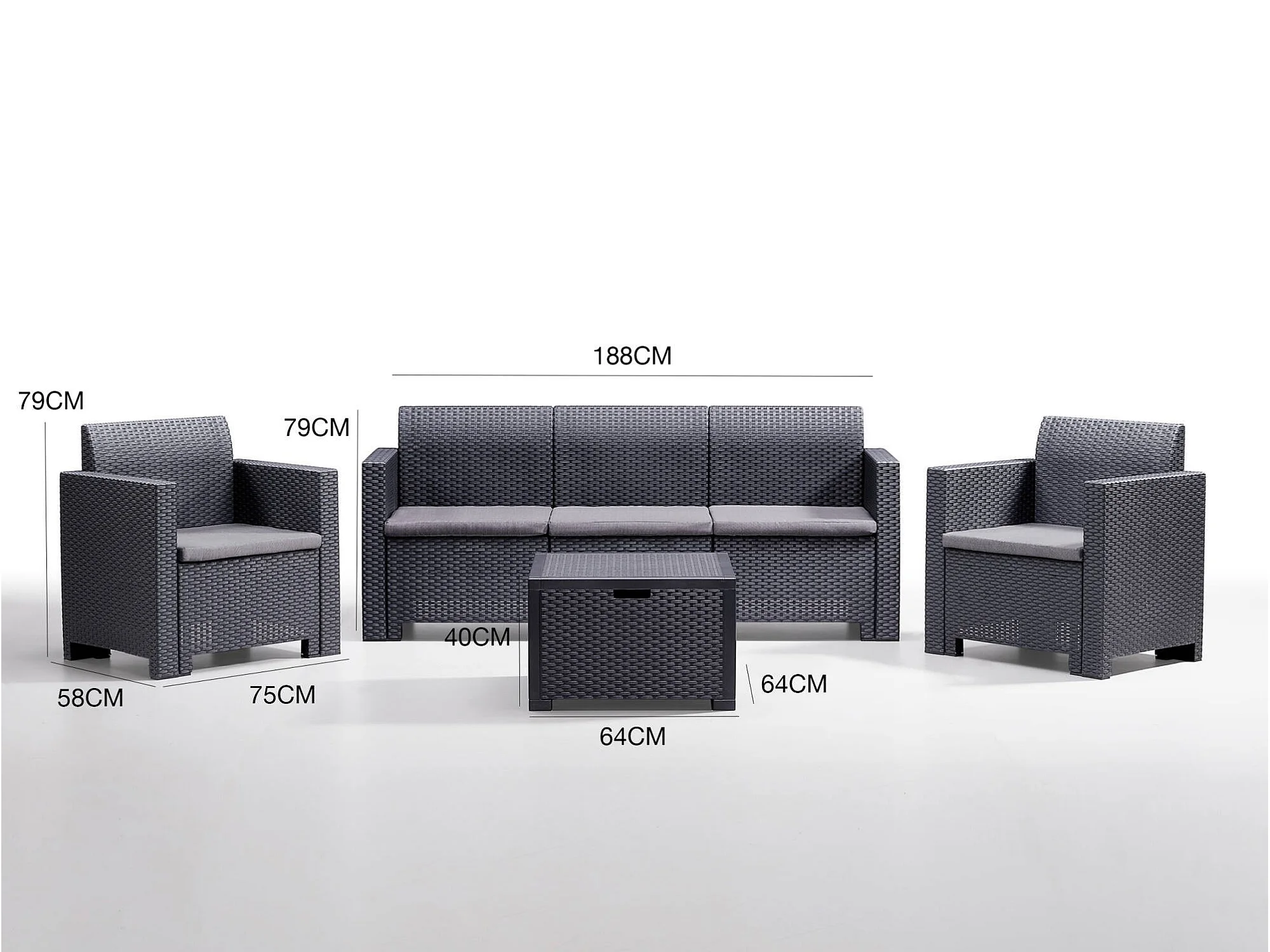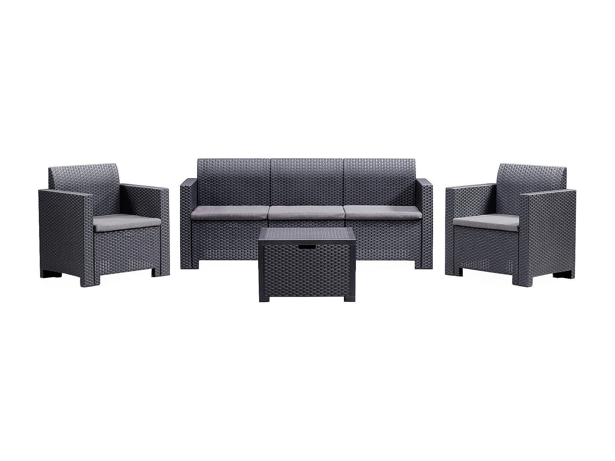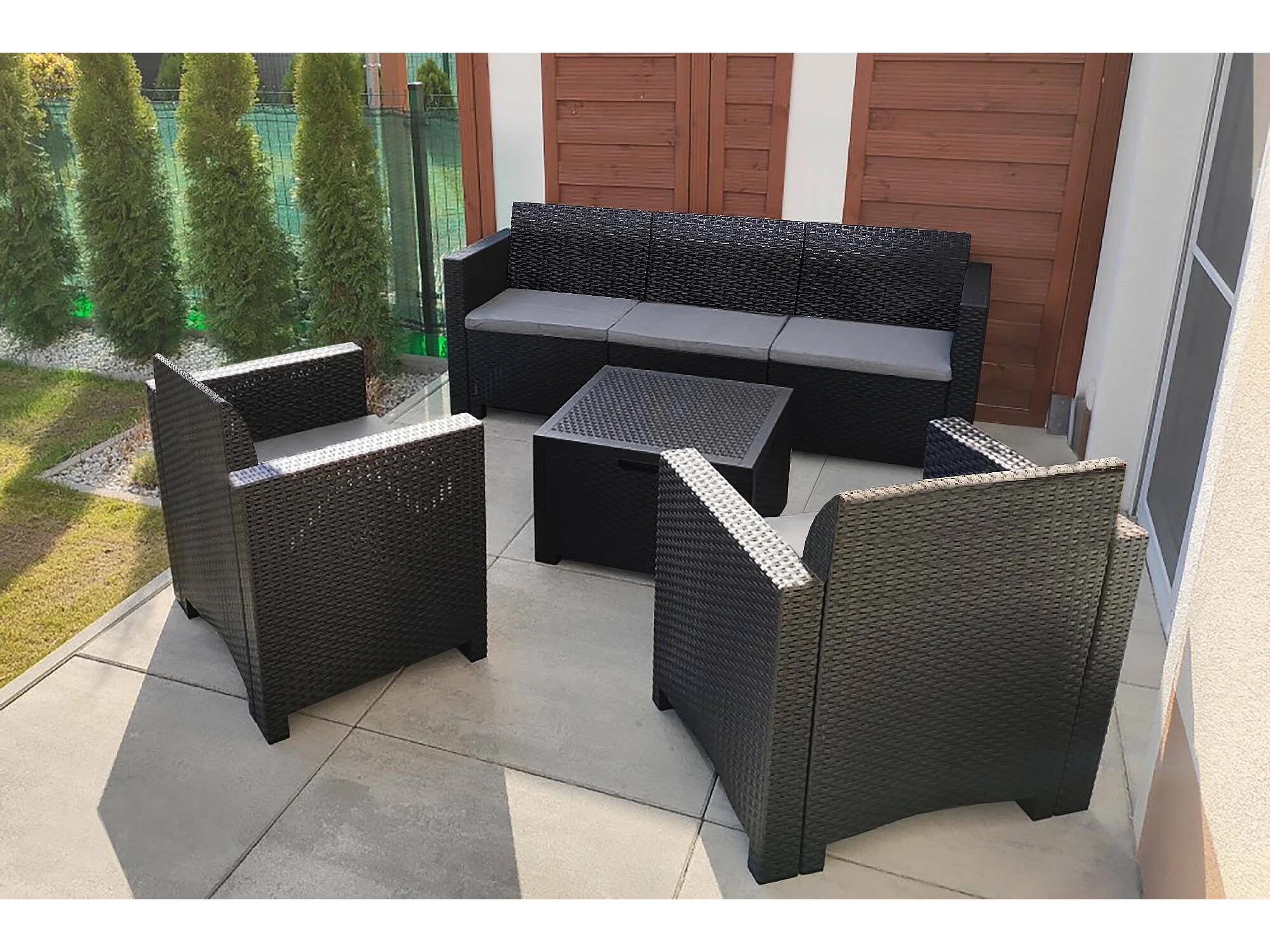 Dmora Lounge Set Venus Zwart Antraciet 5 Zitplaatsen, Schokbestendig, Waterdicht, Italiaans Outdoor Salon met Tafel