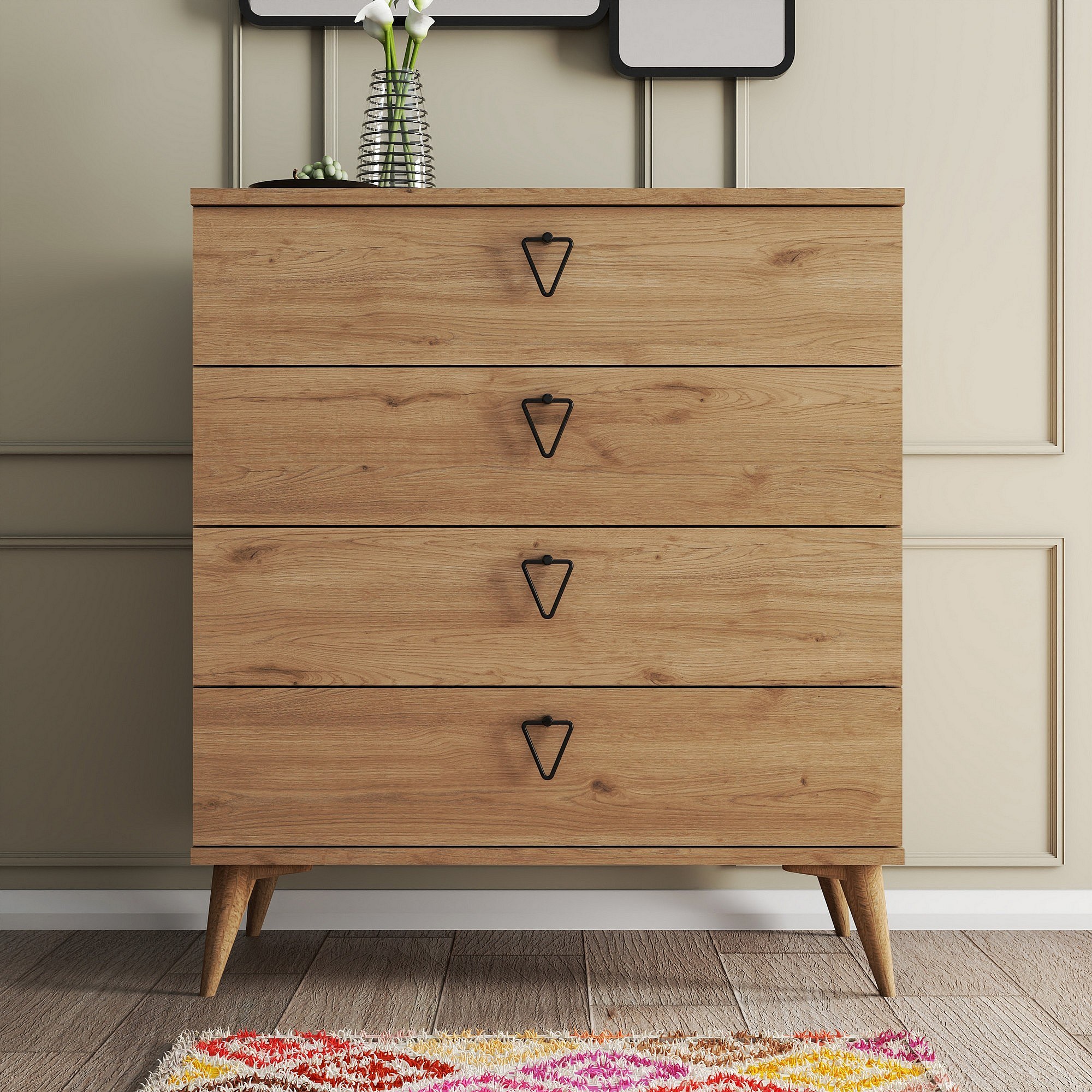 Vera 80 cm ladekast in wit en natuurlijk hout met 4 lades
