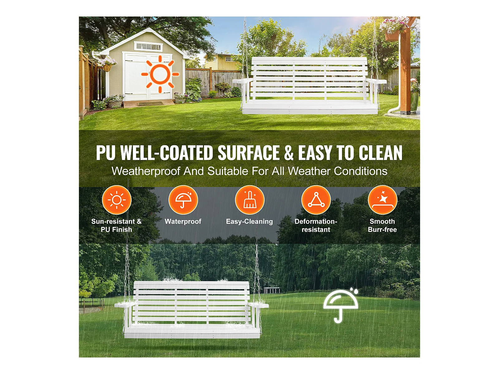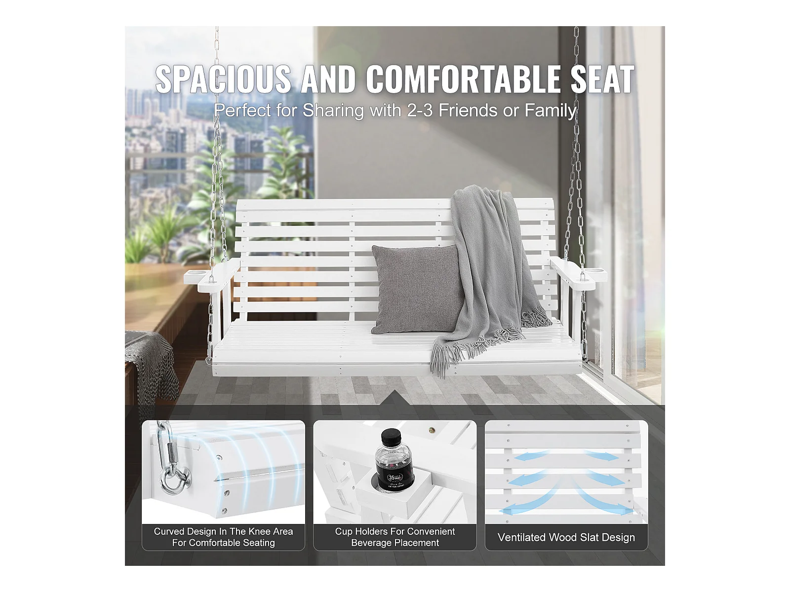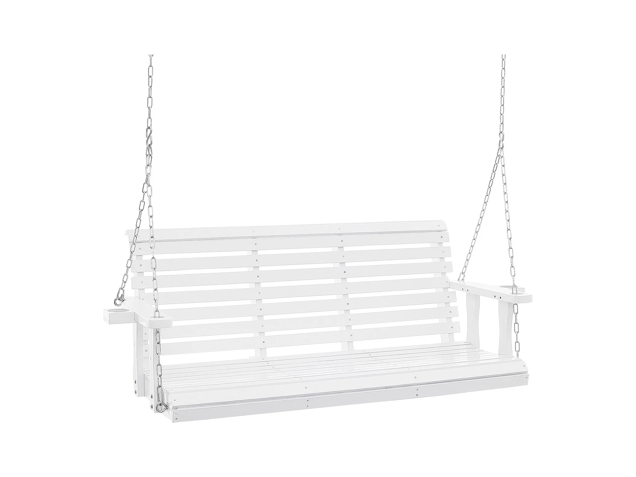 Veranda Schommel SucceBuy, 165 cm Hout, Hangstoel voor Tuin, Patio of Terras,Verbeterd Draagvermogen 400 kg, Wit