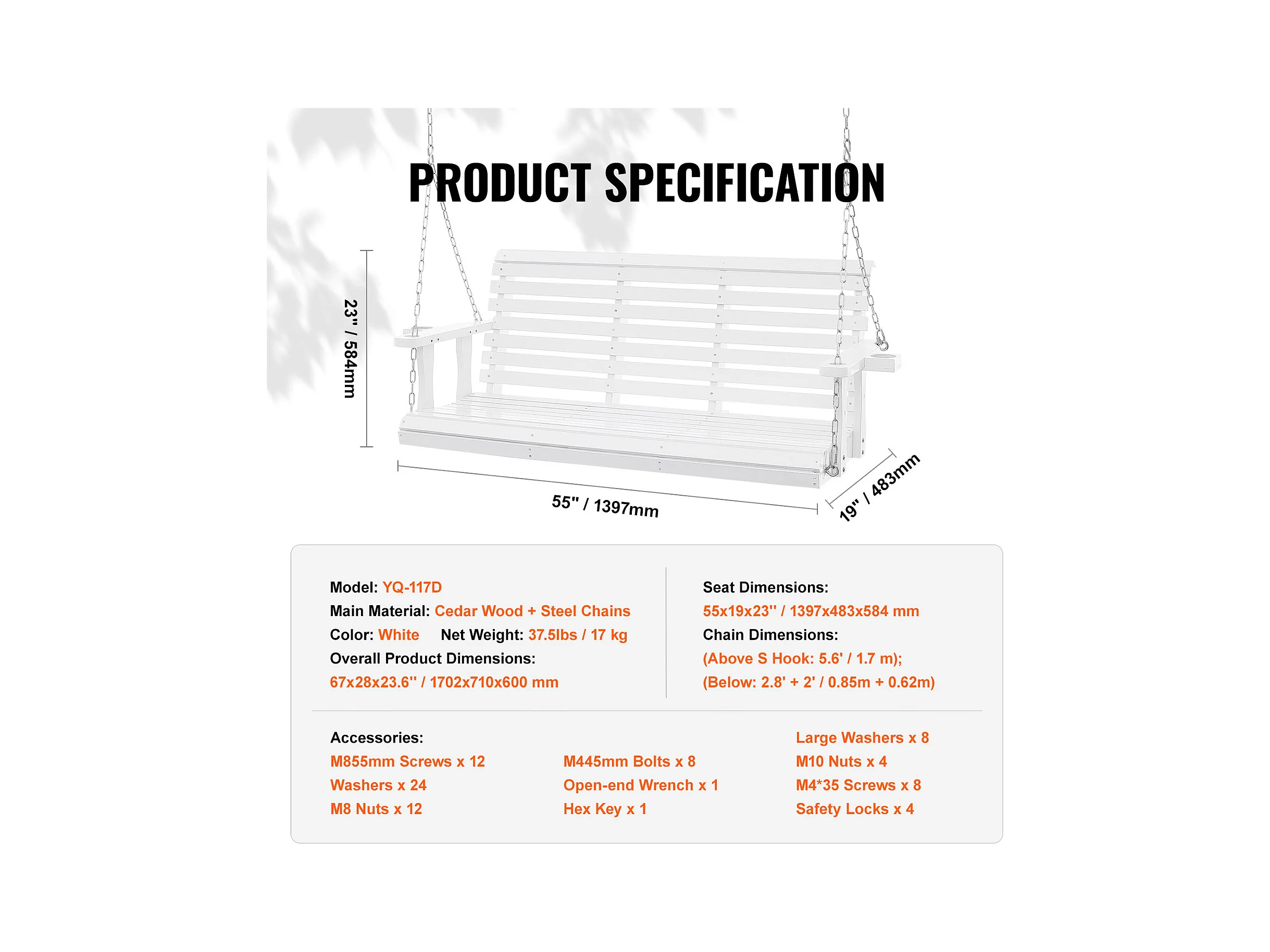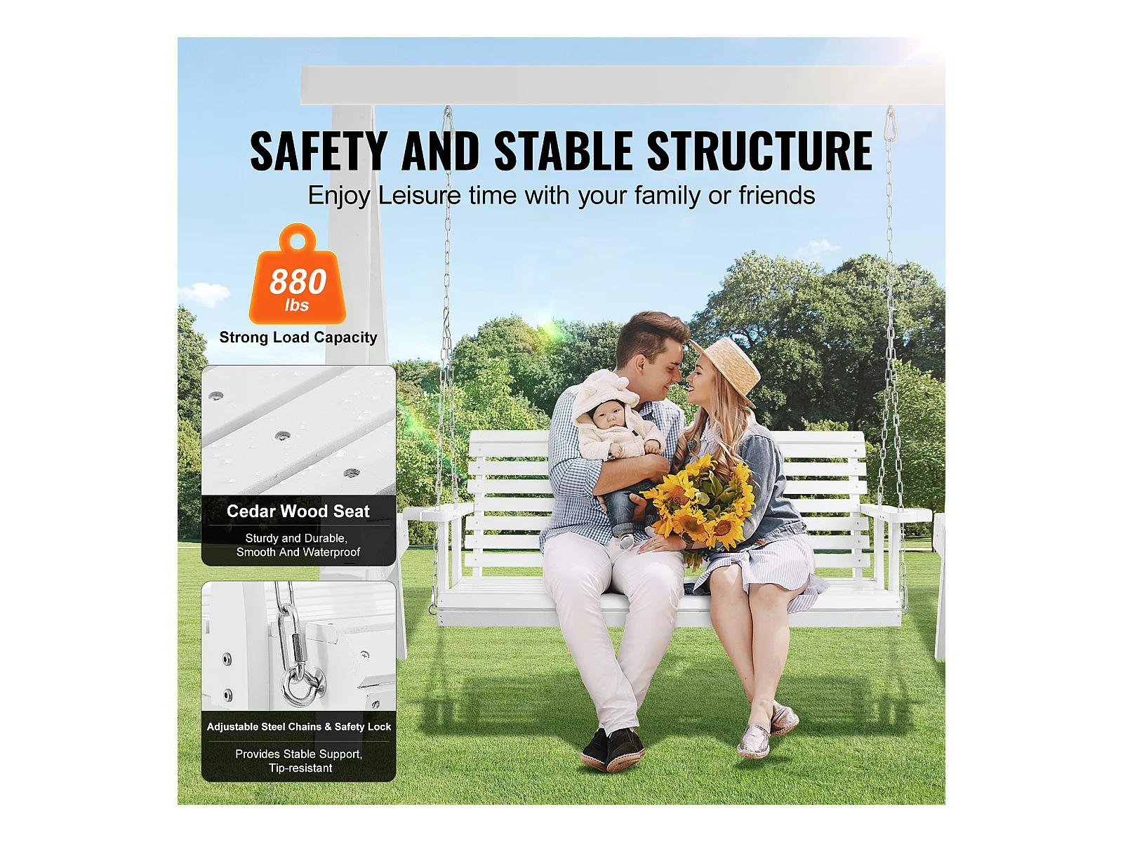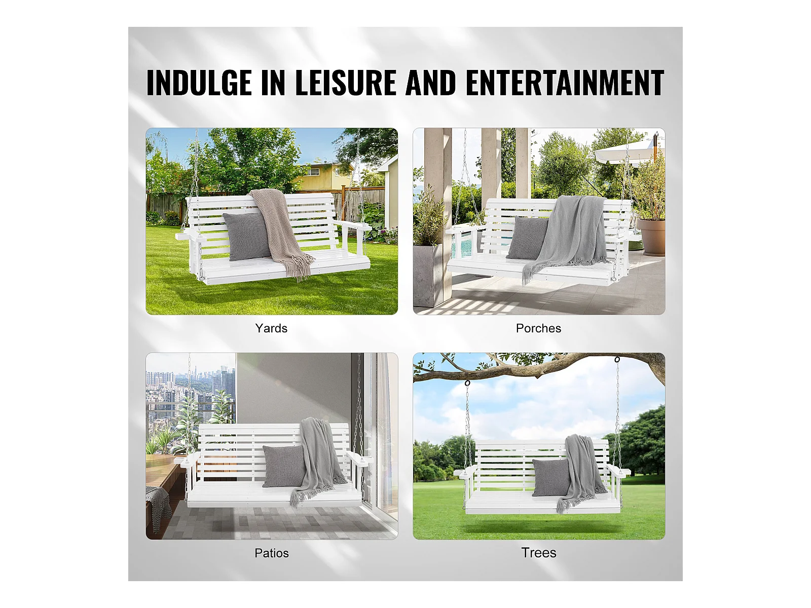 Veranda Schommel SucceBuy, 165 cm Hout, Hangstoel voor Tuin, Patio of Terras,Verbeterd Draagvermogen 400 kg, Wit