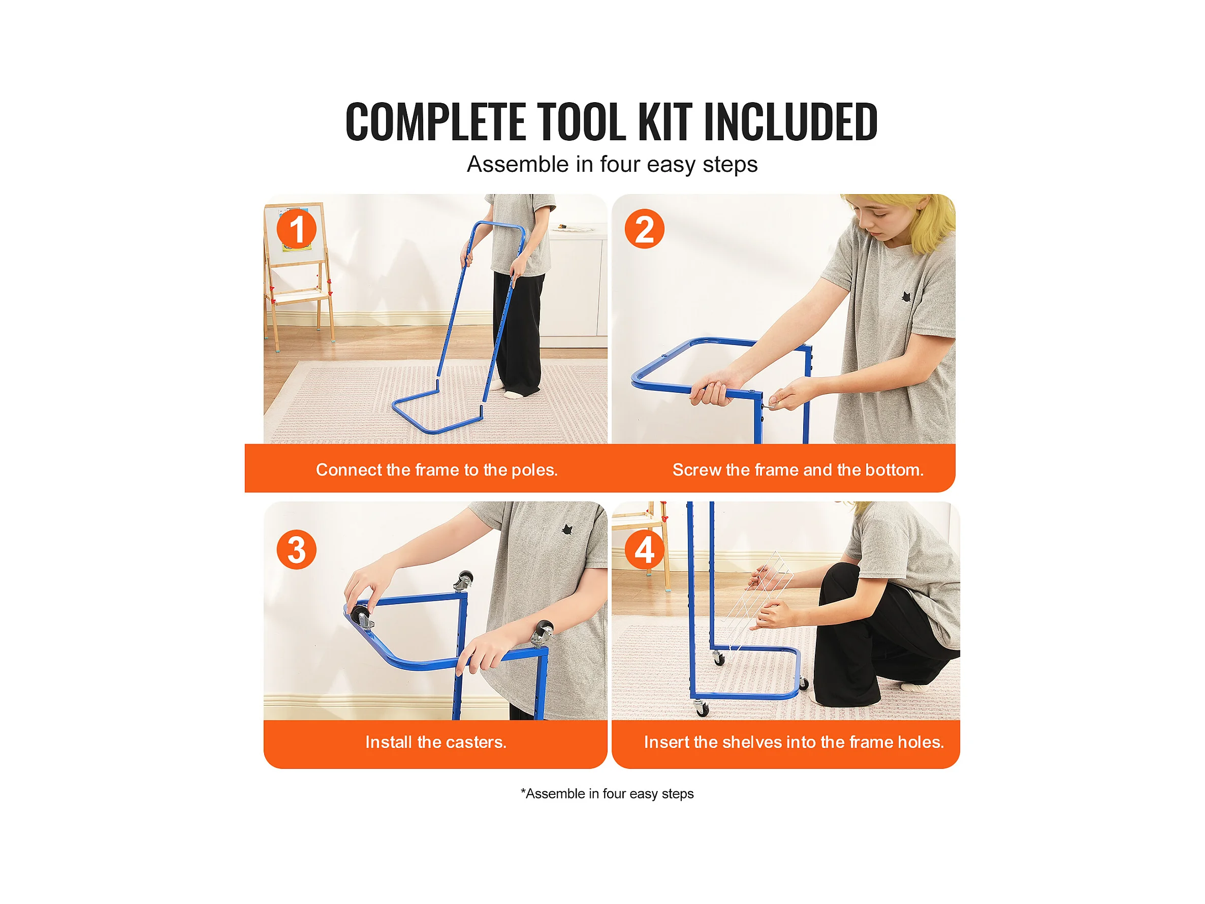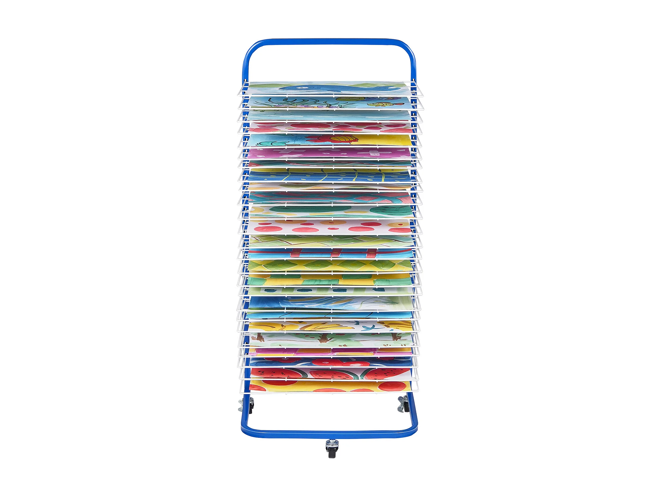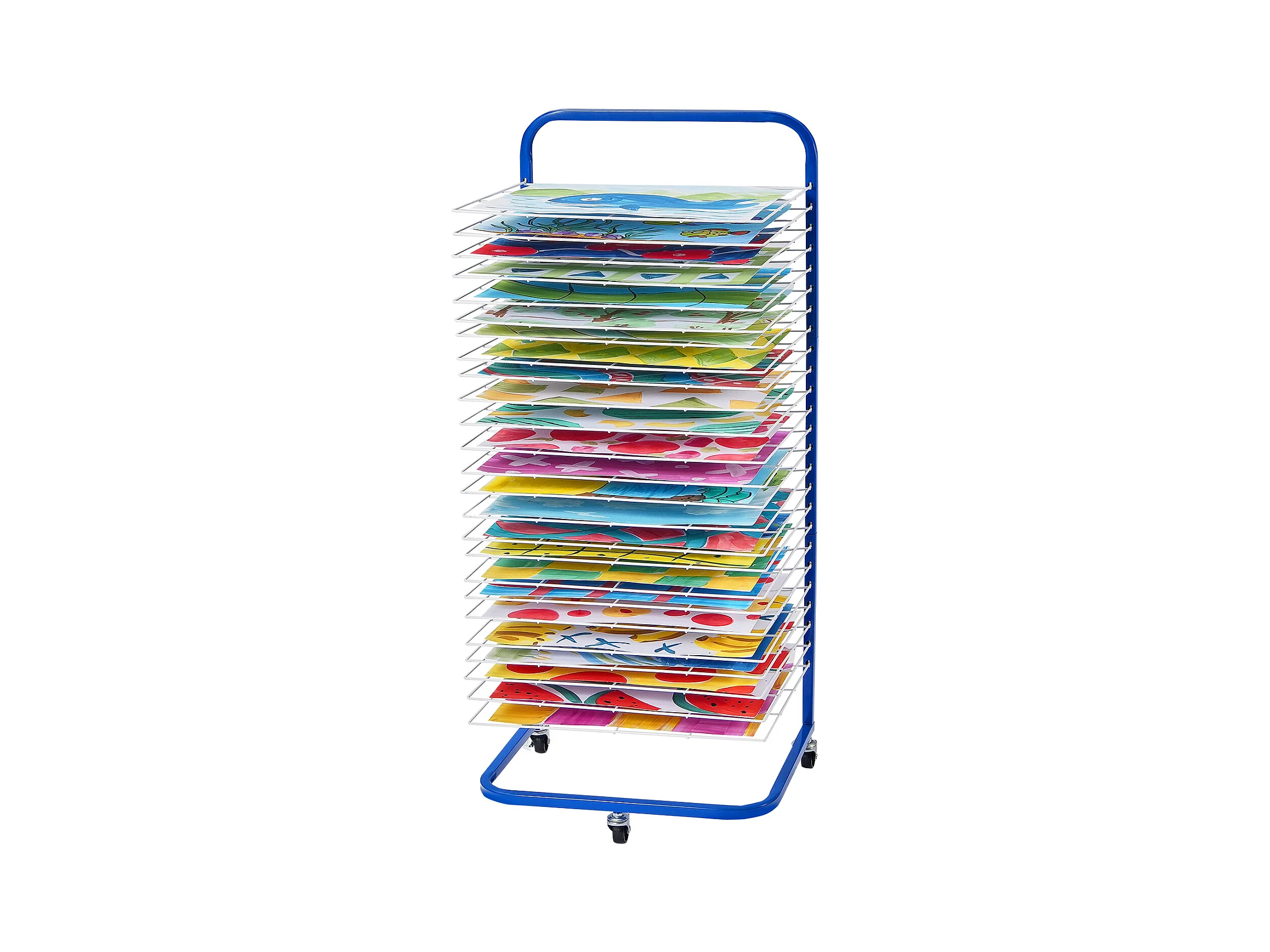 Verfdroger SucceBuy, 25 Verwijderbare Planken, Standaard met Blokkeerbare Wieltjes voor Verf, Kunstwerken in de Klas, Blauw en Wit