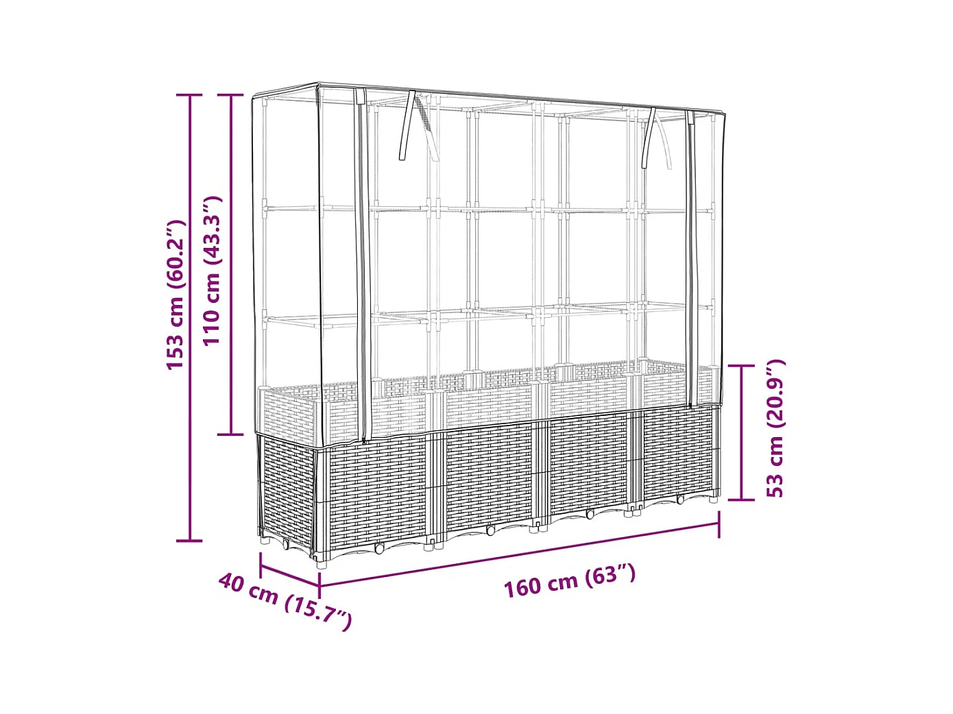 Verhoogde plantenbak met rotan-look hoes 160x40x153 cm