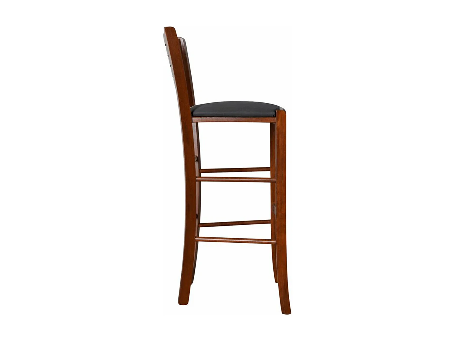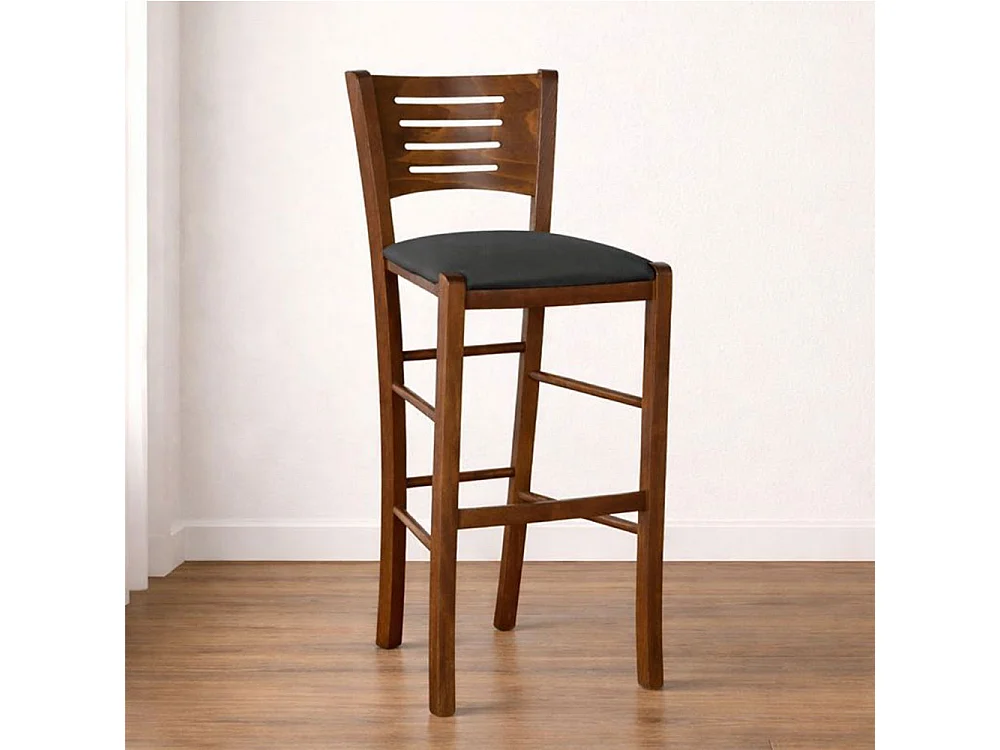 Verona kruk van donker walnoothout, hoogte 73 cm, met antracietkleurige gewatteerde zitting.
