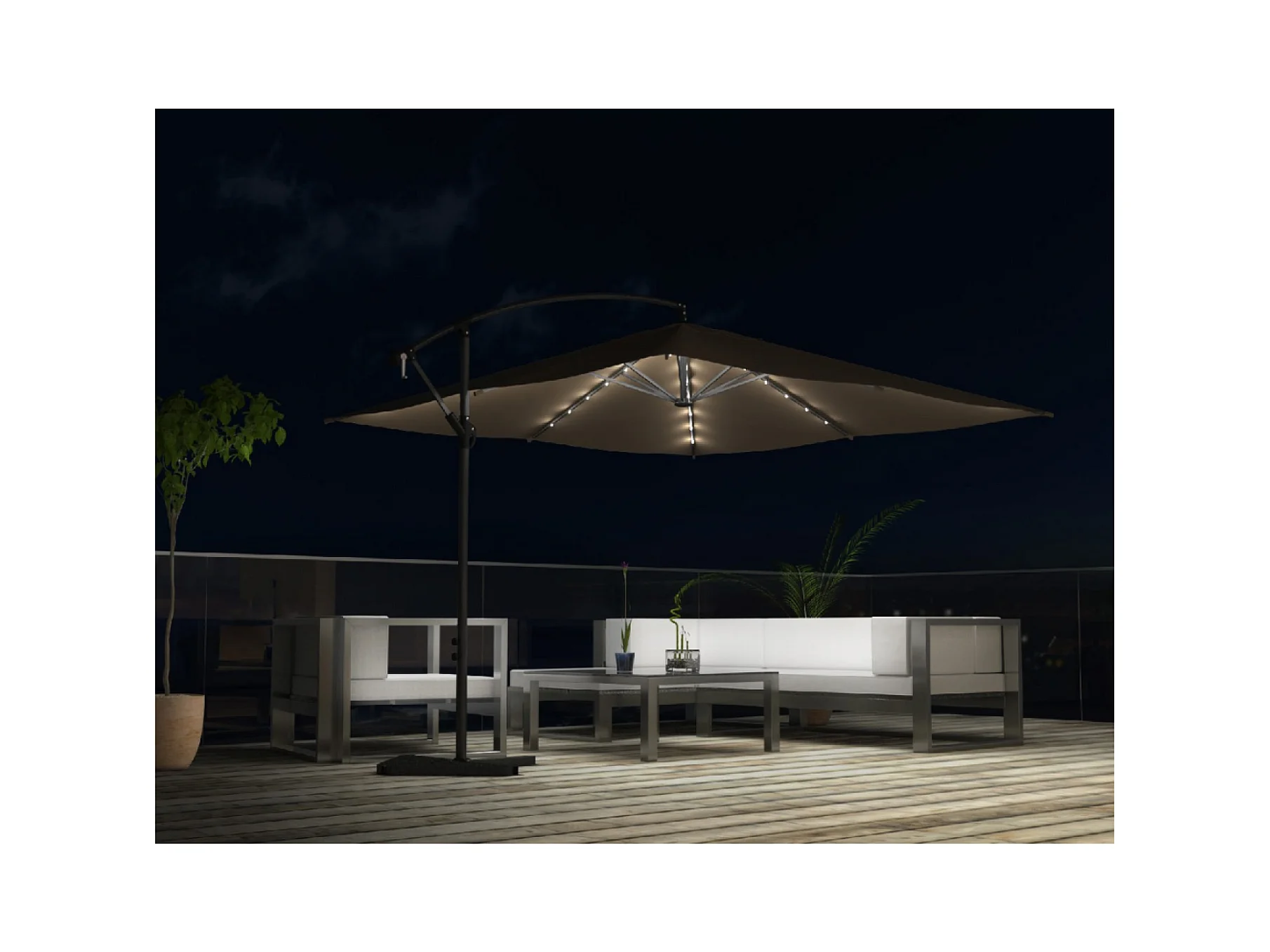 Verplaatste LED zweefparasol 3x3m chocolade SOLENZARA NEON