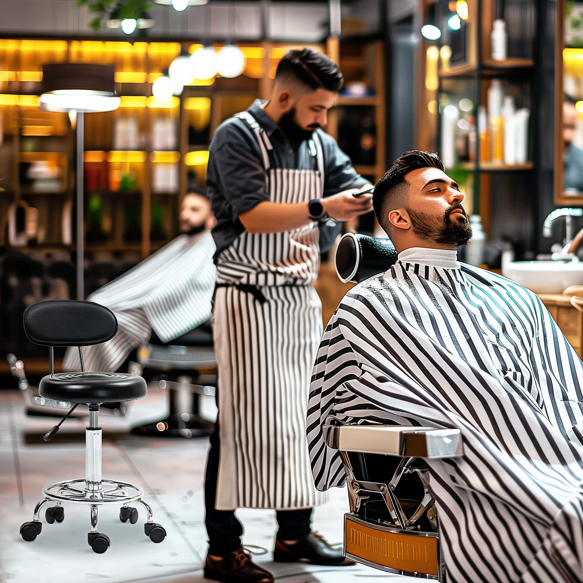 Verstelbare draaibare werkkruk met rugleuning, wielen en verstelbare voetensteun, zwart kunstleer, ideaal voor op kantoor