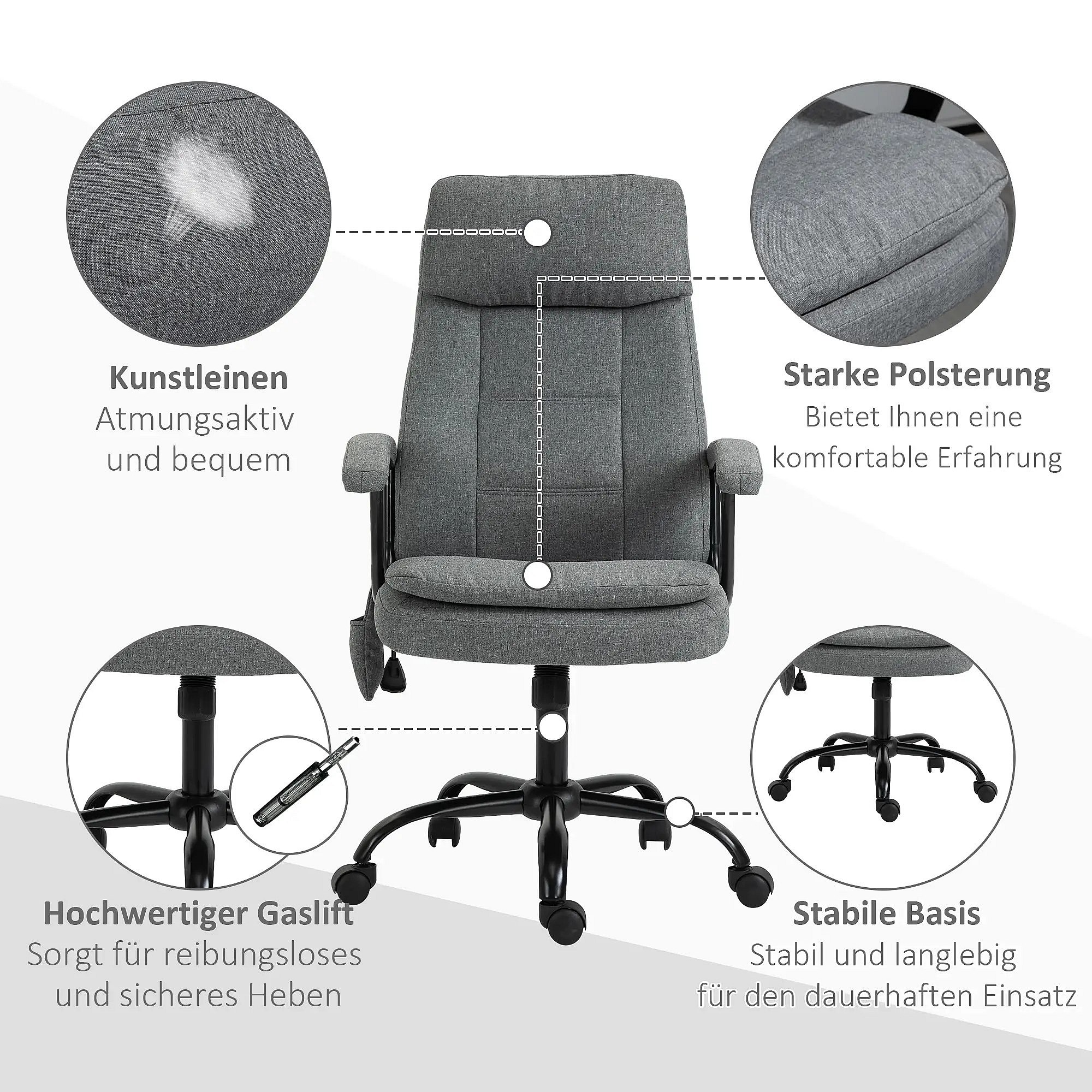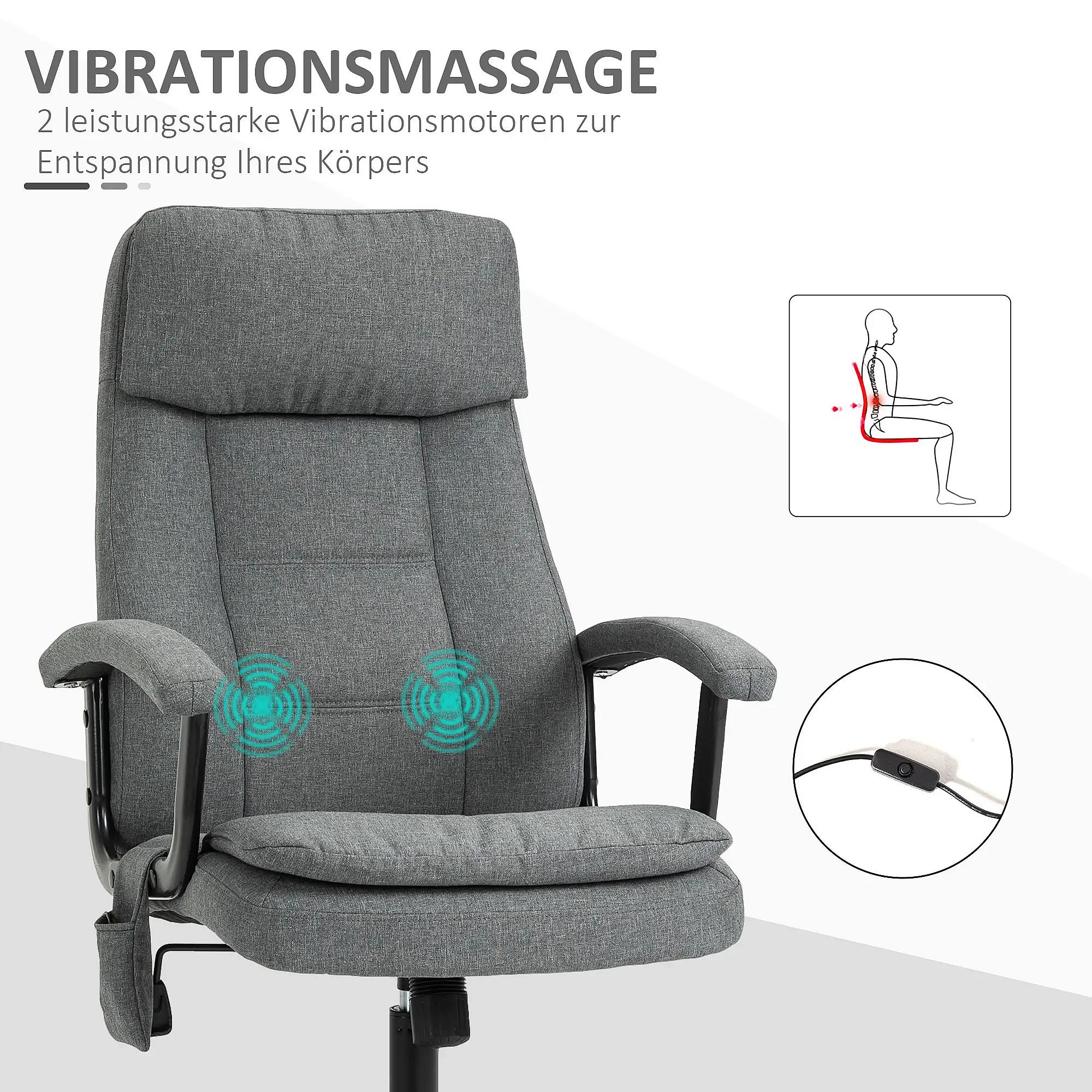 Verstelbare ergonomische bureaustoel, gamingstoel met massage, optimaal comfort, grijs, perfect voor kantoor en gaming