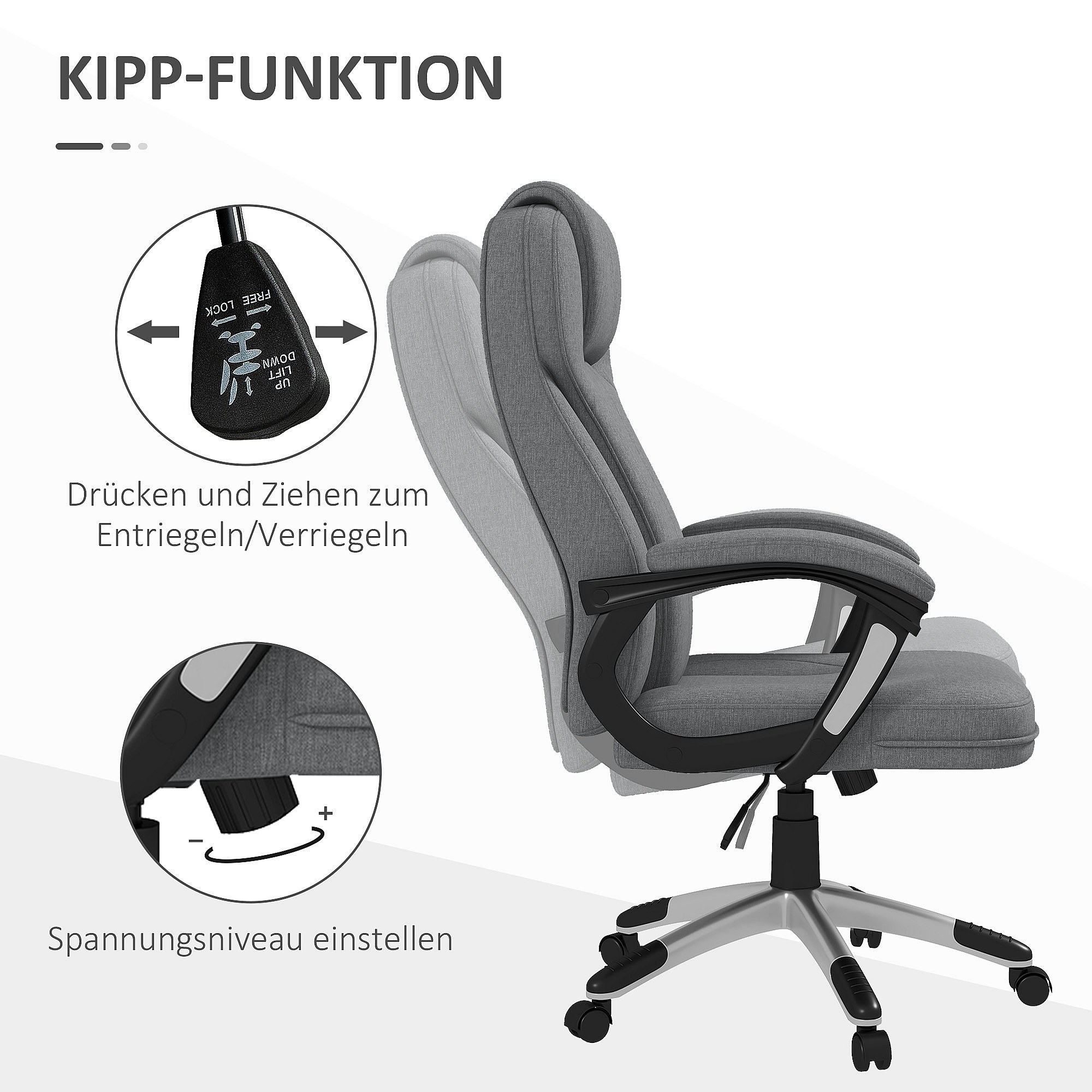 Verstelbare ergonomische bureaustoel met schommelstoel, armleuningen en hoofdsteun, bekleding in grijze linnenlook, afmetingen 66x75x110-120 cm