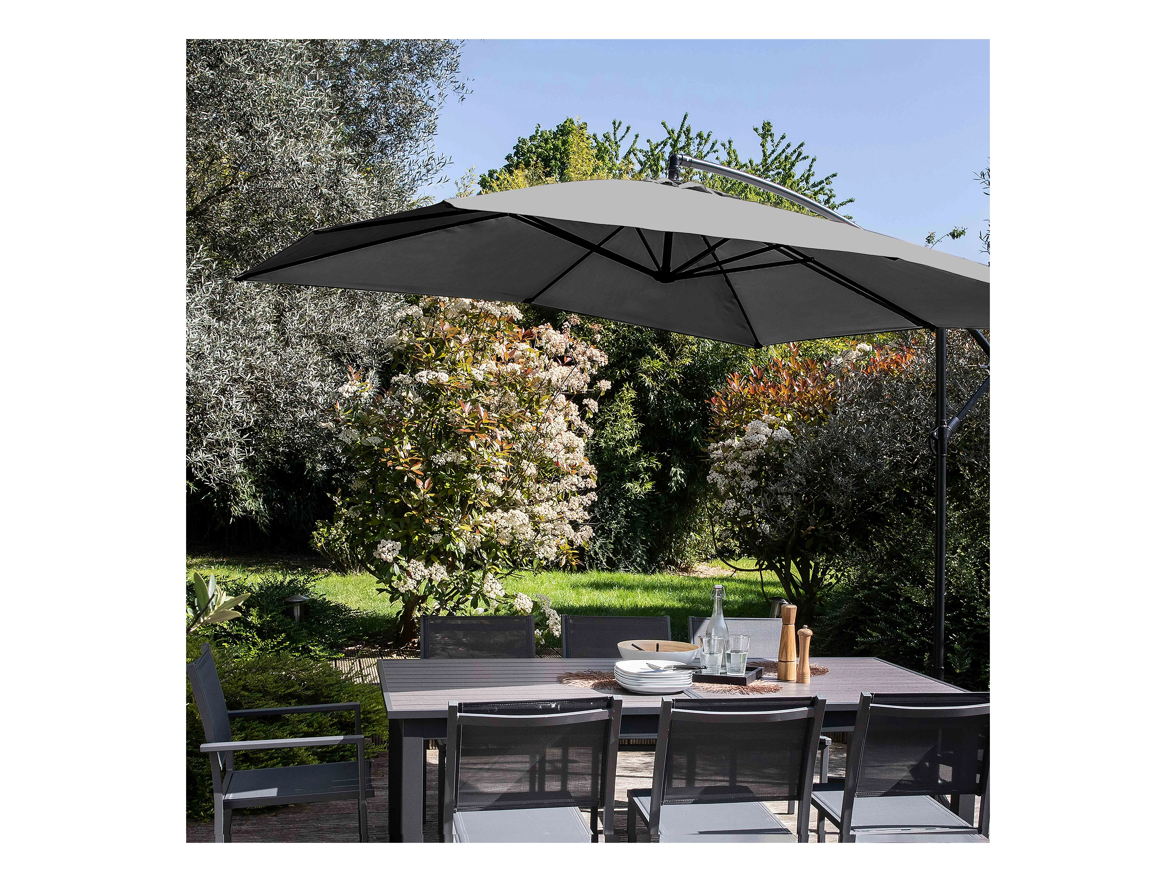 Verstelbare parasol 3x3m en 4 gewichtsplaten in grijs aluminium