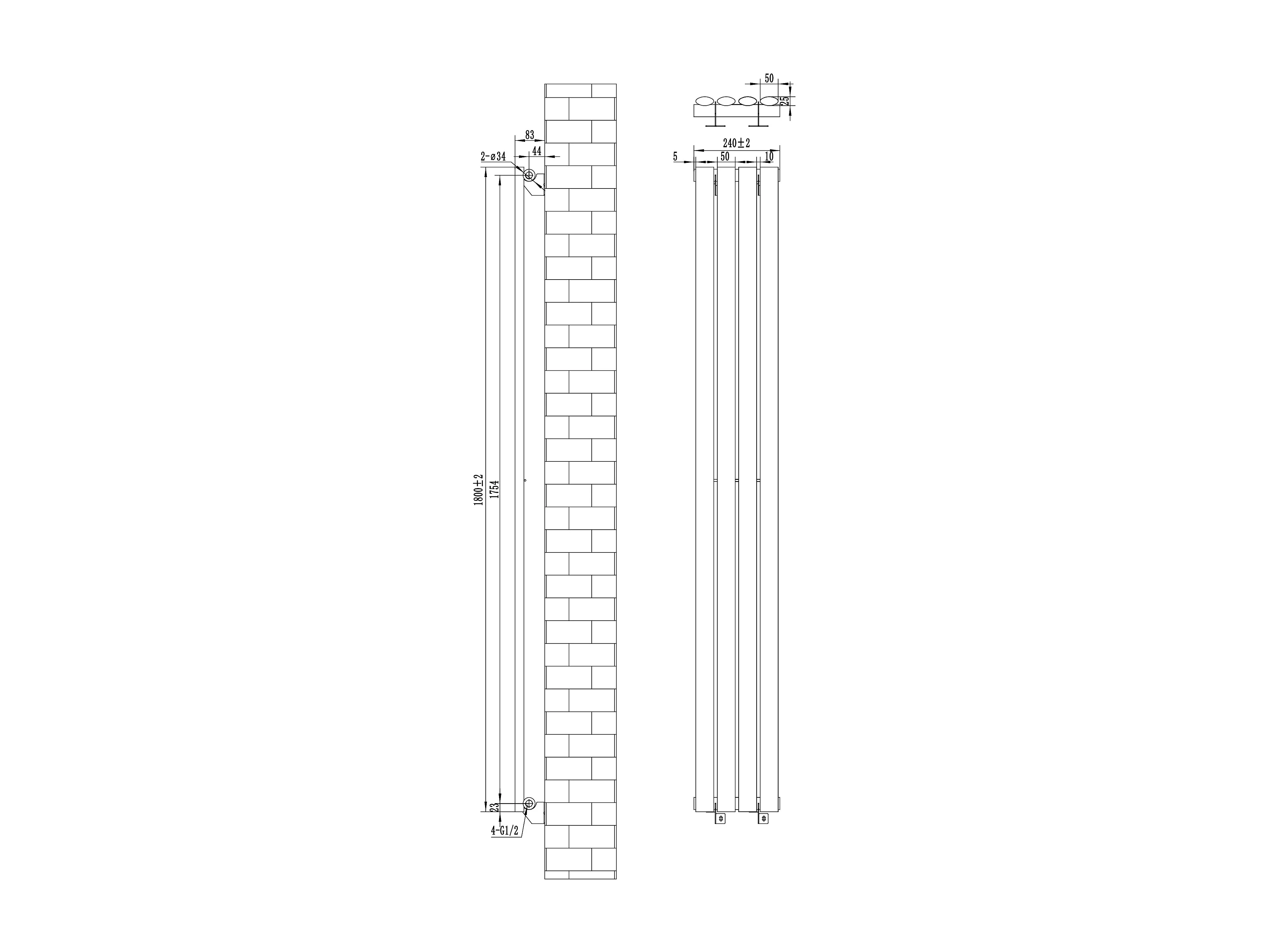 Verticaal design radiator ovaal - 1 kolom - zwart - 1800 x 240 mm