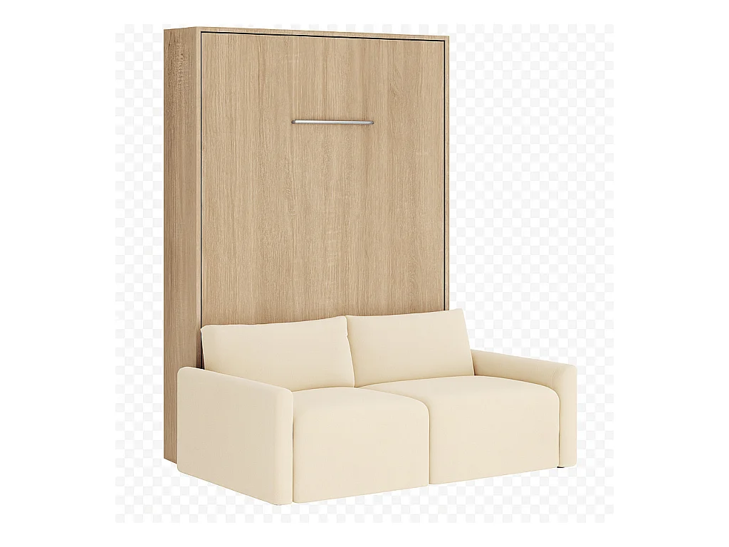Verticaal opklapbed met hoogwaardige Valencia bank-Matras van schuimrubber van 18 cm-Slapen 160x200cm-Bank Beige-Structuur en gevel Licht eiken