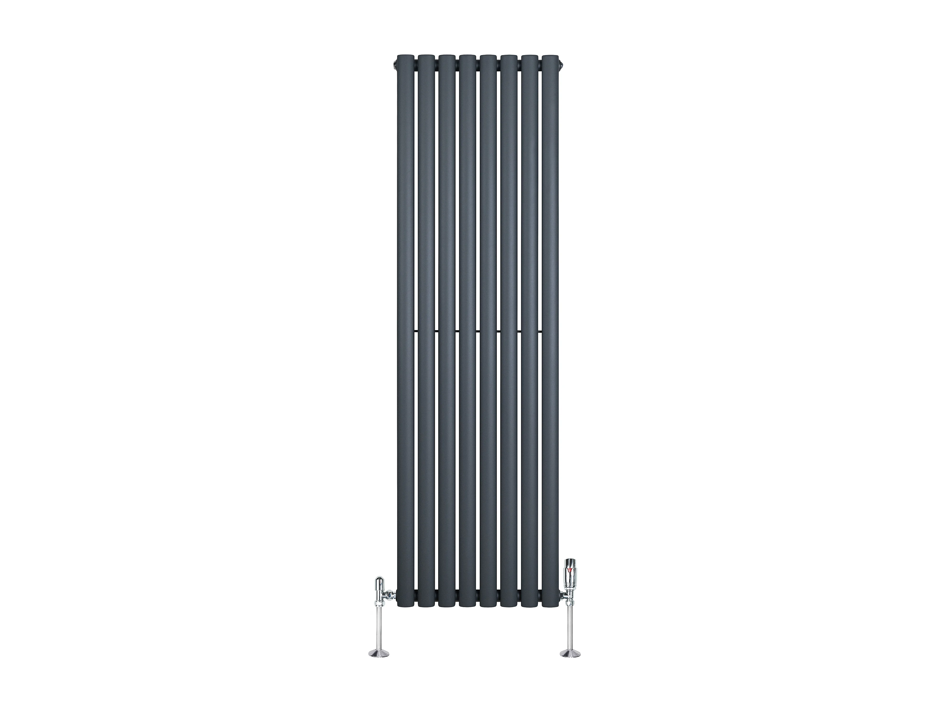 Verticale design radiator ovaal 1 kolom - grijs 1600x480 mm thermostaatkraan