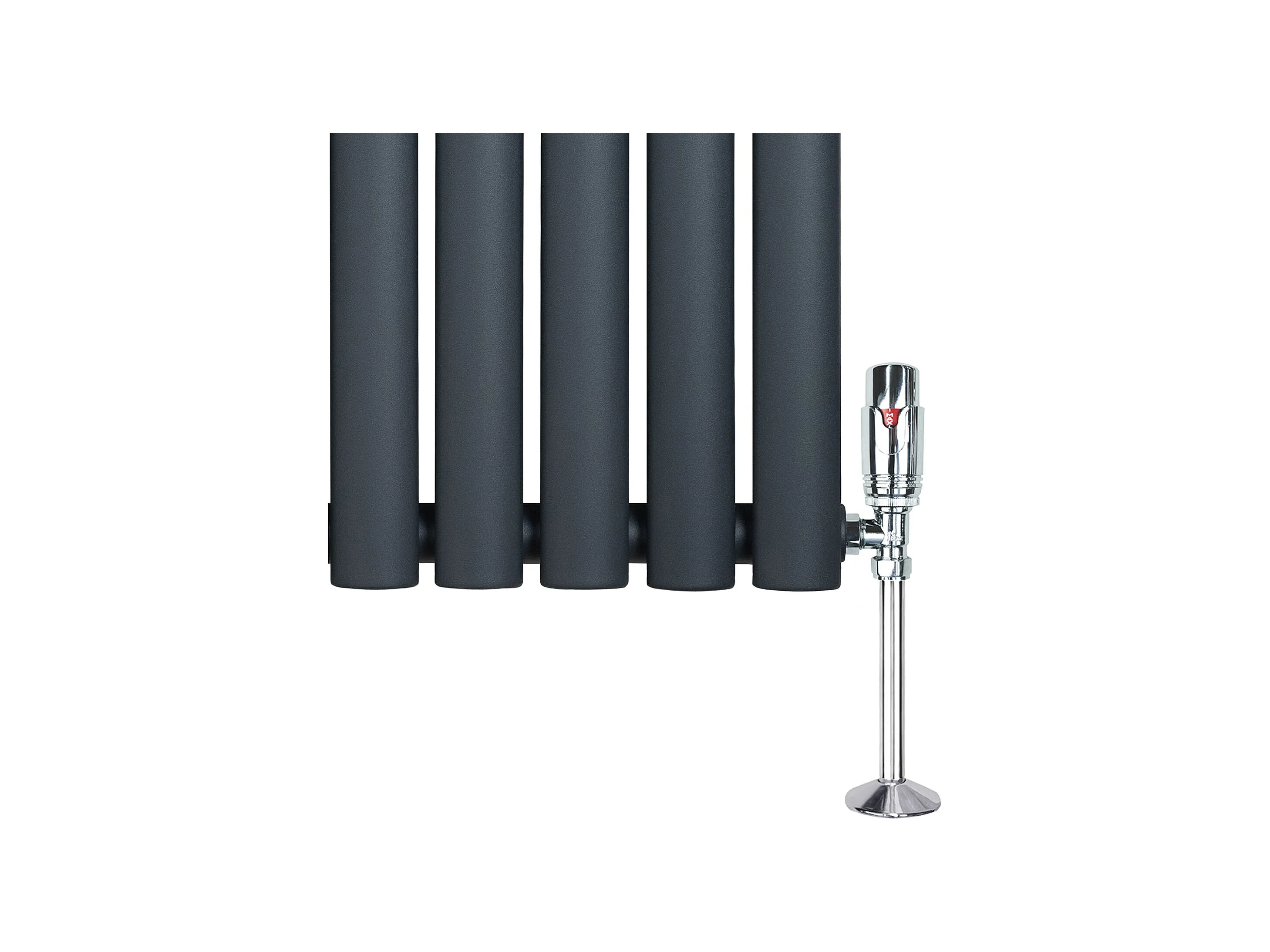 Verticale design radiator ovaal 1 kolom - grijs 1800x360 mm thermostaatkraan