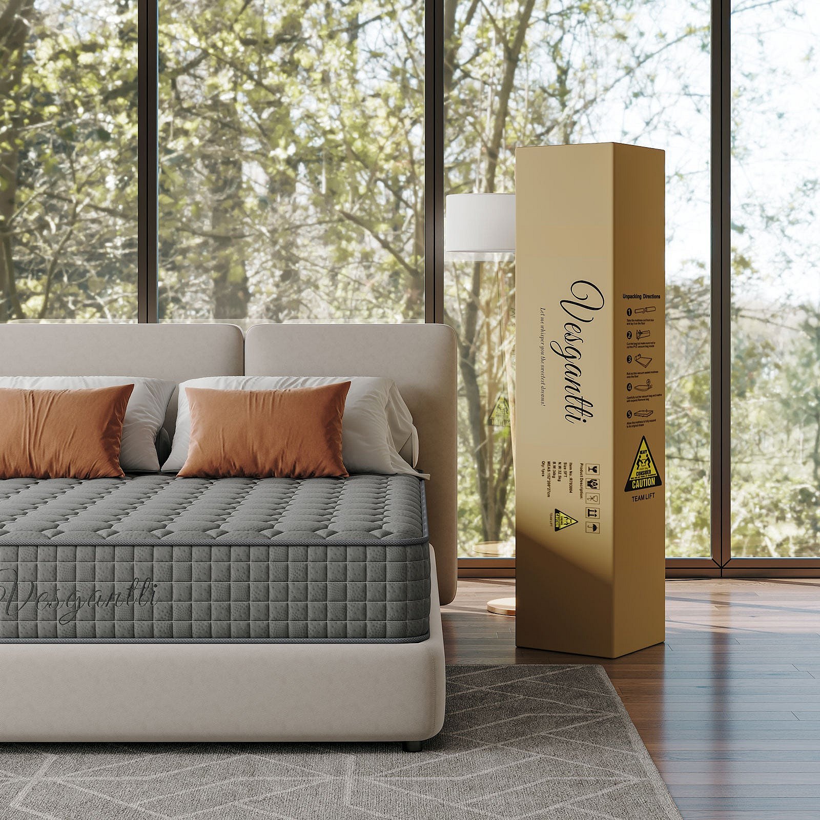 Vesgantti Grey Matras 90x190cm, 25cm dik, hybride pocketveren en traagschuim, 7 comfortzones, meerlaags, Oeko-Tex gecertificeerd
