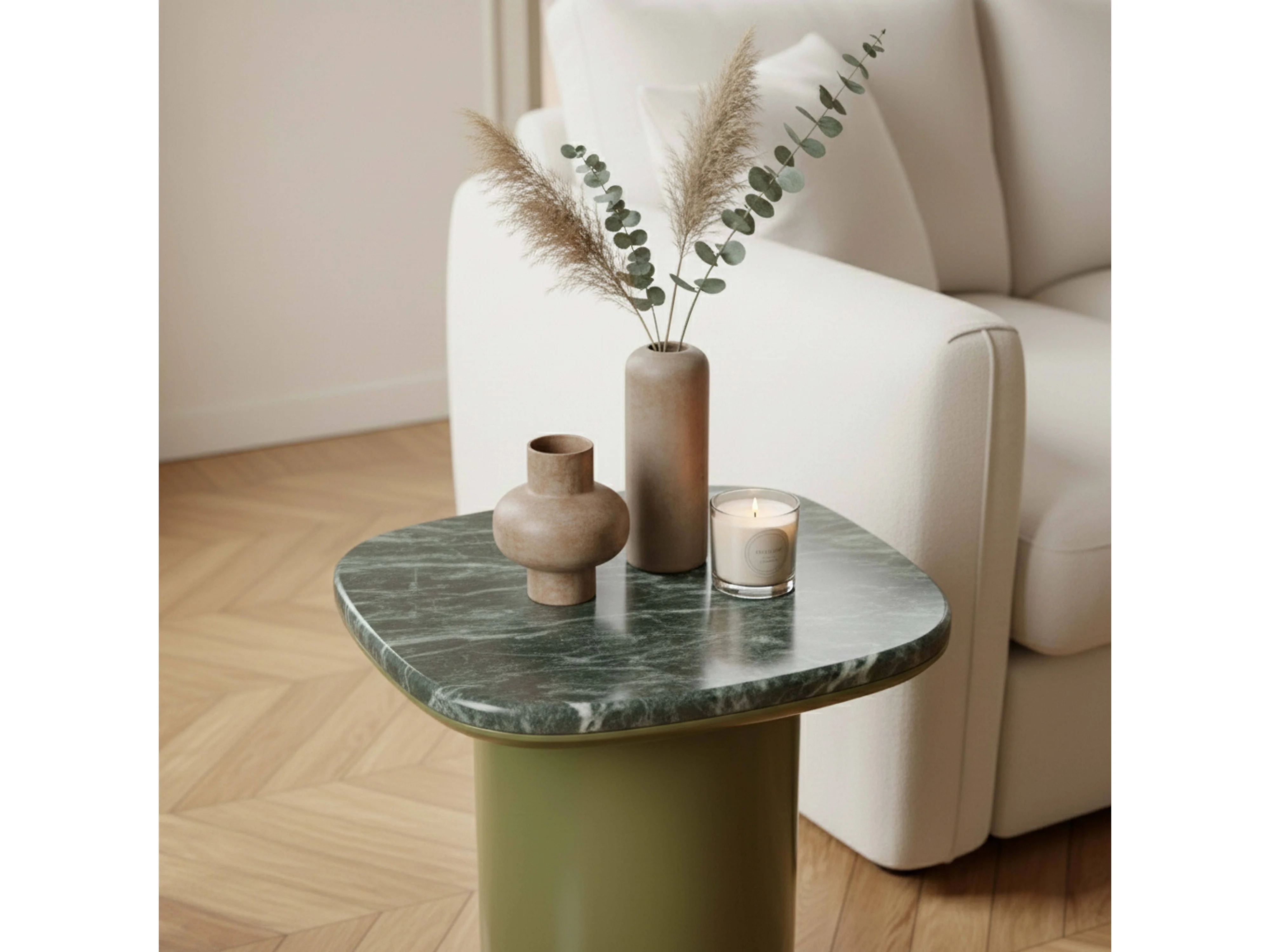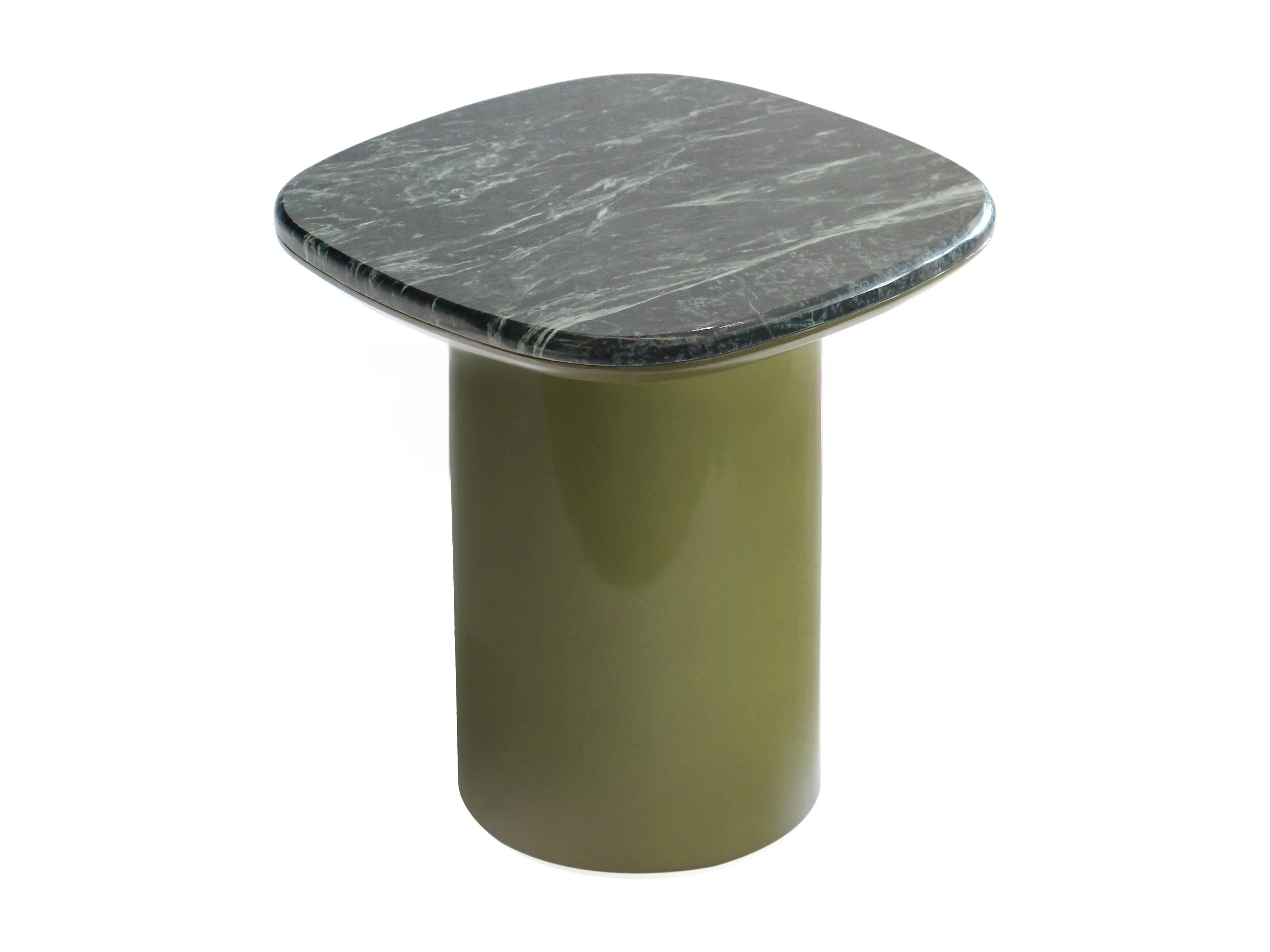 Vierkante bijzettafel in olijfgroen marmer, 42 x 42 cm