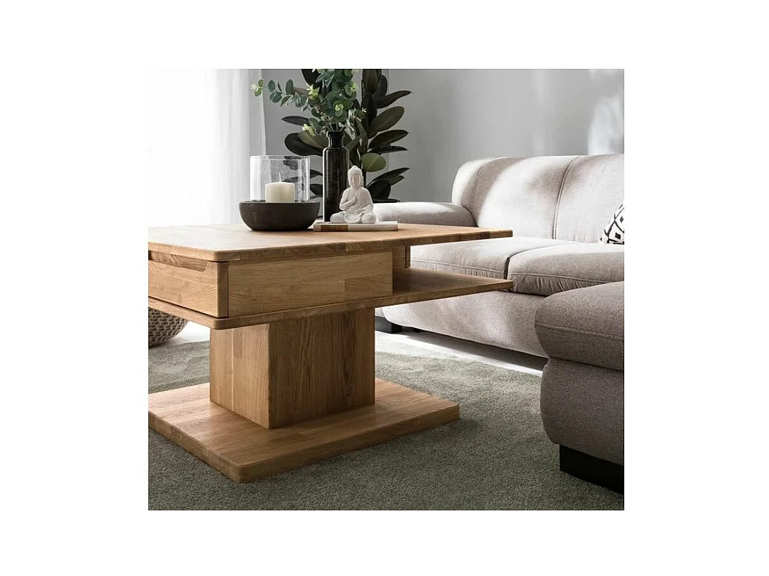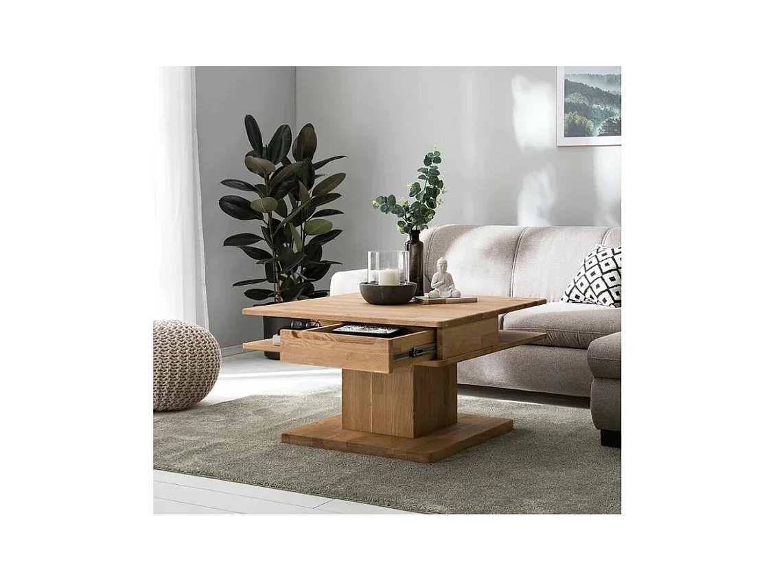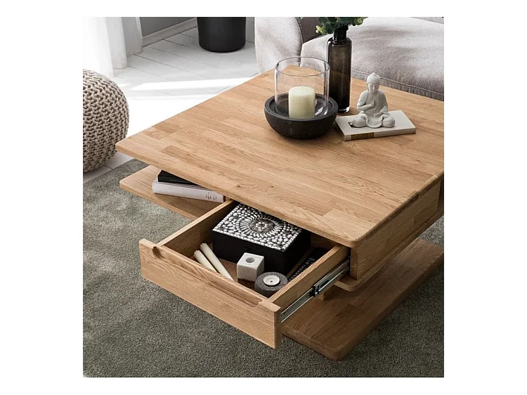 Vierkante salontafel in natuurlijk eikenhout met 2 laden Kalido 90 cm
