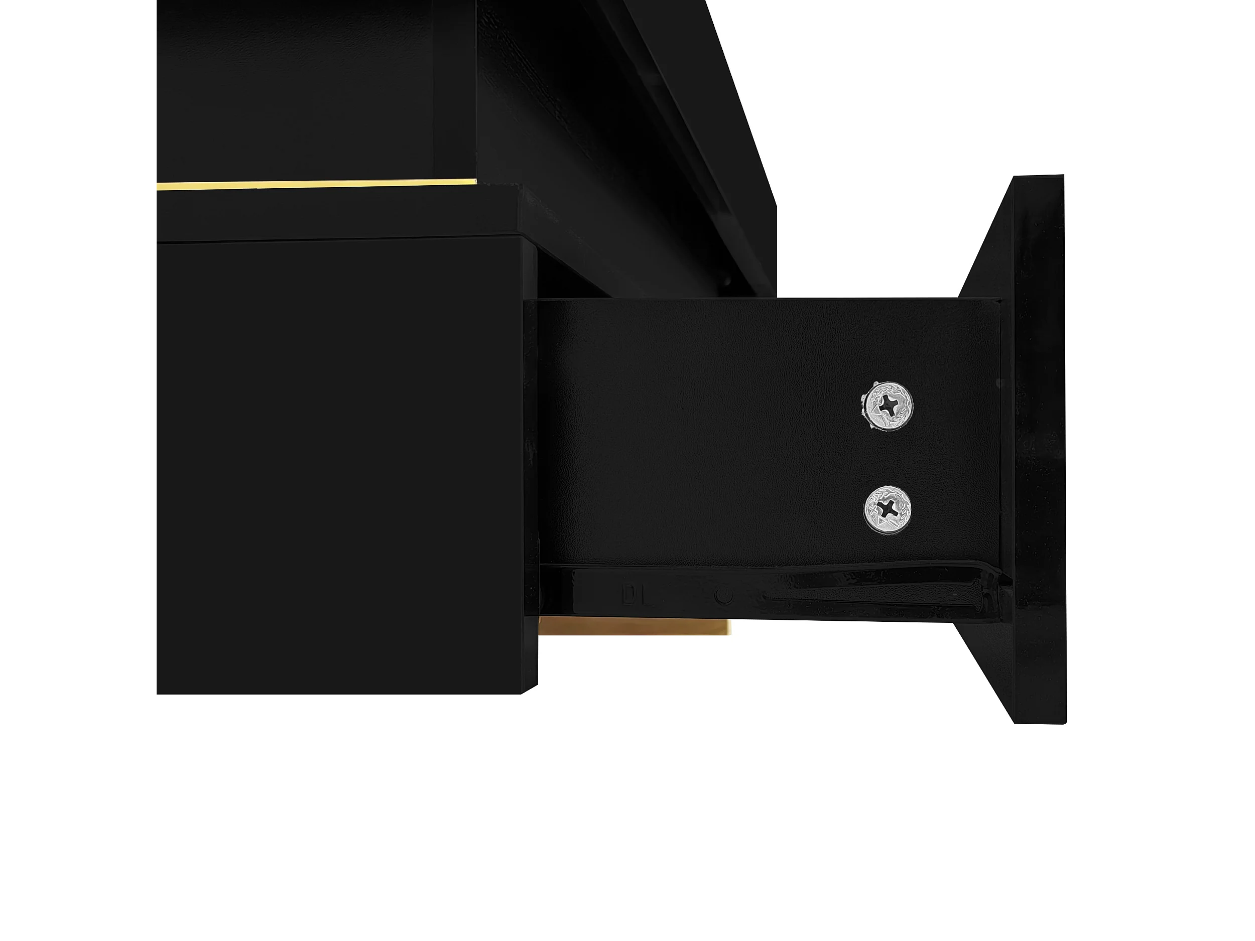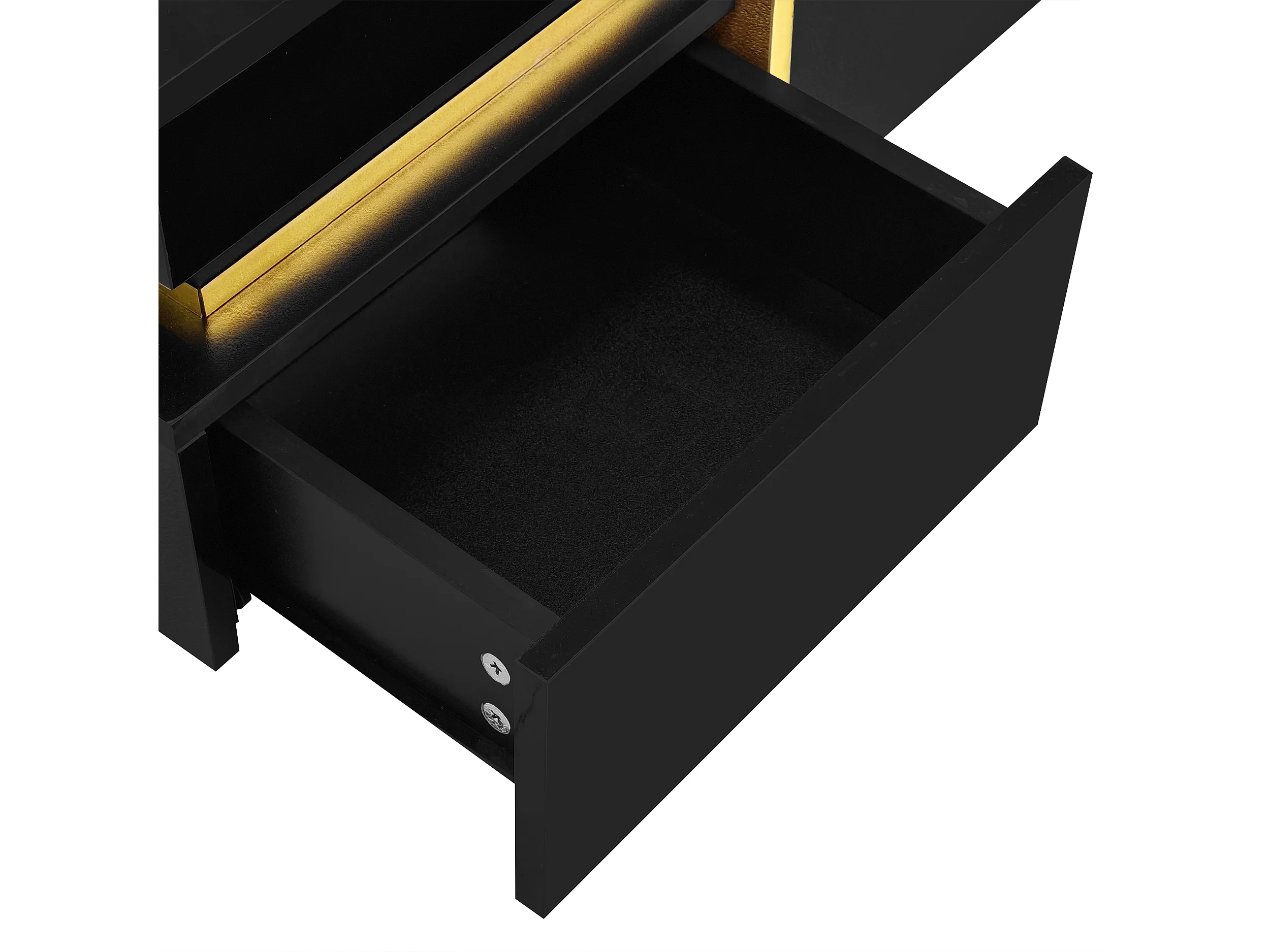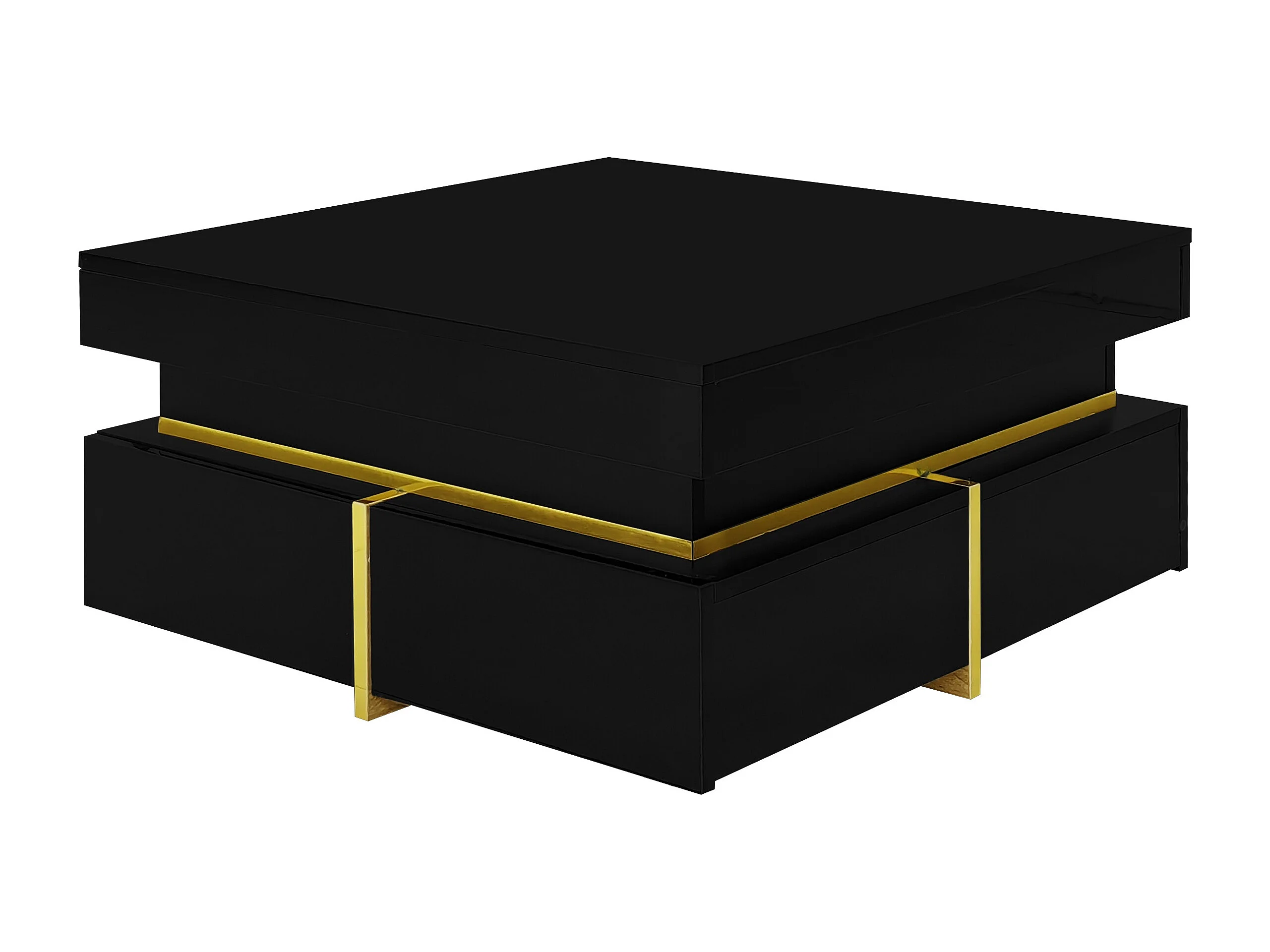 Vierkante salontafel met glanzende afwerking en 2 lades - Gouden details - Zwart